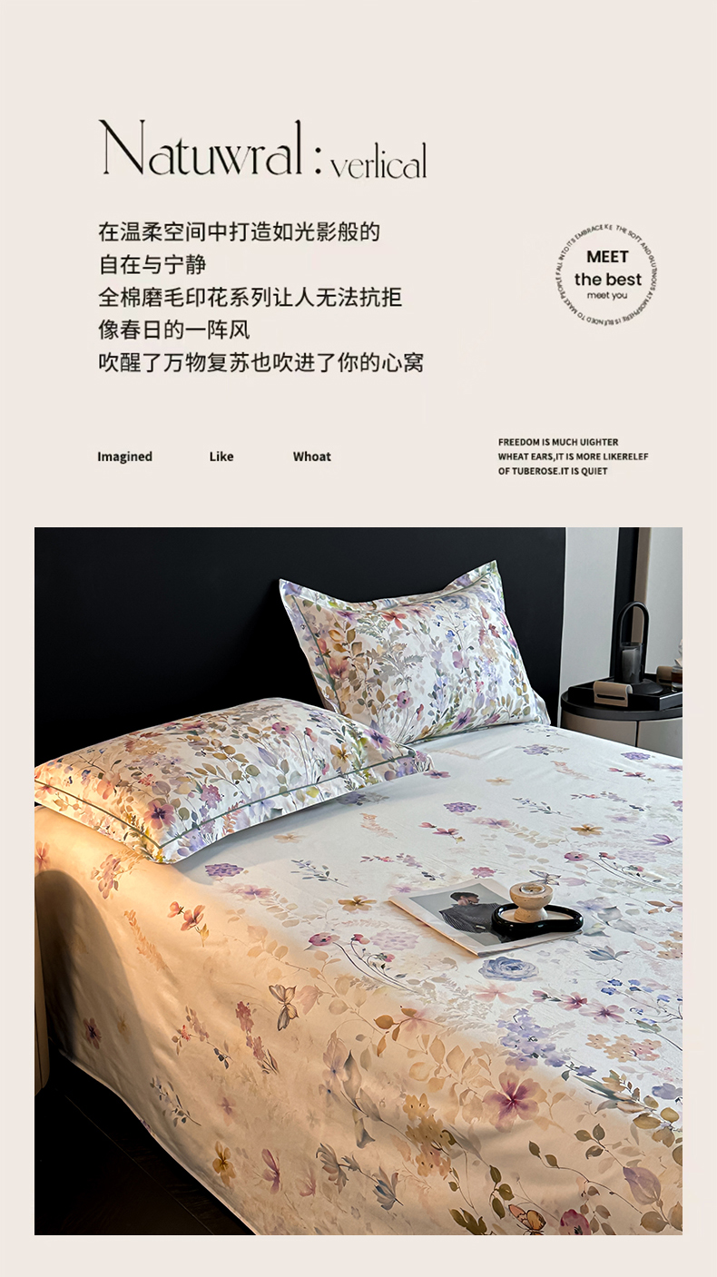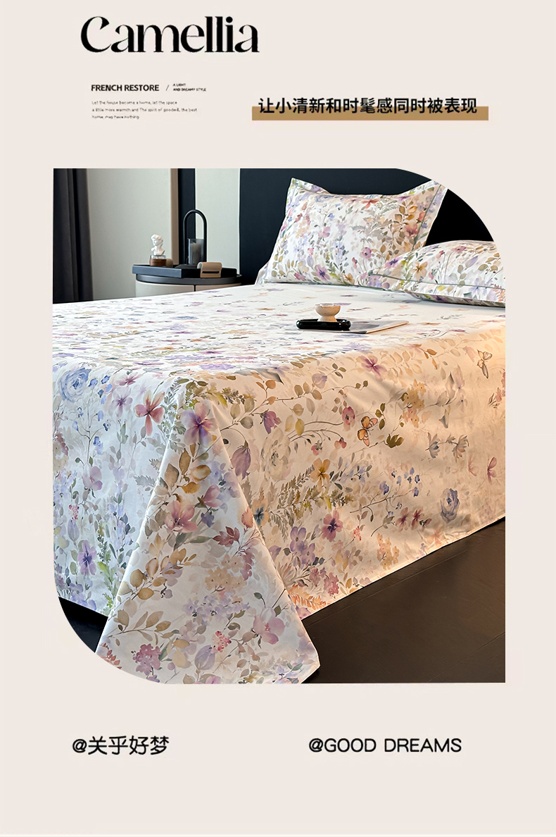 商品名称:大柏树 2025新款亲肤舒适全棉纯棉磨单床单 床单单件 花笺集米白