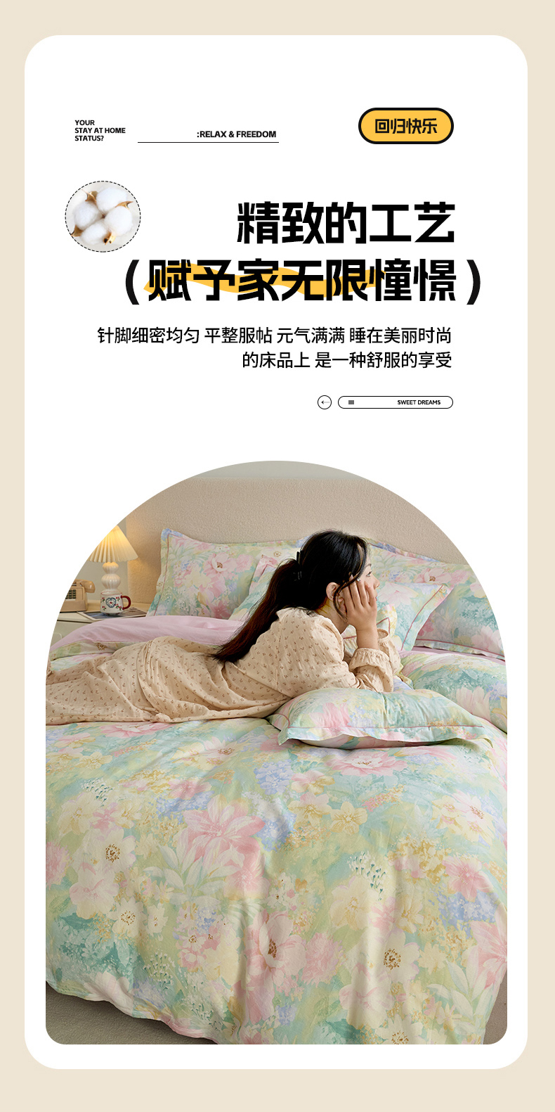 当前位置: 91家纺网 > 商品网购 > 床品套件 > 四件套 > 全棉普通四件套 > 三沁家居 2025新款全棉纯棉斜纹精梳长绒棉印花四件套 花海