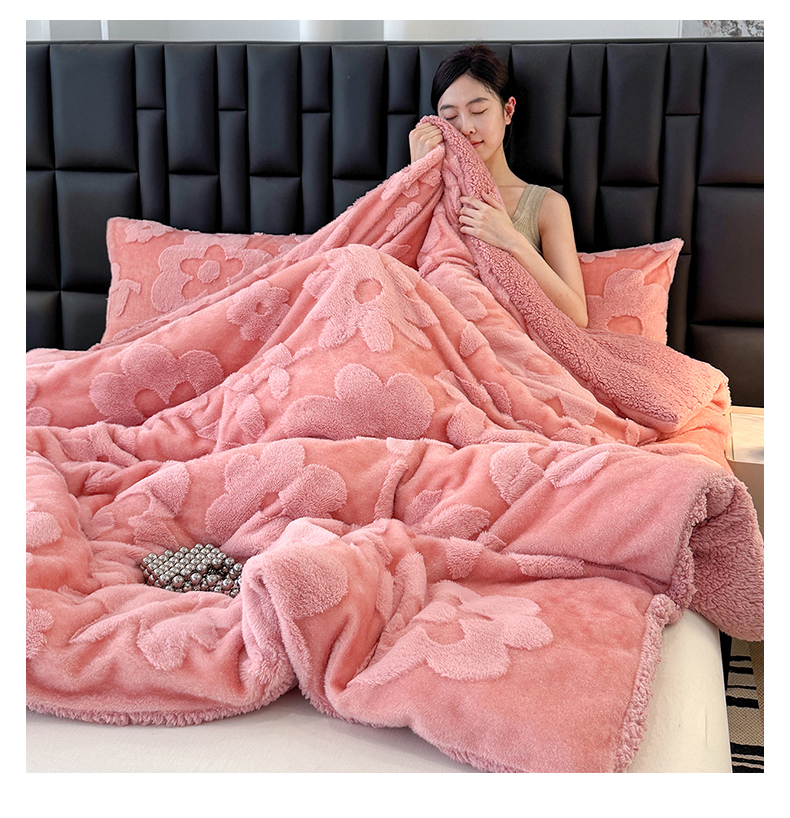 (总)枋梢家纺 2025新款亮丝兔毛绒兔毛提花暖居花漾羊羔绒 双层加厚保暖盖毯 居家午睡保暖毯,花漾-粉色,花漾-咖色,花漾-绿色,花漾-米黄,花漾-浅灰,花漾-深灰,花漾-驼色,花漾-紫色,包装