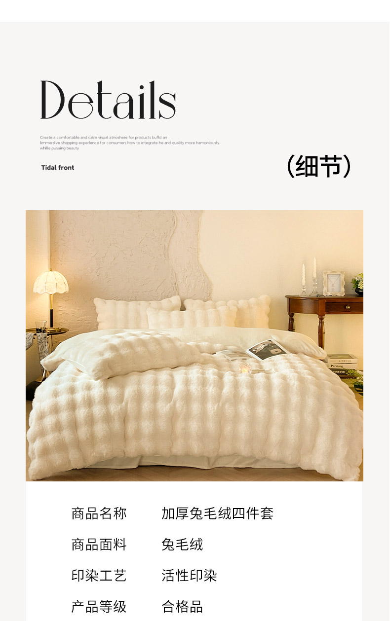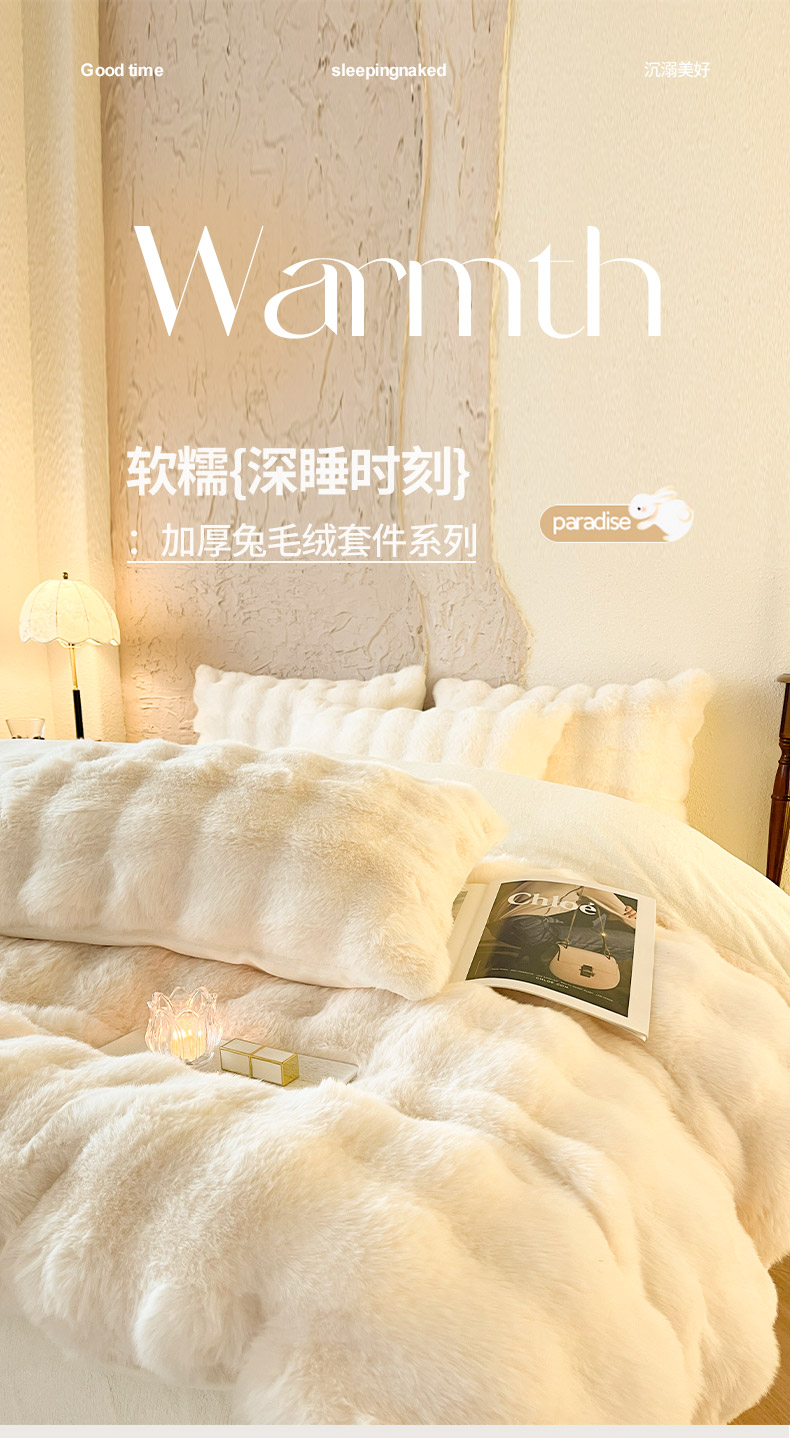 当前位置: 91家纺网 > 商品网购 > 床品套件 > 四件套 > 其它四件套 > 仔仔熊 2025新款高克重兔毛绒四件套-瑞莎 瑞莎-奶油白