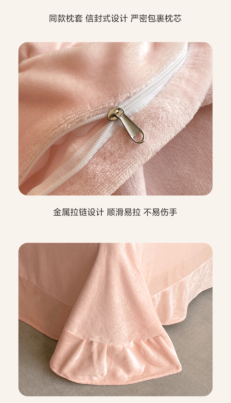商品名称:畅畅家纺 2025新款轻奢高档冬季工艺款牛奶绒毛巾绣床单床笠四件套 梦境-樱花粉