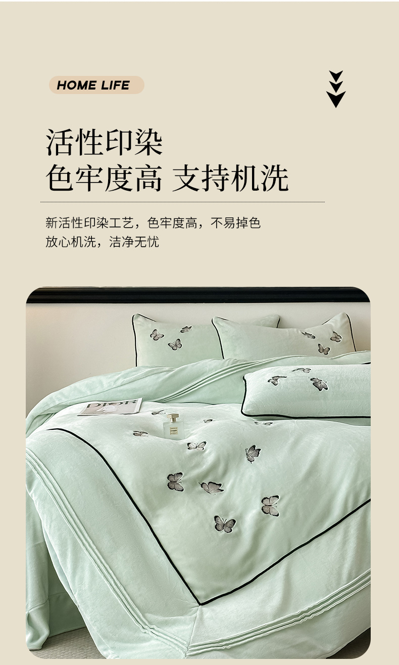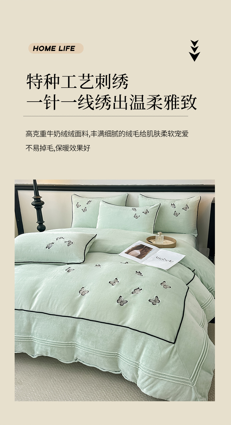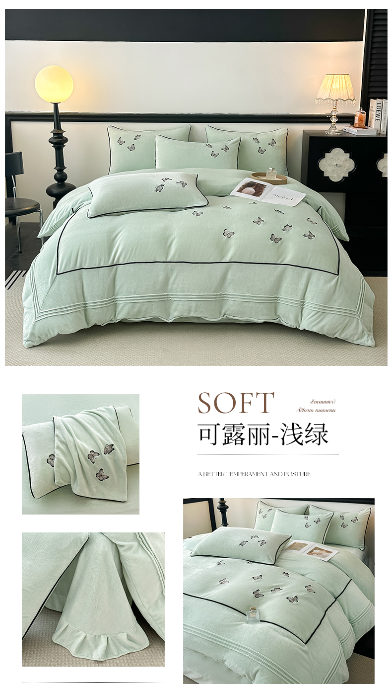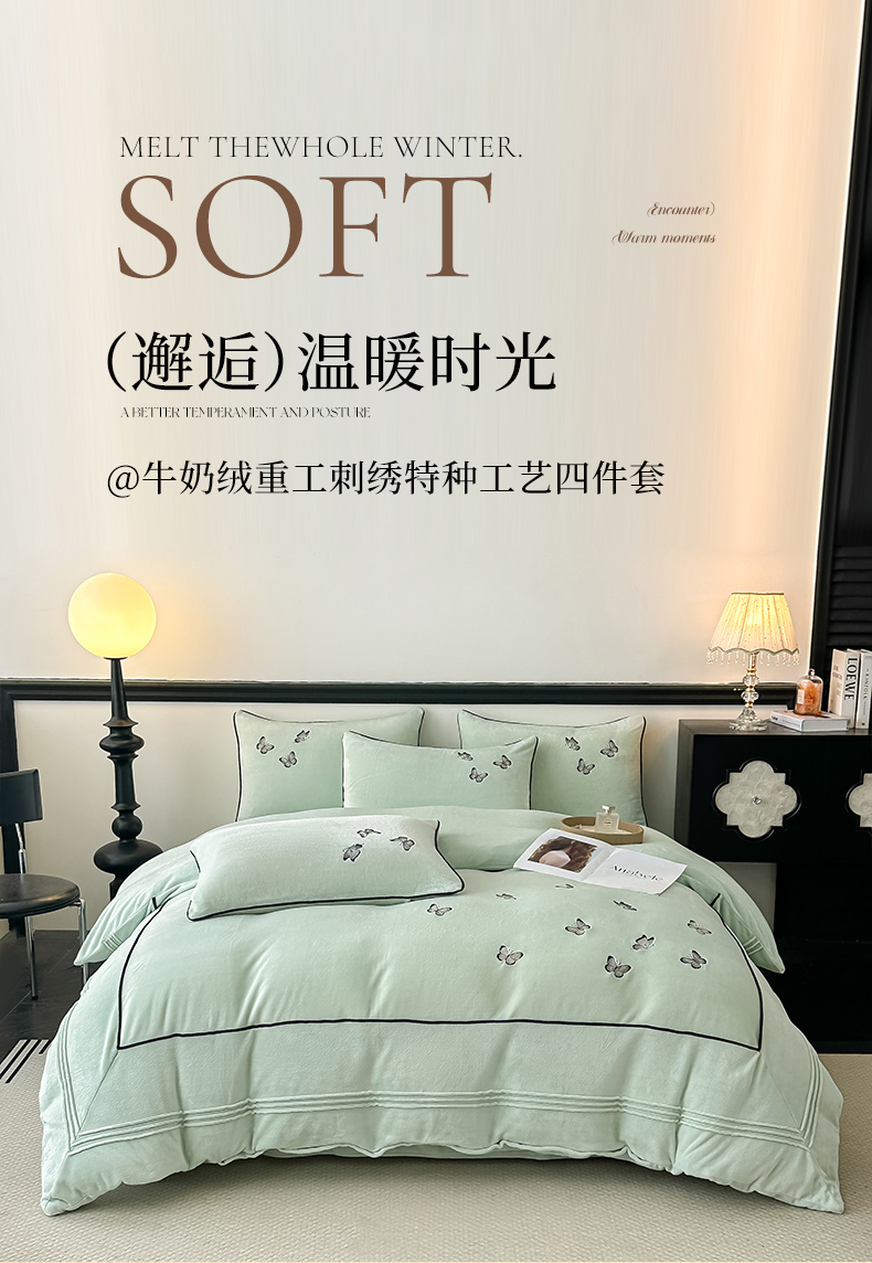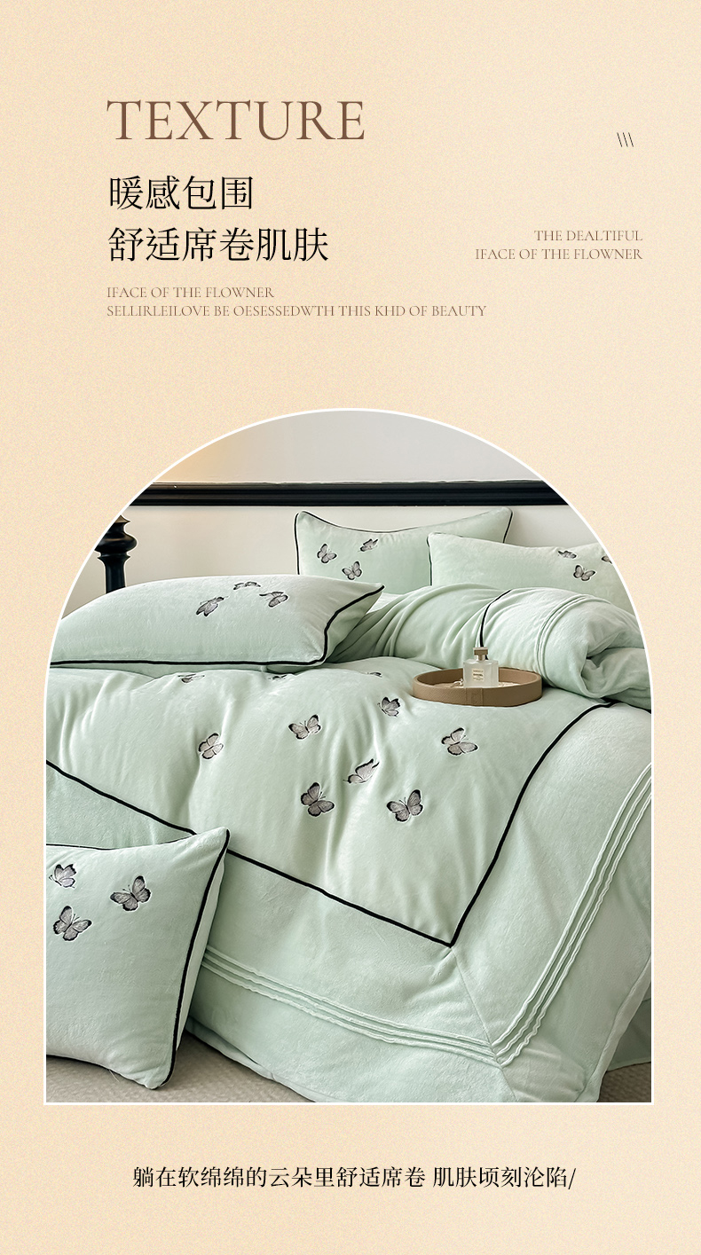 当前位置: 91家纺网 > 商品网购 > 床品套件 > 四件套 > 牛奶绒四件套 > 凯美家居 2025新款牛奶绒重工刺绣特种工艺四件套-可露丽 可露丽-浅绿