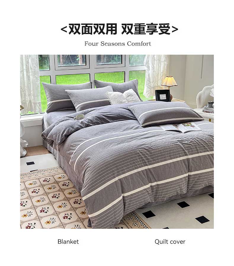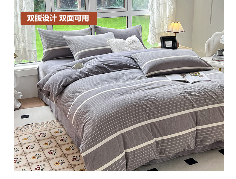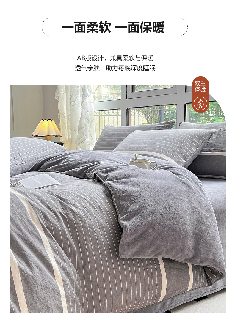 当前位置: 91家纺网 > 商品网购 > 床品套件 > 四件套 > 全棉普通四件套 > 柠萌家居 2025新款无印良品风双拼全棉色织水洗棉加牛奶绒四件套简约全棉拼牛奶绒四件套 提供买家秀 棉+绒米密条