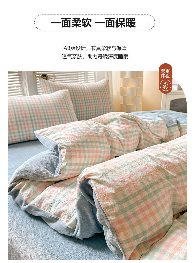 • 91家纺网 家纺一手货源 找家纺 柠萌家居 2025新款无印良品风双拼全棉色织水洗棉加牛奶绒单品被套简约风全棉拼牛奶绒单被套 棉+绒冰激凌格
