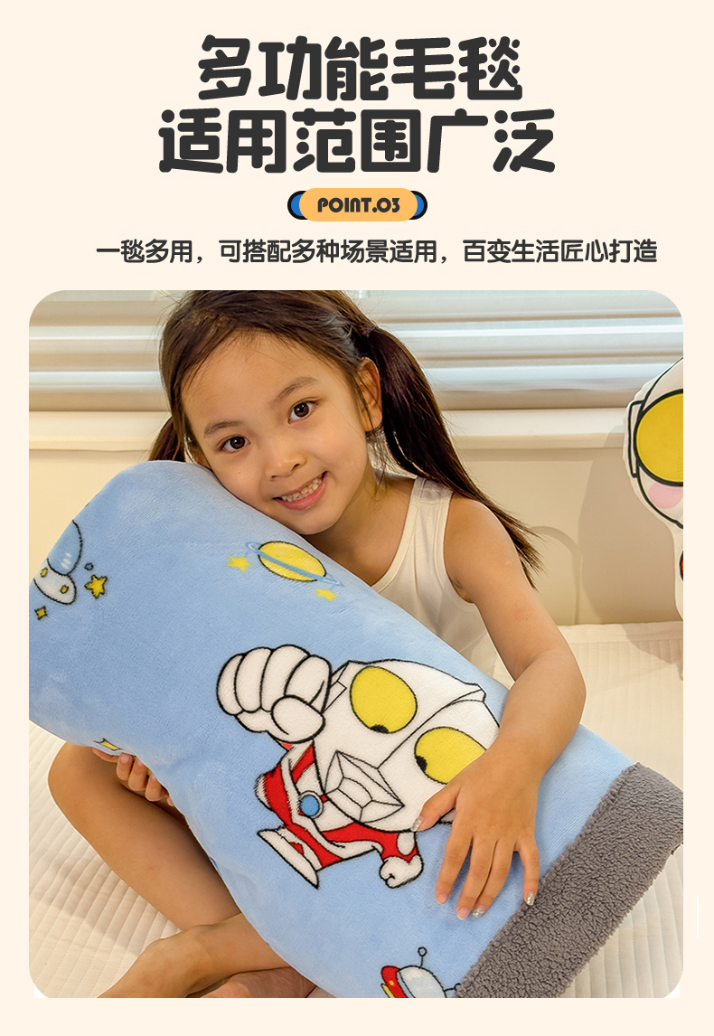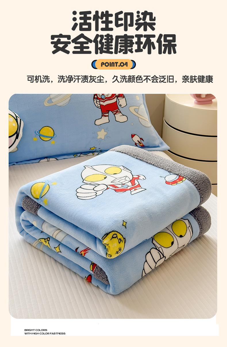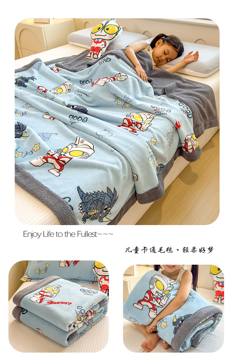 商品名称:云恋家纺 2025新款儿童卡通加厚牛奶绒北极绒双层绒毛毯 超人奥特曼