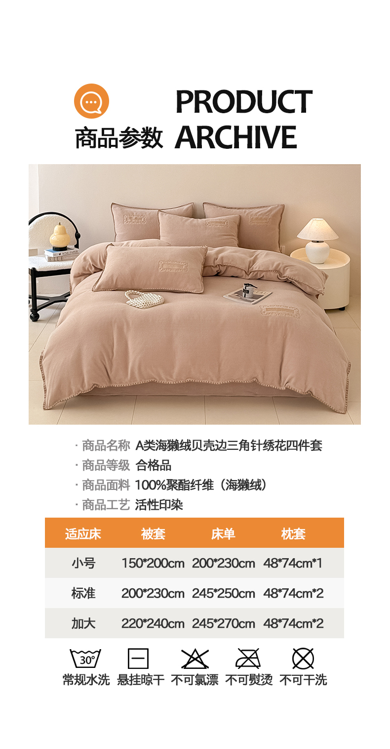 当前位置: 91家纺网 > 商品网购 > 床品套件 > 四件套 > 其它四件套 > 典曼家纺 2025新款A类贝壳绣纯色海獭绒四件套 橘子红