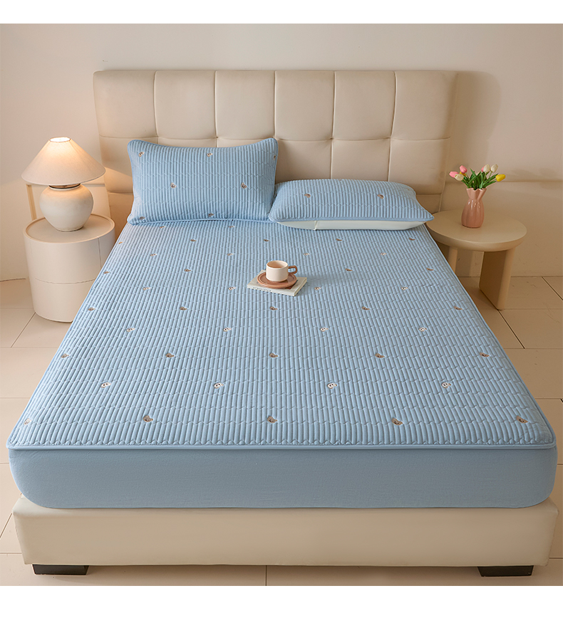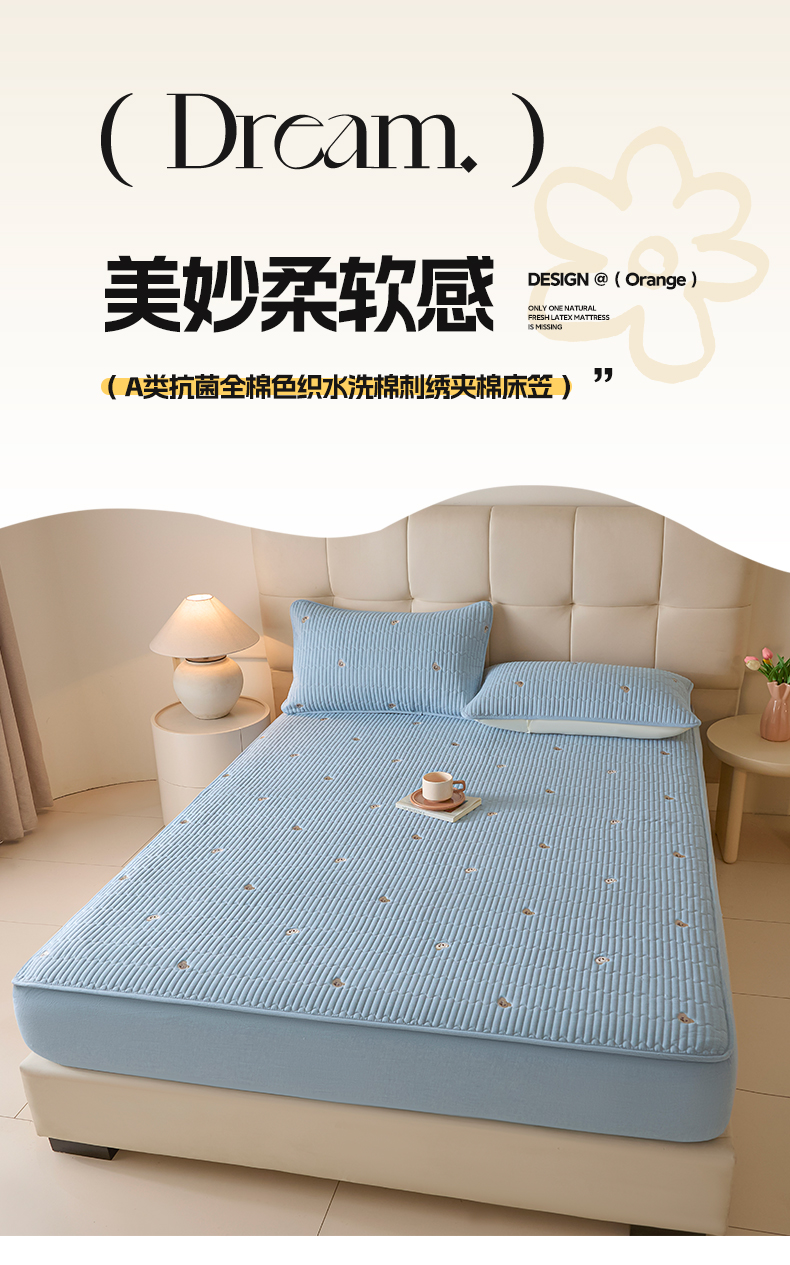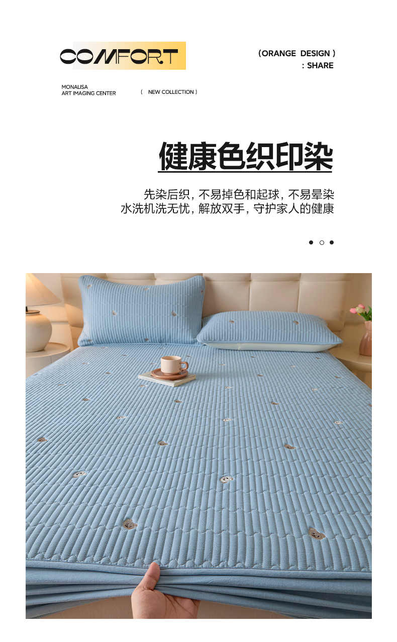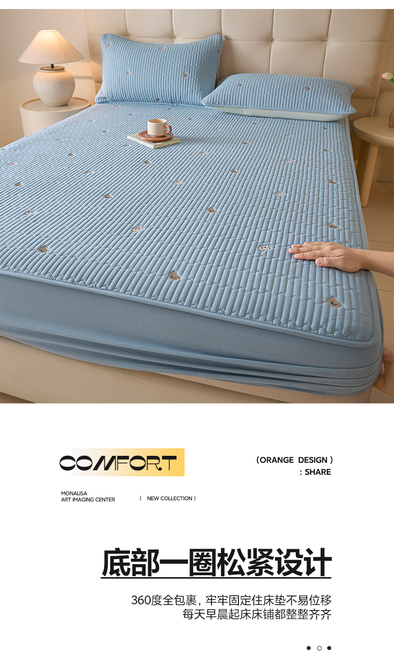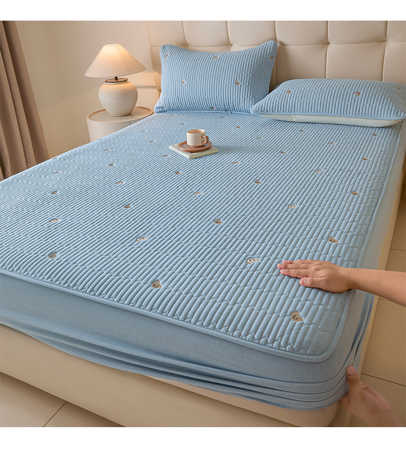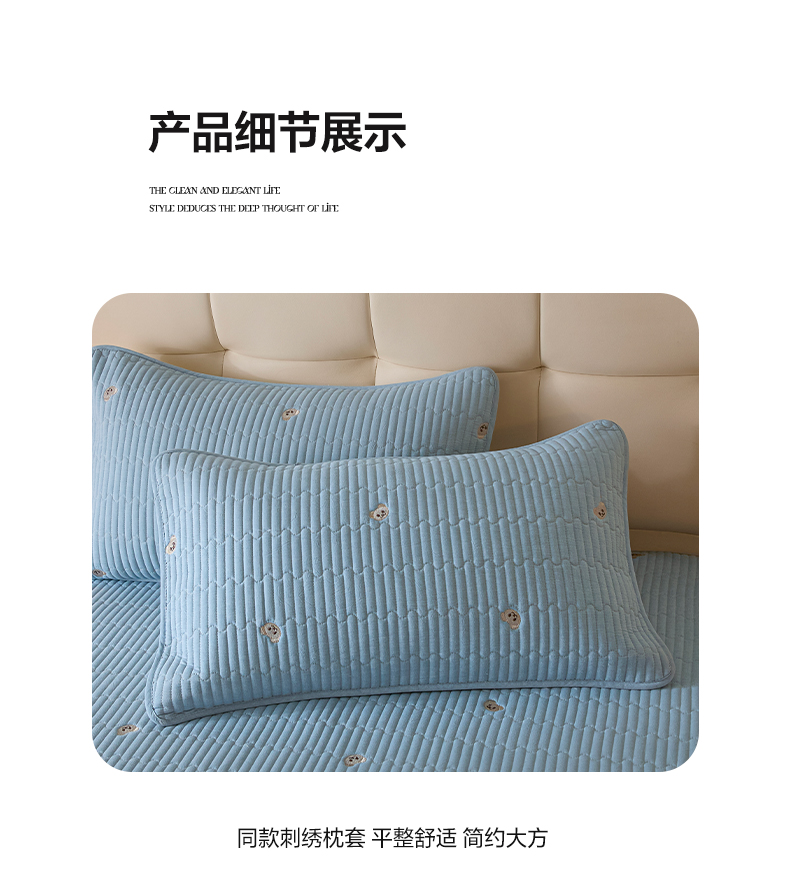 当前位置: 91家纺网 > 商品网购 > 床品套件 > 四件套 > 水洗棉四件套 > 卡伦家纺 2025新品全棉色织水洗棉刺绣夹棉床笠席梦思保护套小熊系列 雾蓝熊