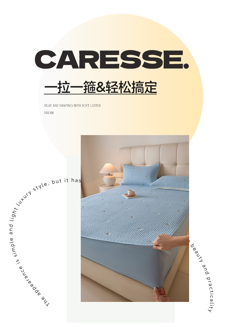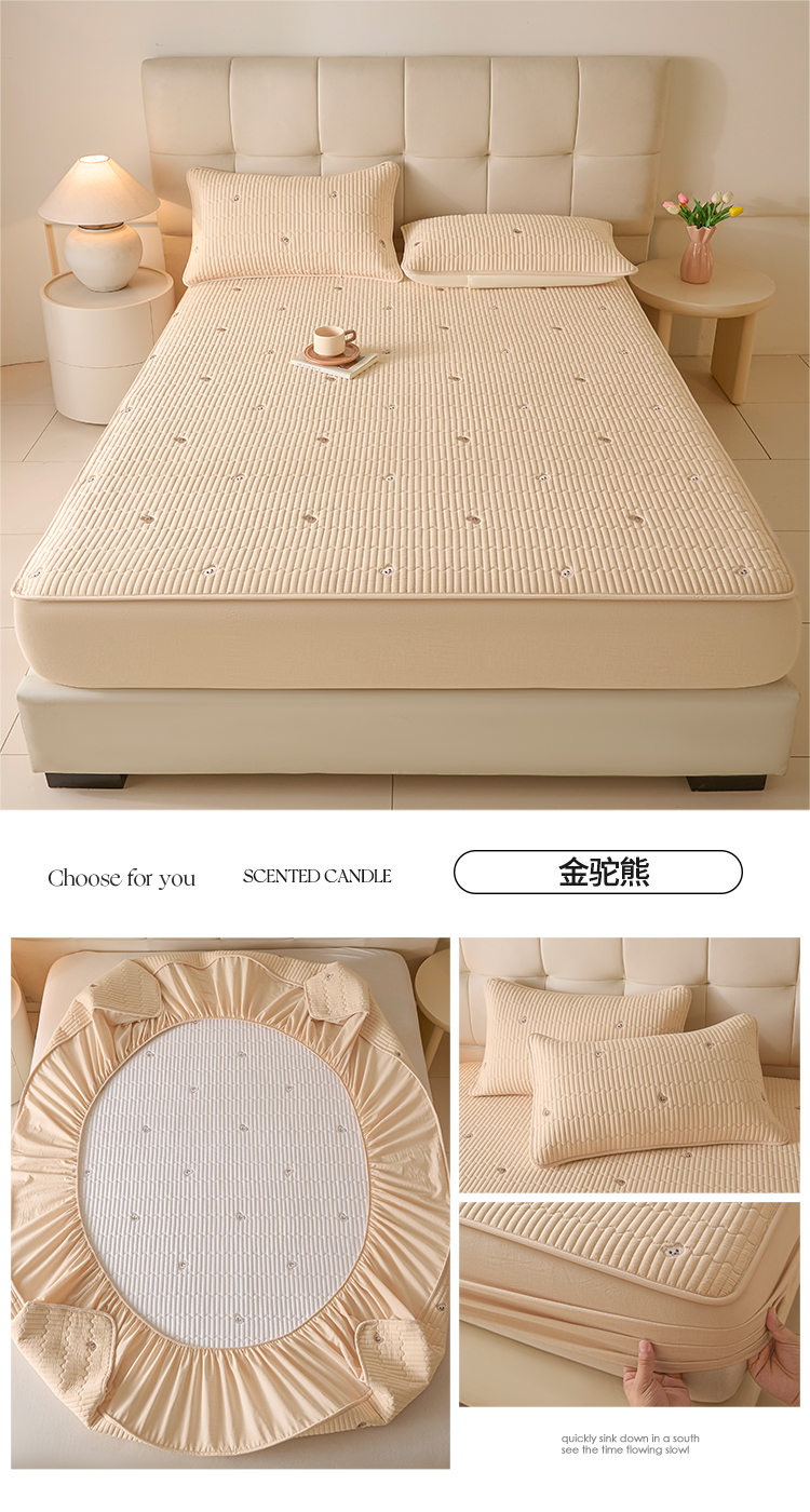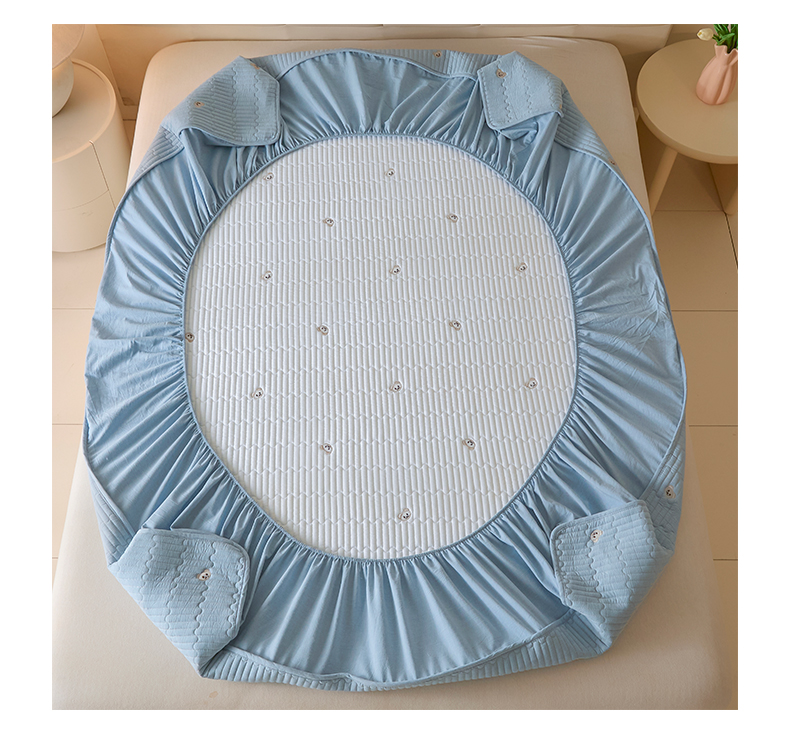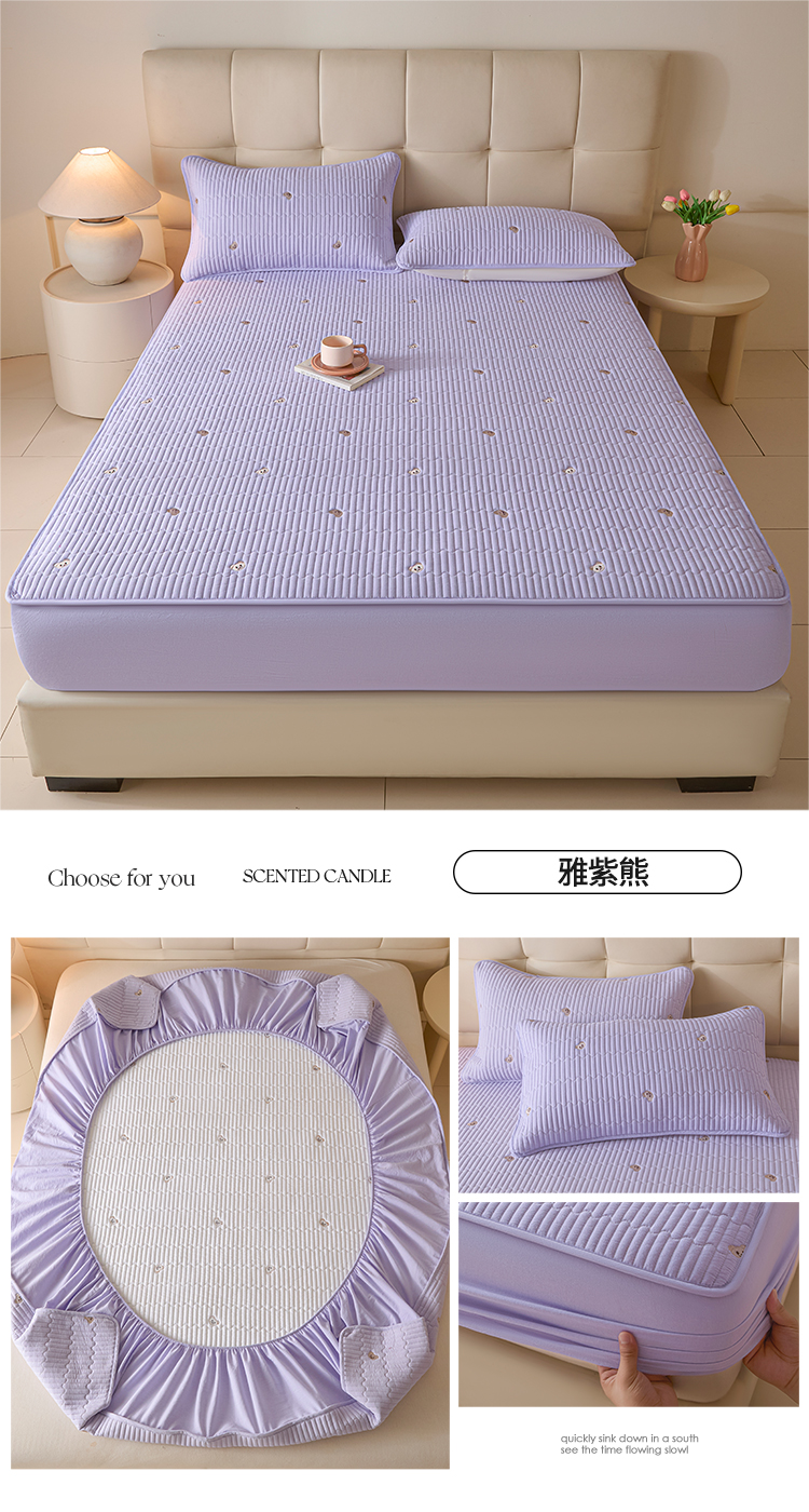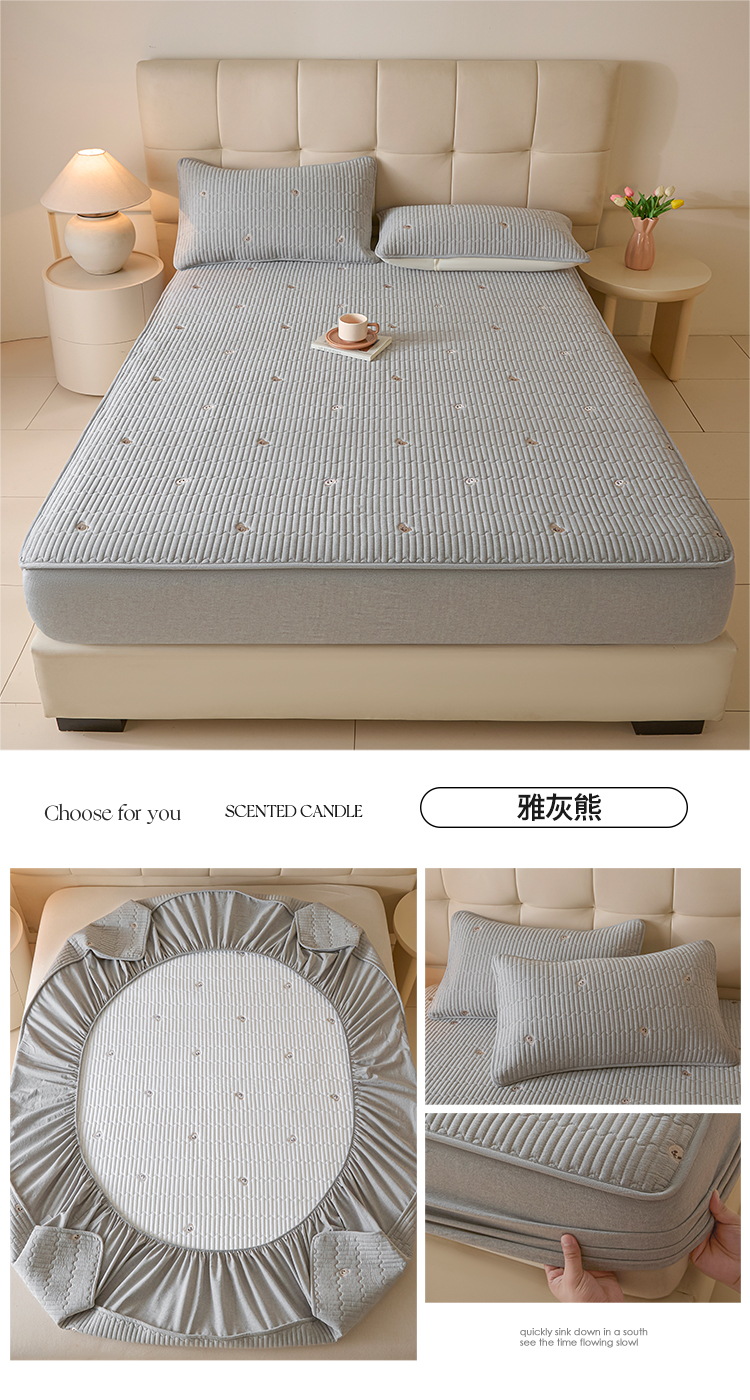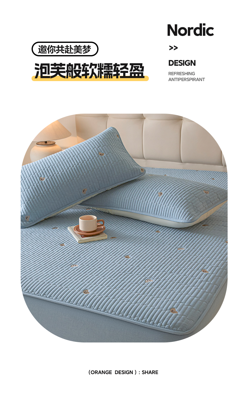 当前位置: 91家纺网 > 商品网购 > 床品套件 > 四件套 > 水洗棉四件套 > 卡伦家纺 2025新品全棉色织水洗棉刺绣夹棉床笠席梦思保护套小熊系列 雾蓝熊