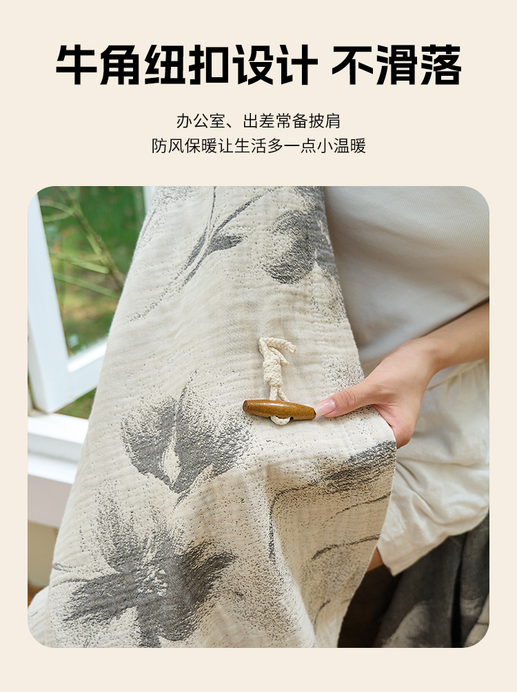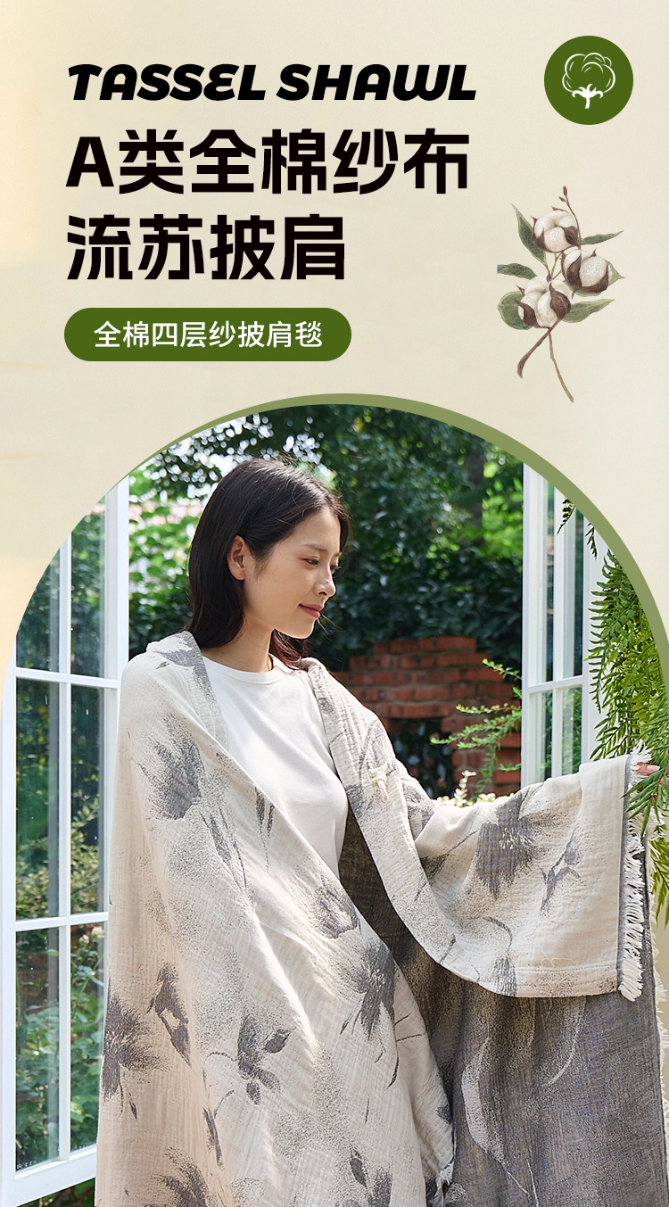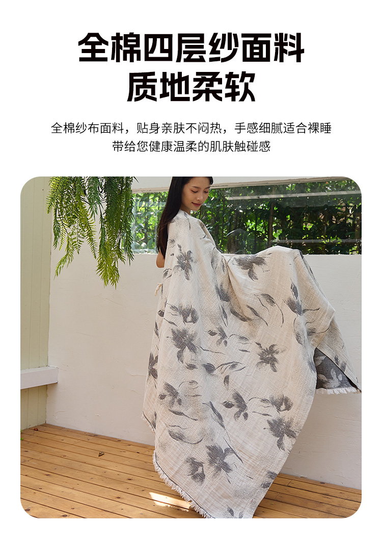 商品名称:沐瑟家纺 2025新款全棉流苏纱布披肩毯空调毯多功能午休毯牛角披肩毯民宿风 水墨花