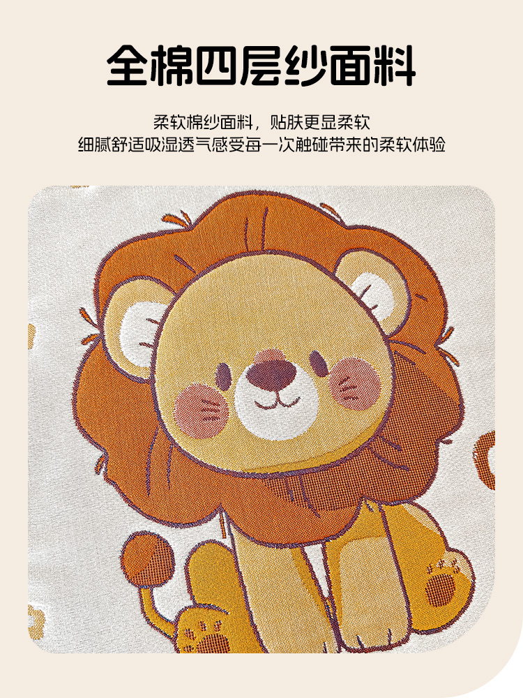 商品名称:沐瑟家纺 2025新款绵柔儿童纯棉纱布儿童枕巾 小狮子