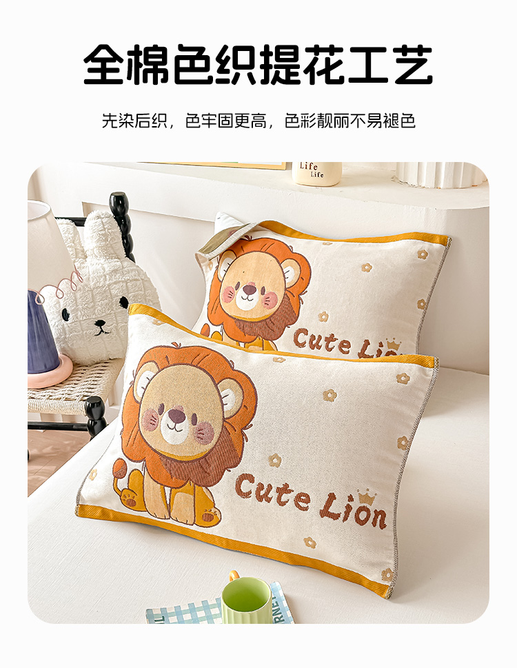 沐瑟家纺 2025新款绵柔儿童纯棉纱布儿童枕巾 小狮子