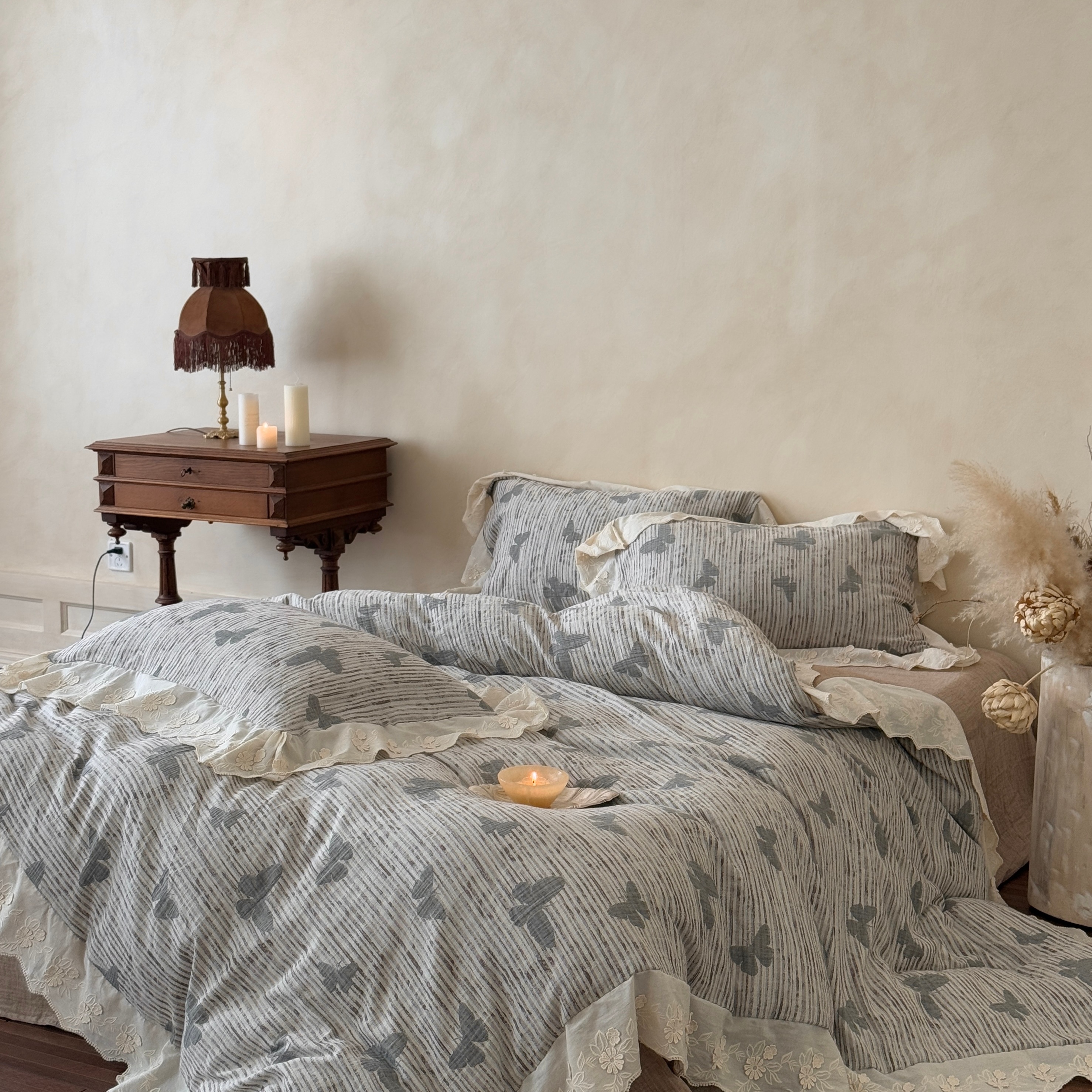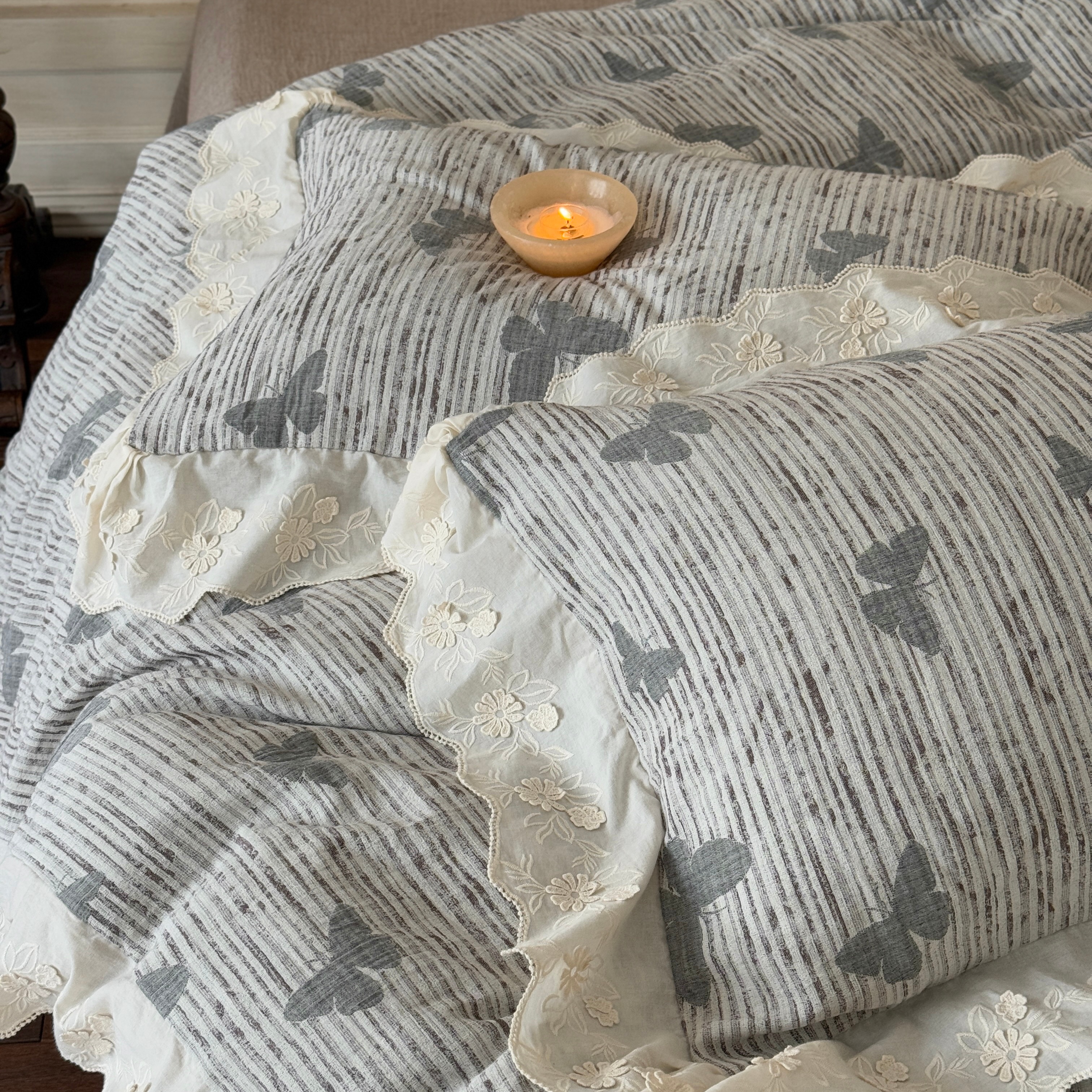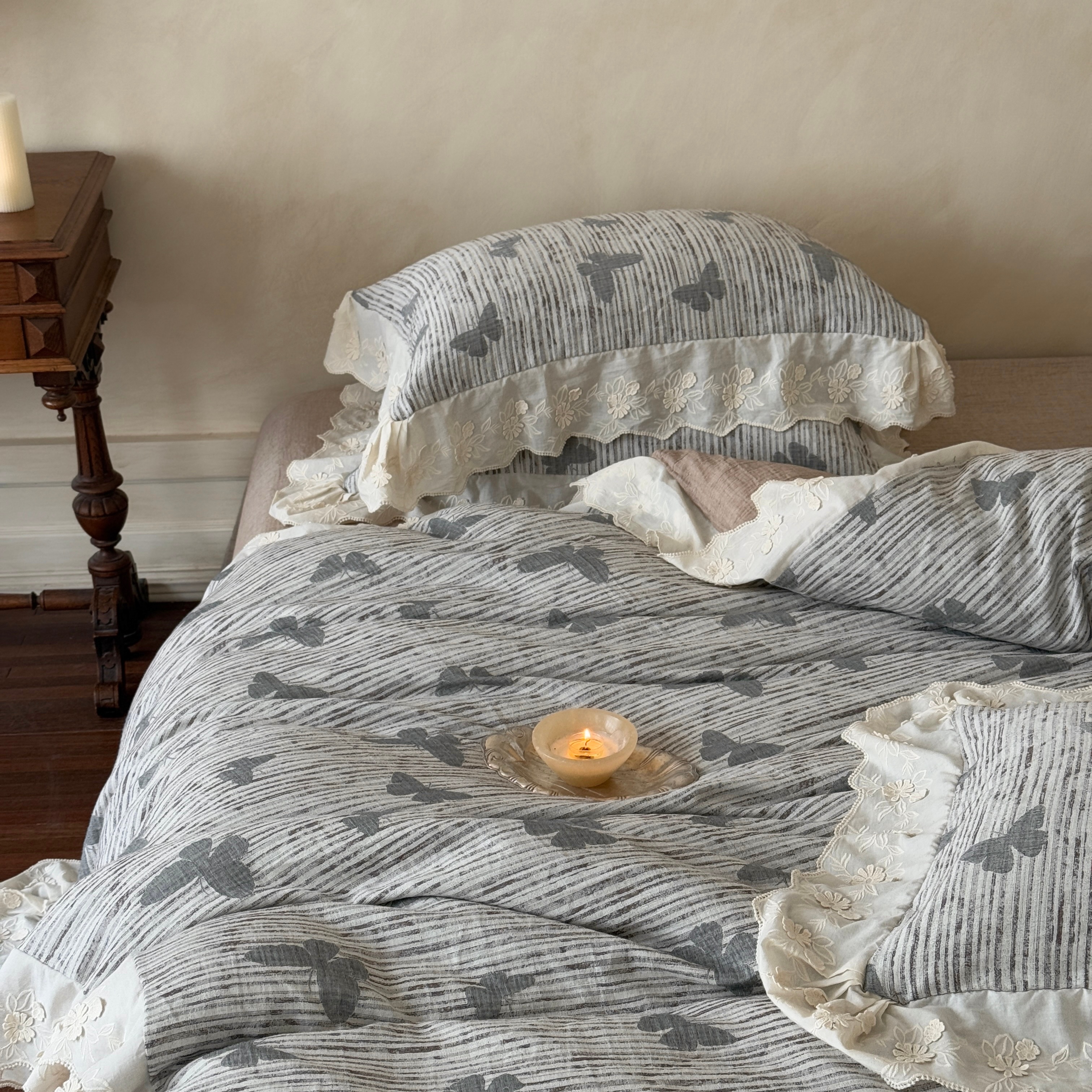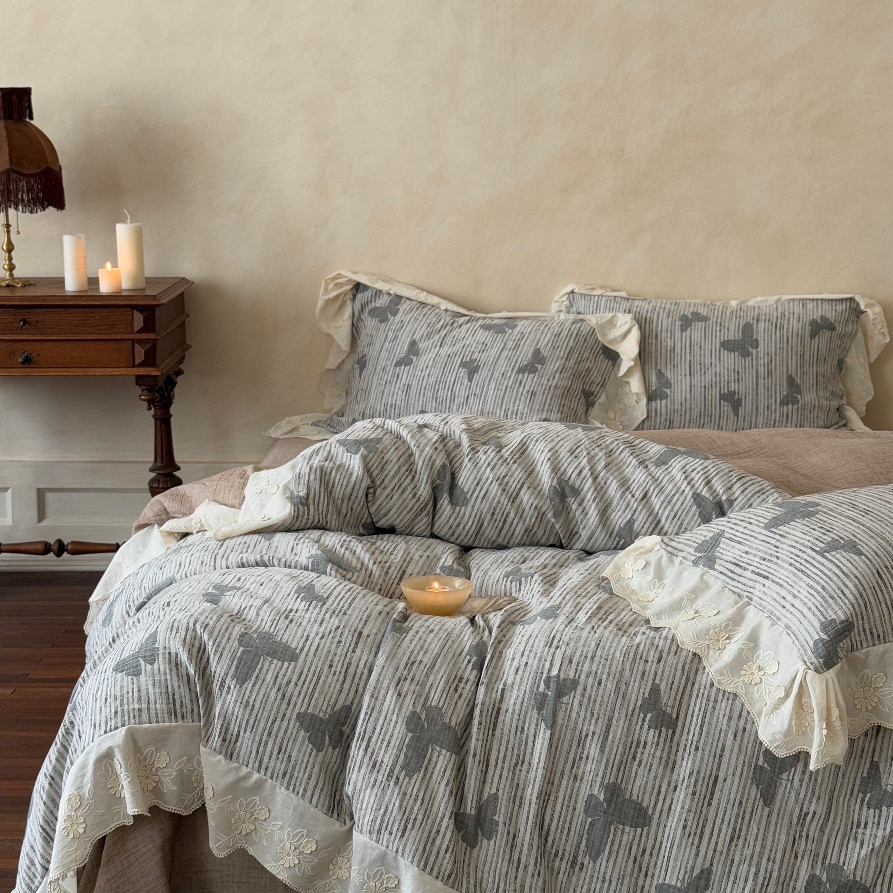 (总)旷野 2025新款空气层提花皱皱纱碎花边工艺款四件套-蝶梦