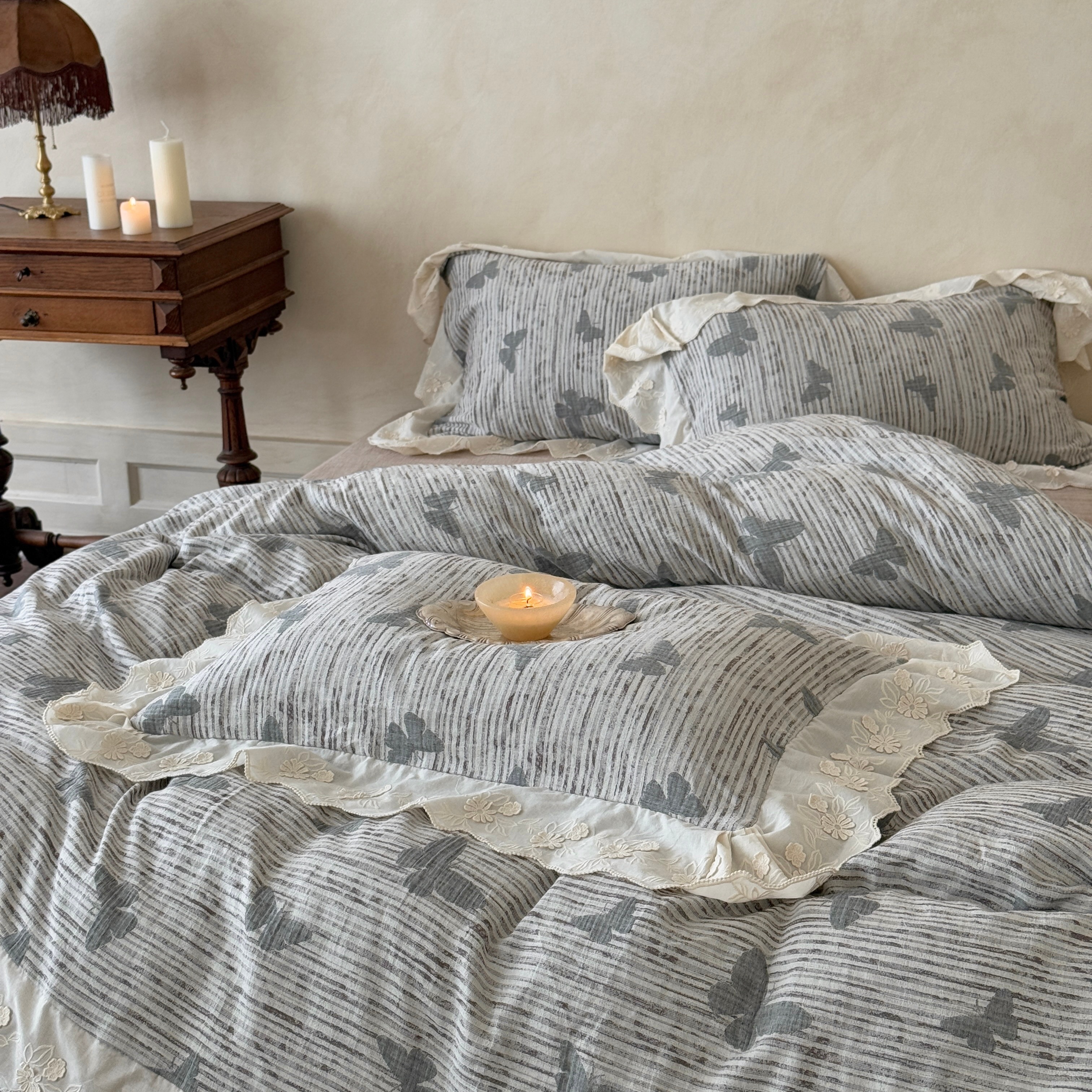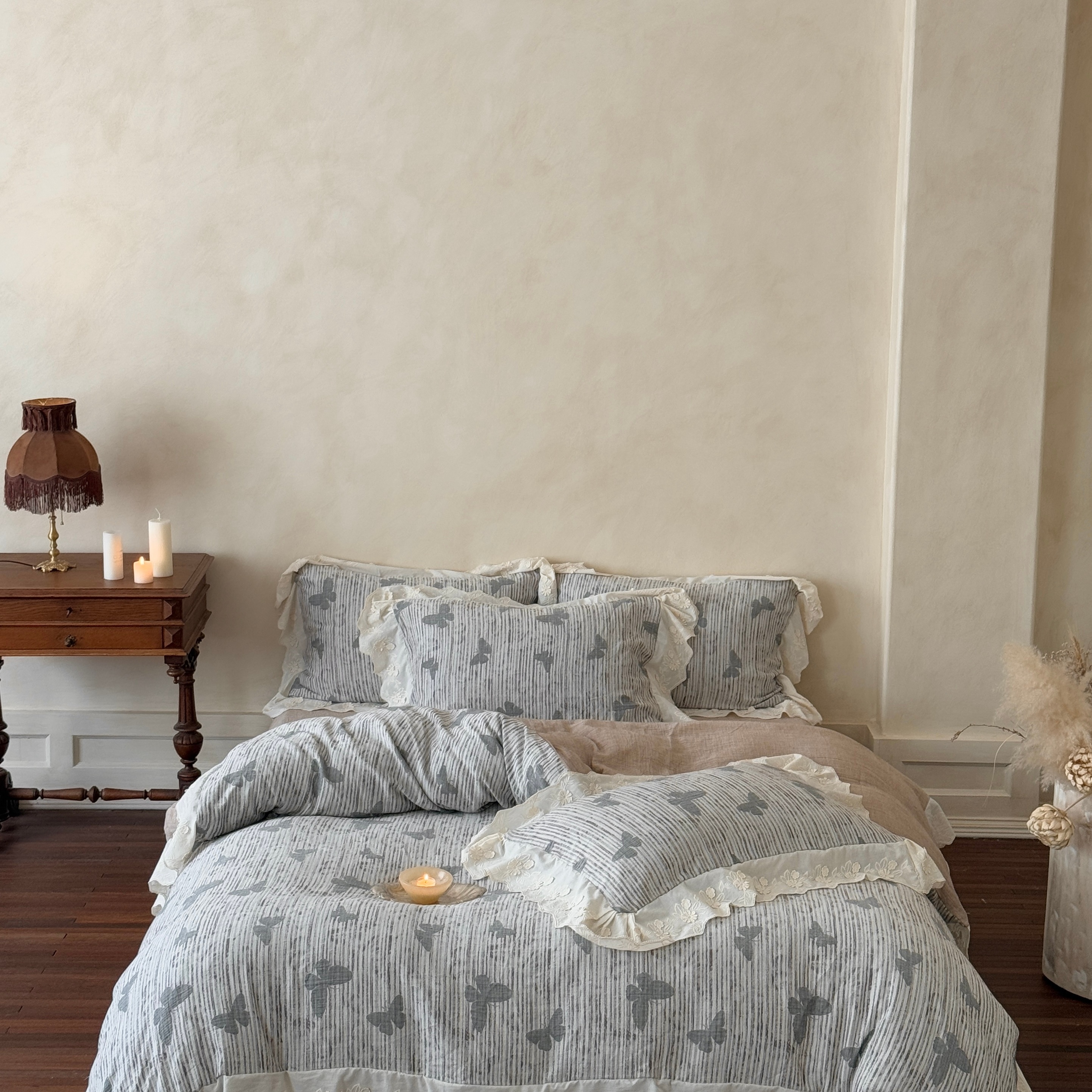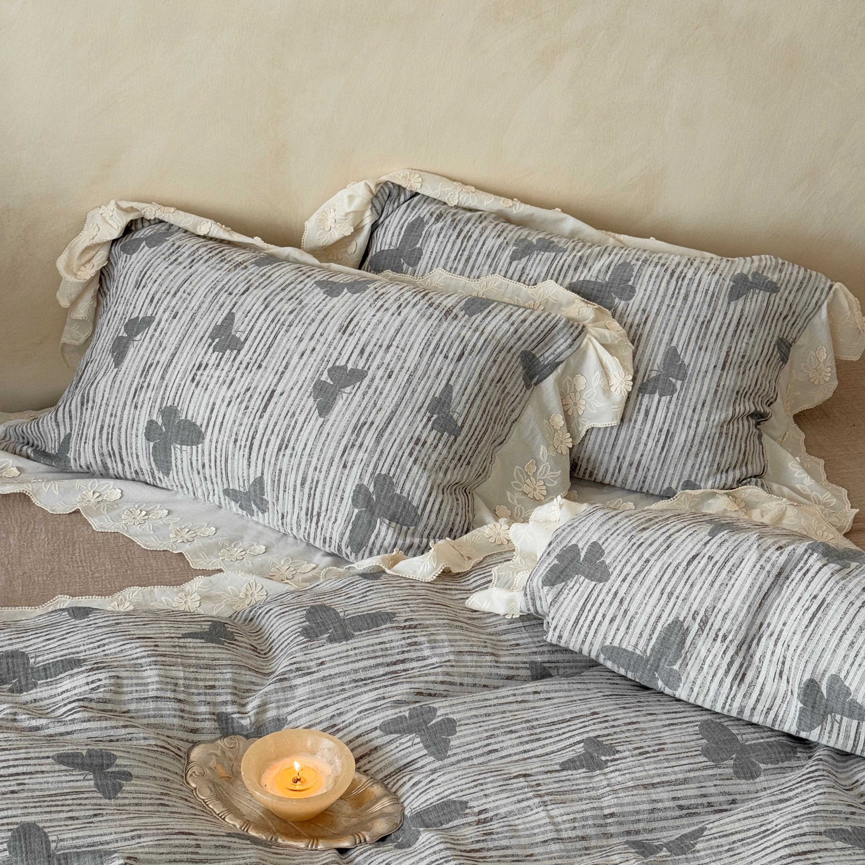 (总)旷野 2025新款空气层提花皱皱纱碎花边工艺款四件套-蝶梦
