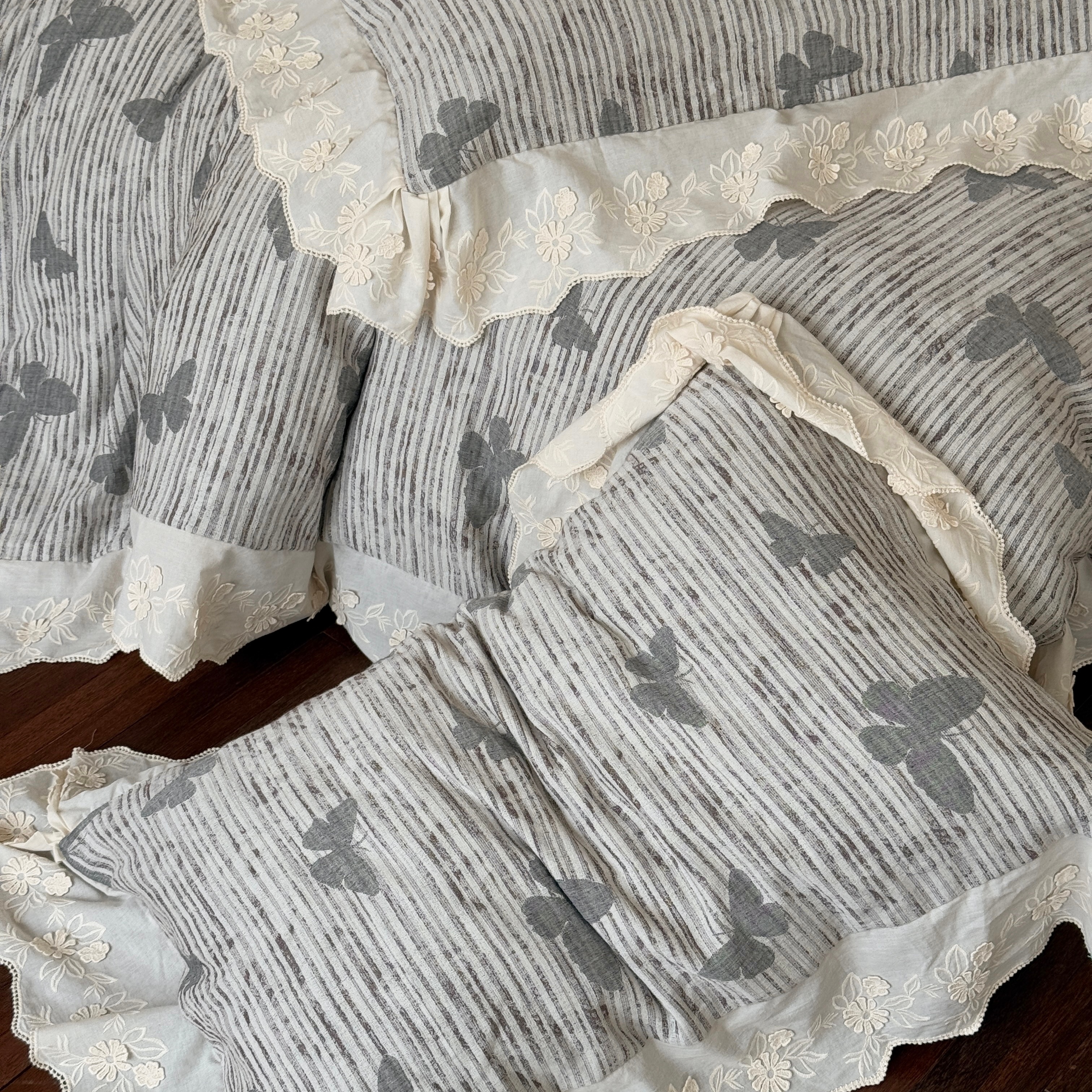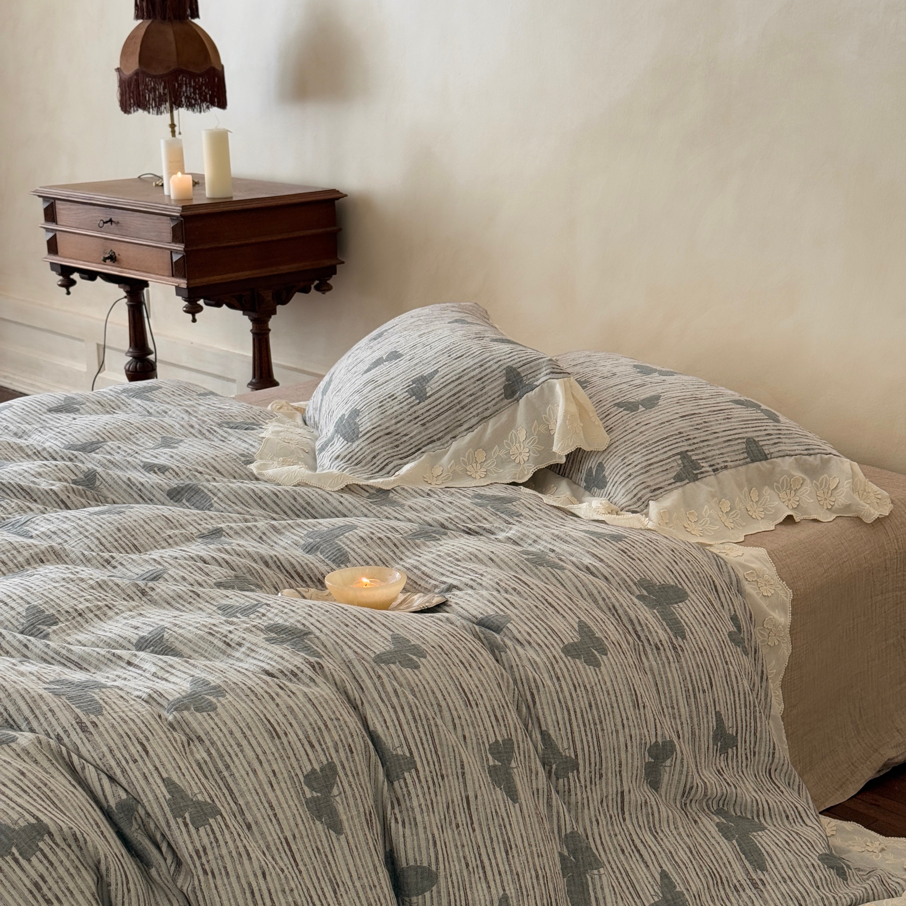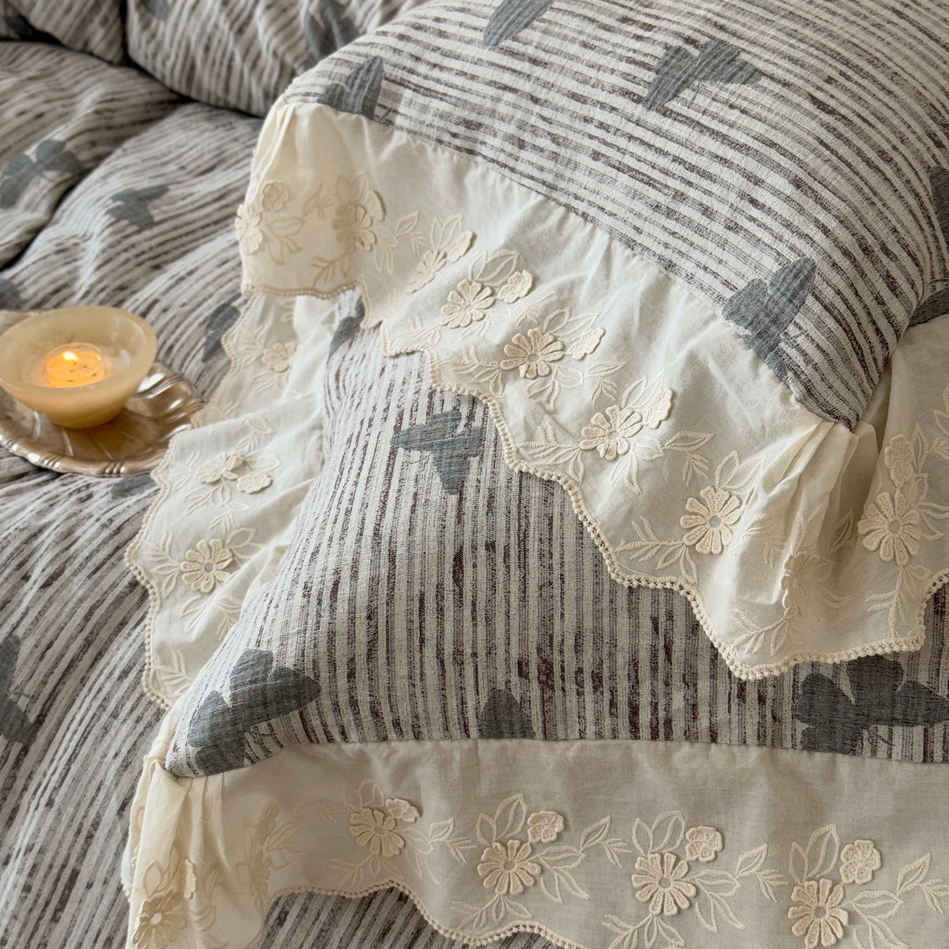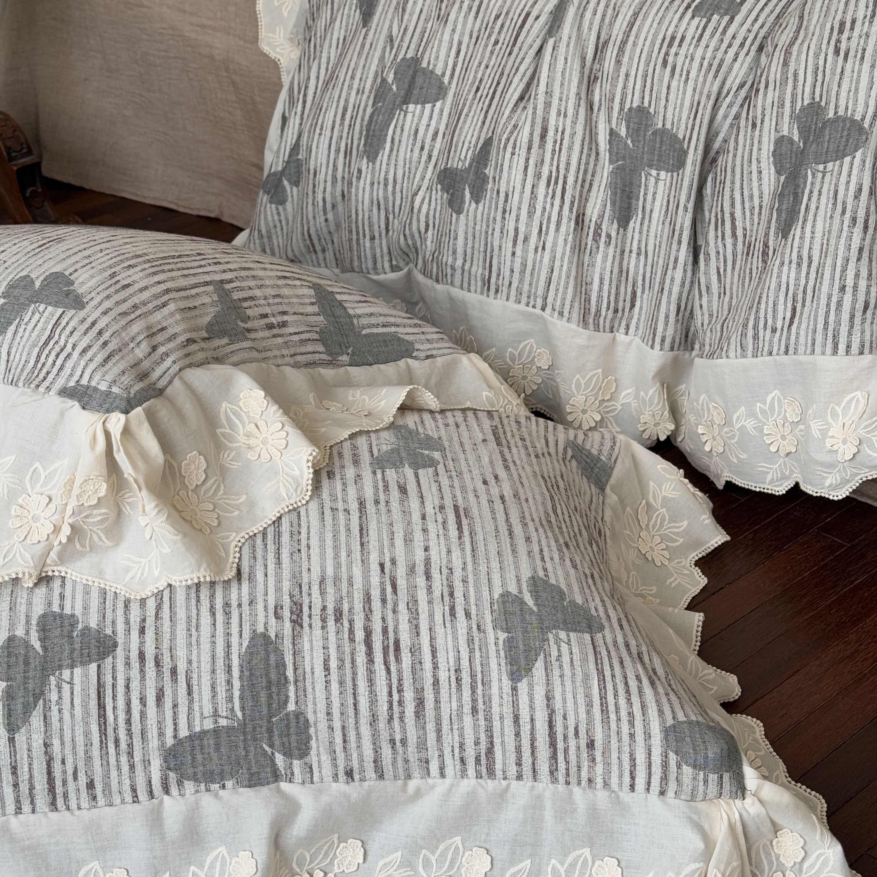 (总)旷野 2025新款空气层提花皱皱纱碎花边工艺款四件套-蝶梦