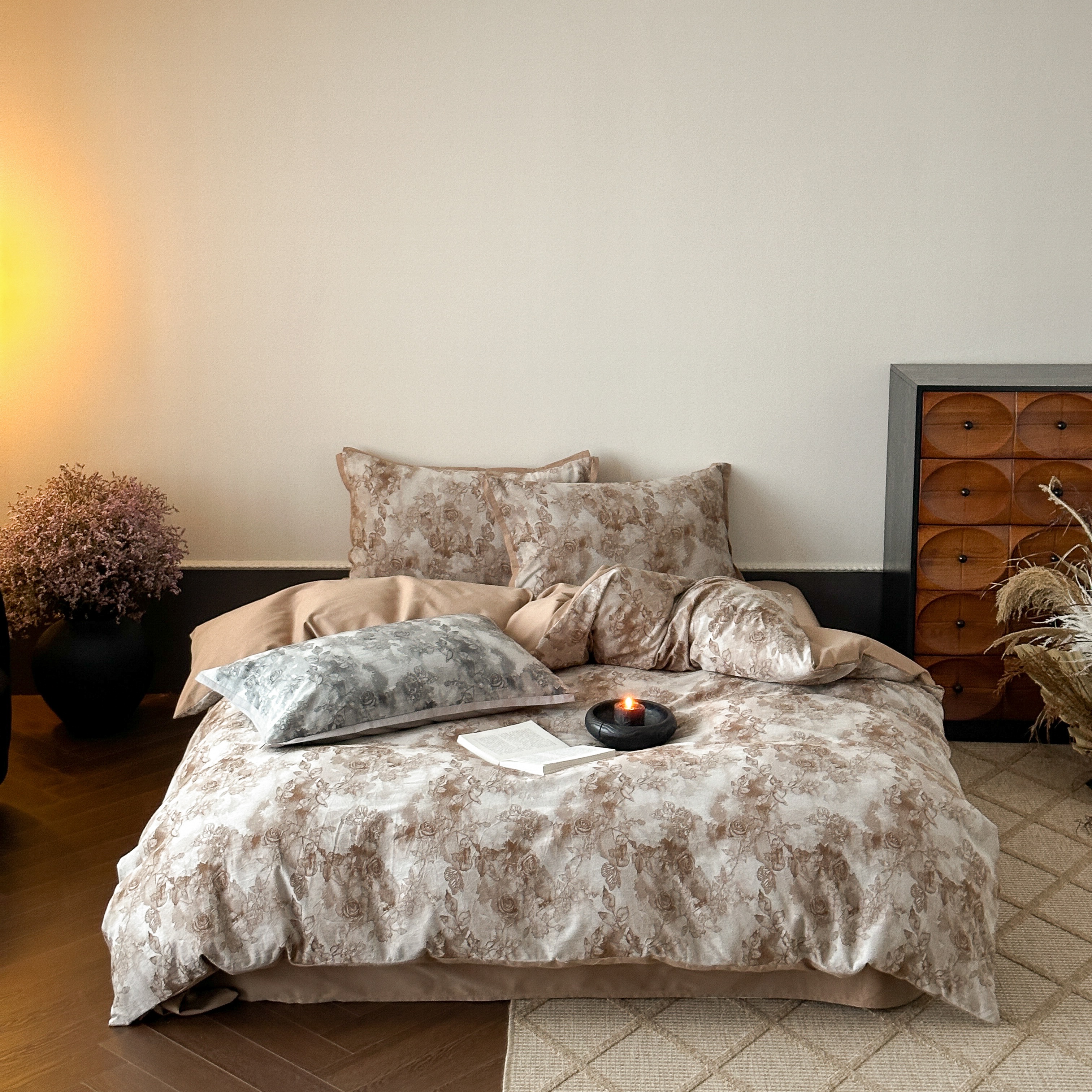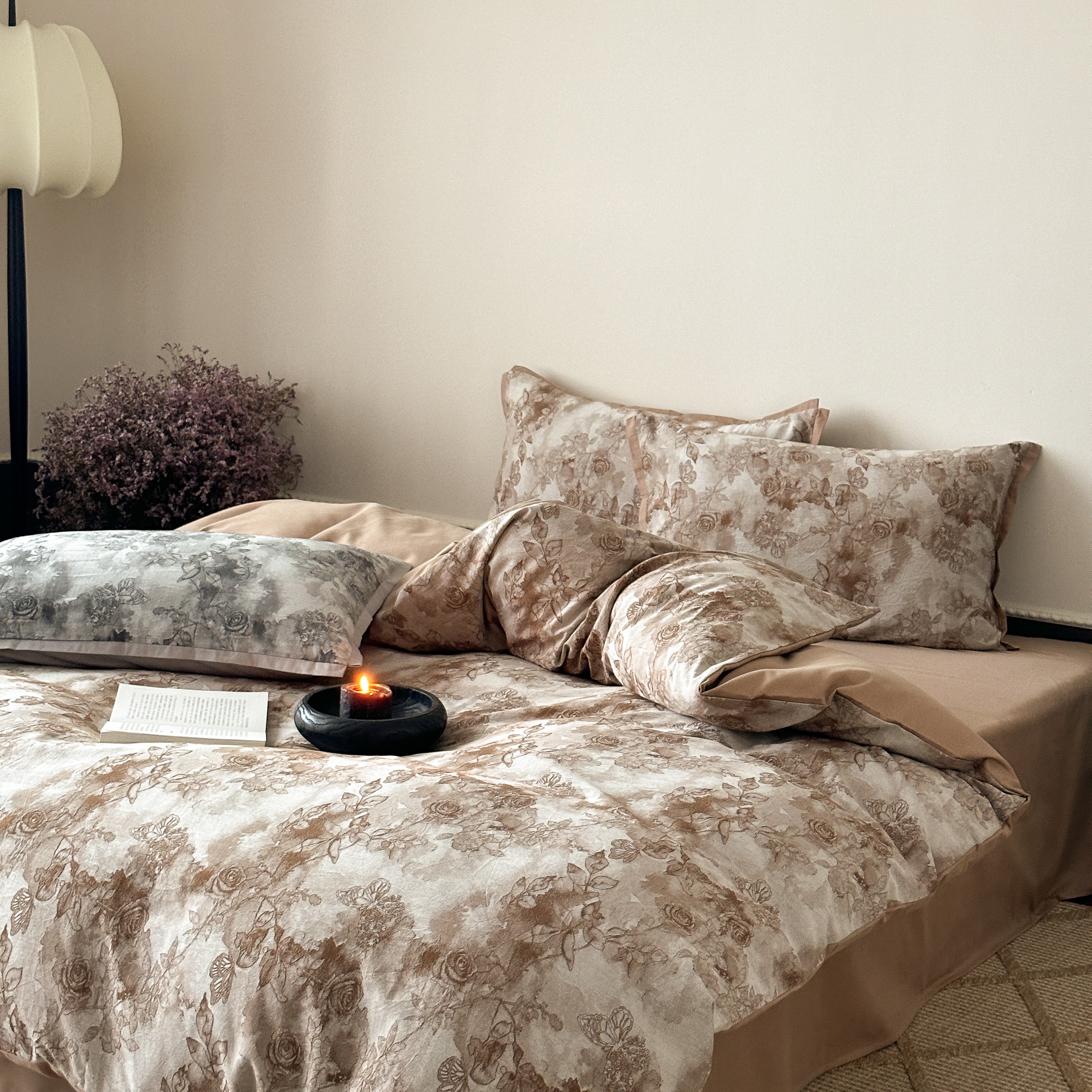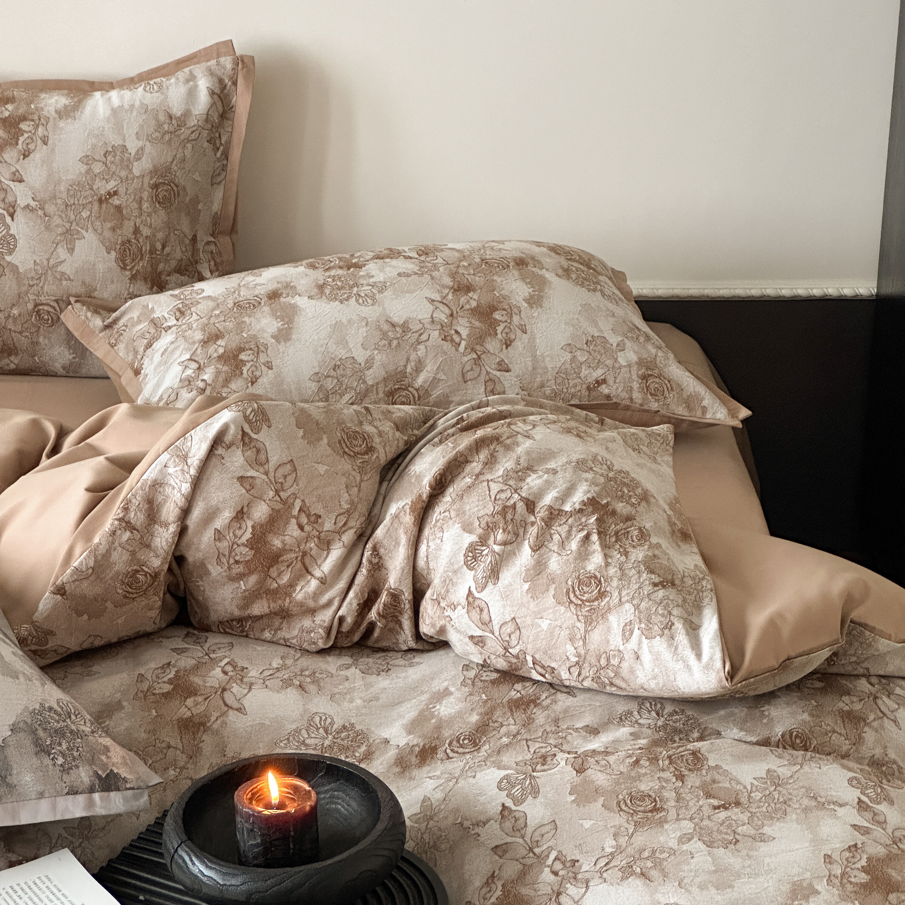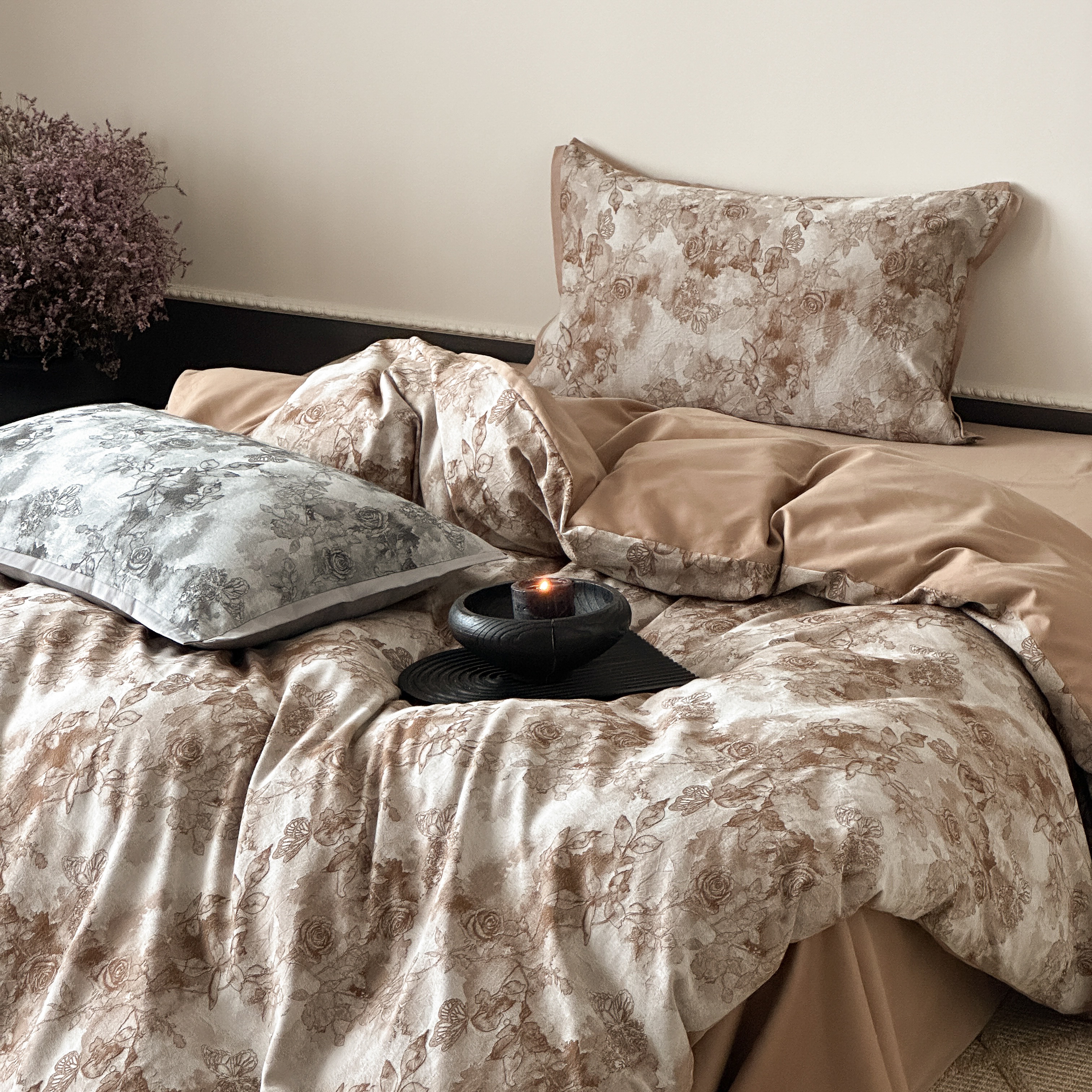商品名称:旷野 2025新款双色提花100支磨毛四件套-薄雾玫瑰 薄雾玫瑰-可可棕