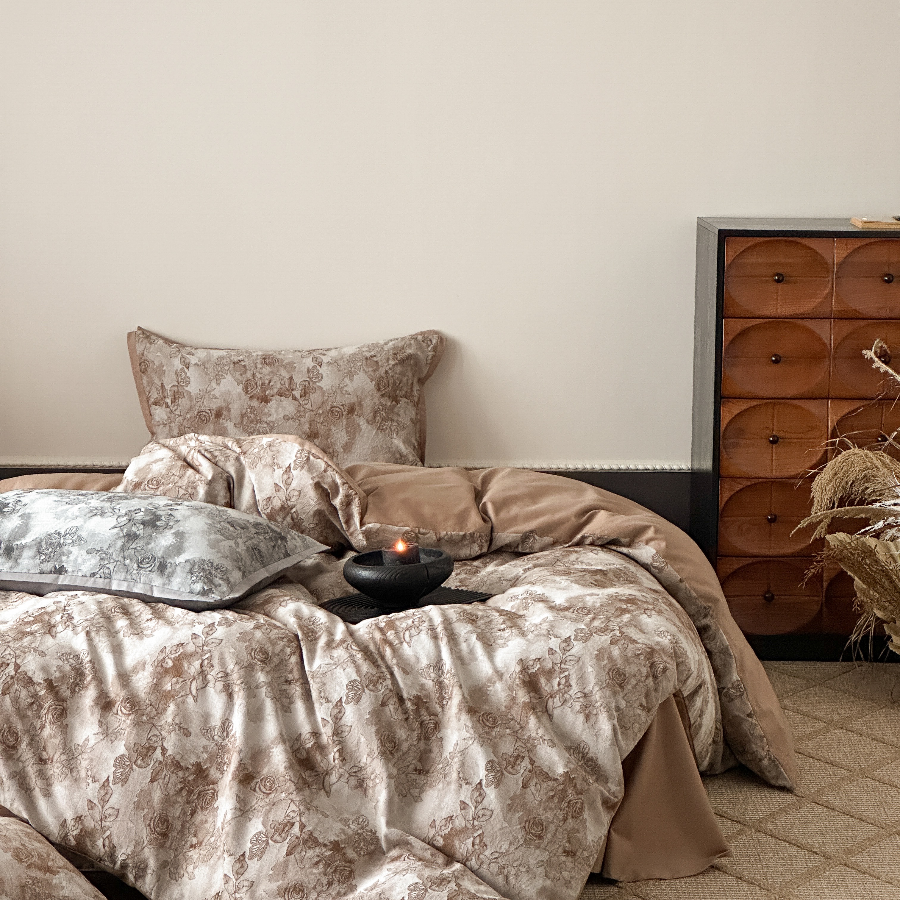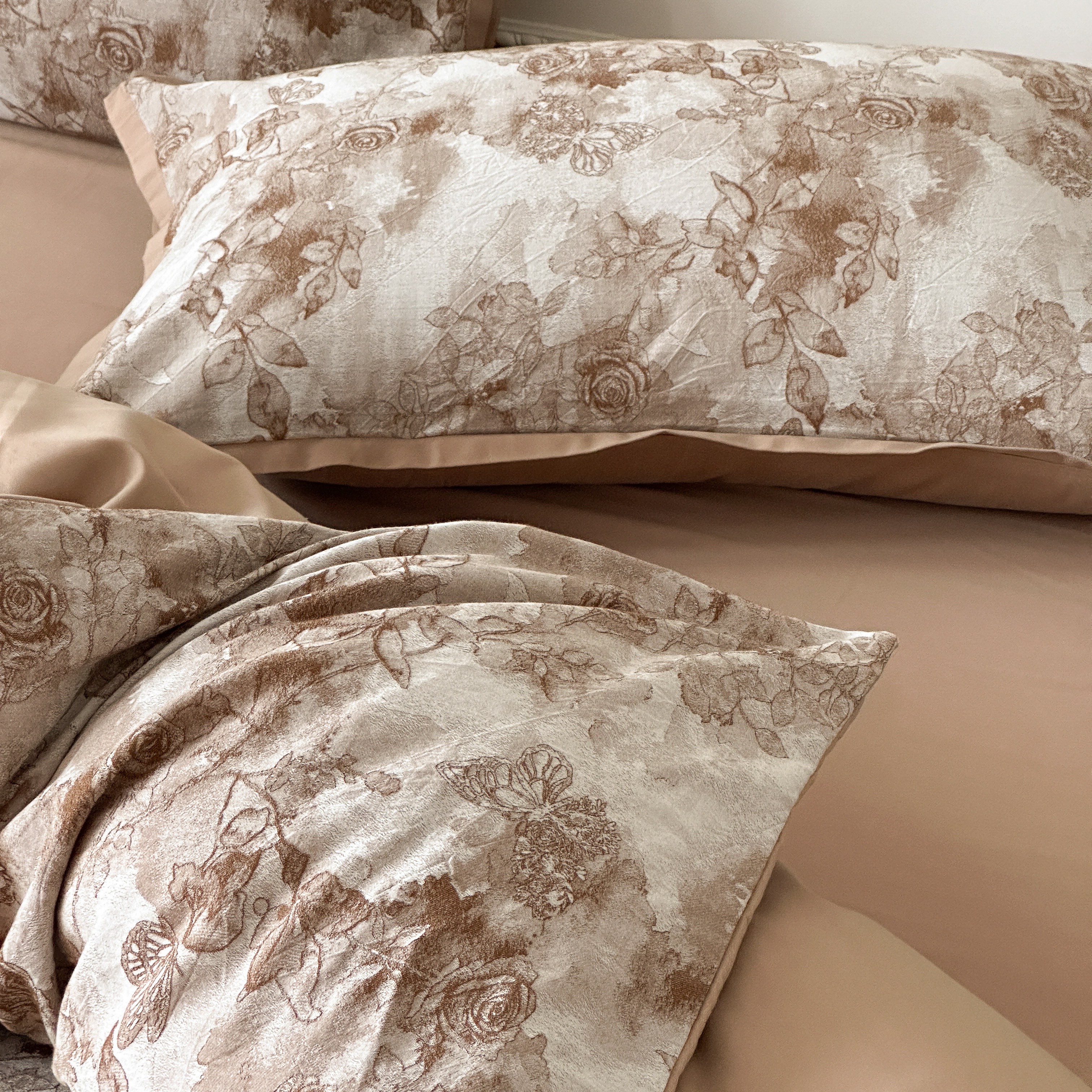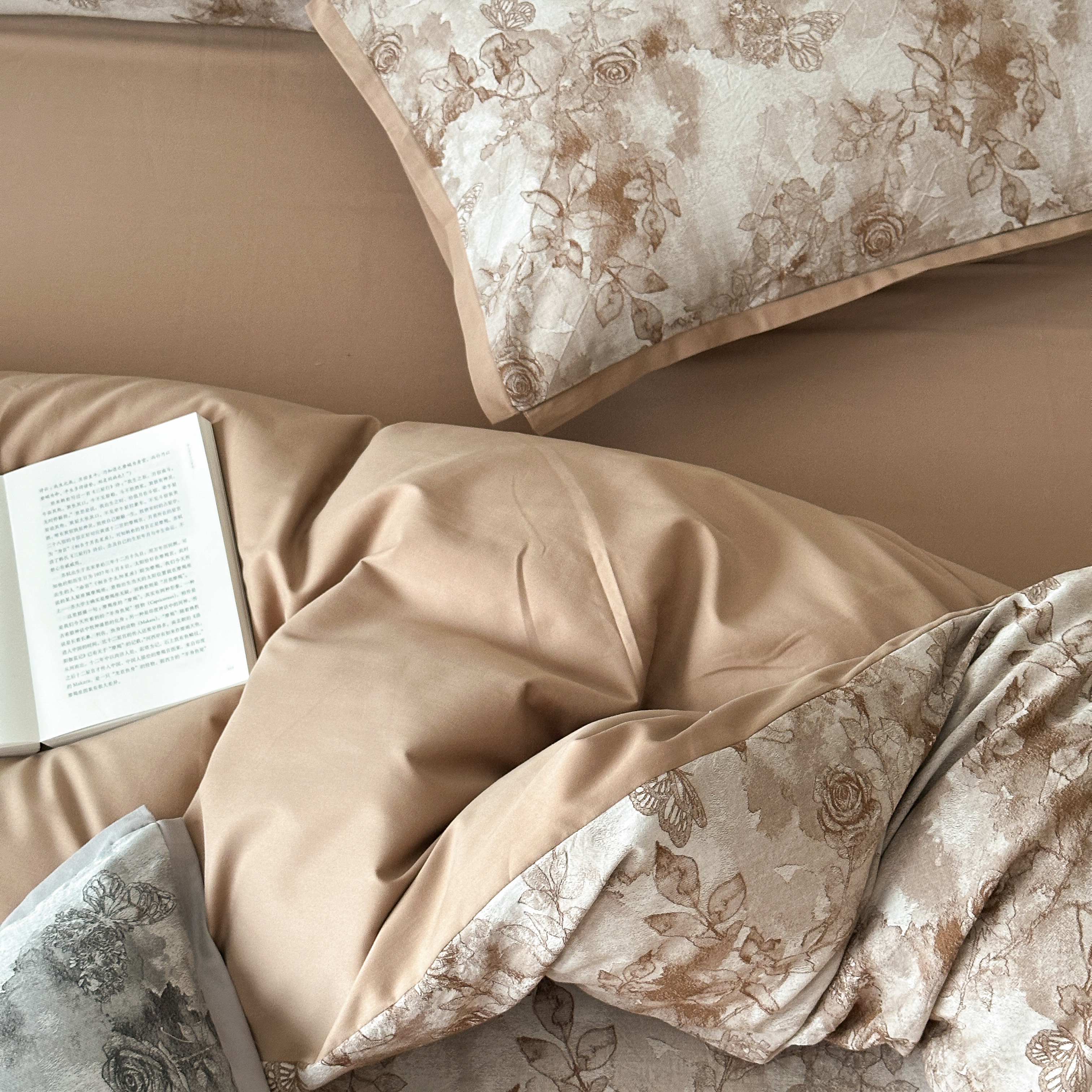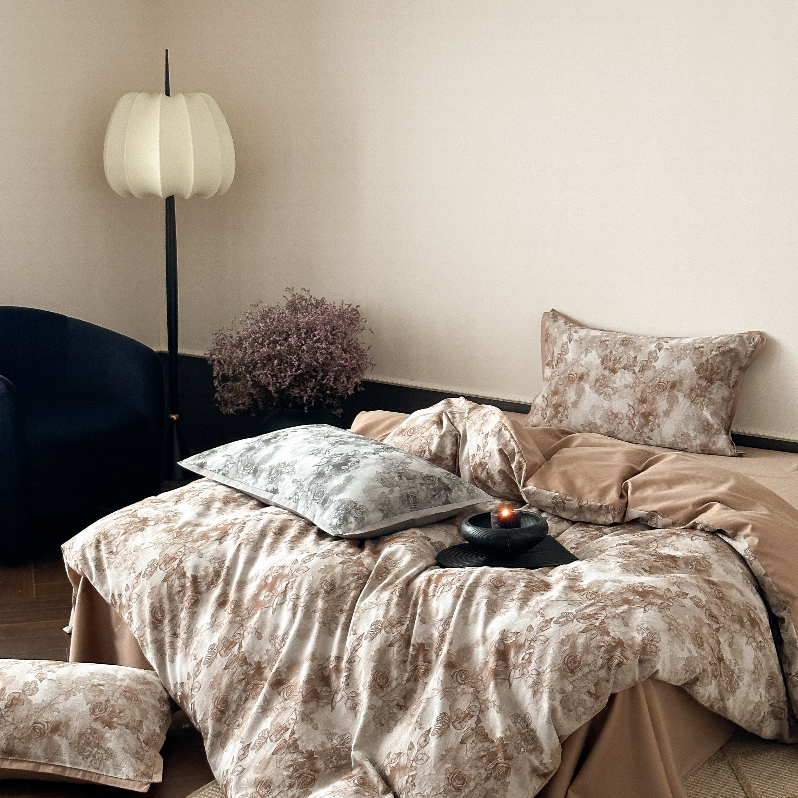 商品名称:旷野 2025新款双色提花100支磨毛四件套-薄雾玫瑰 薄雾玫瑰-可可棕