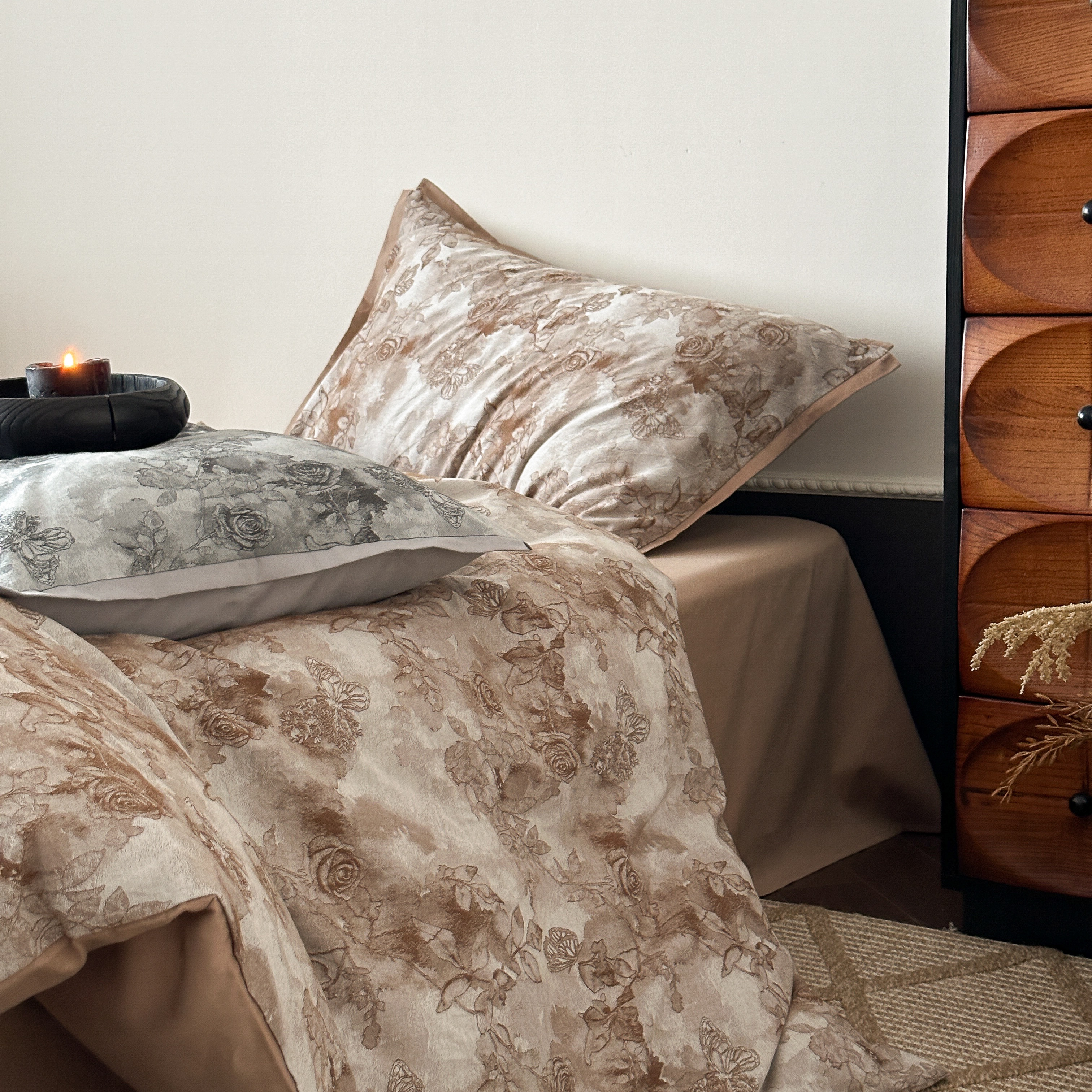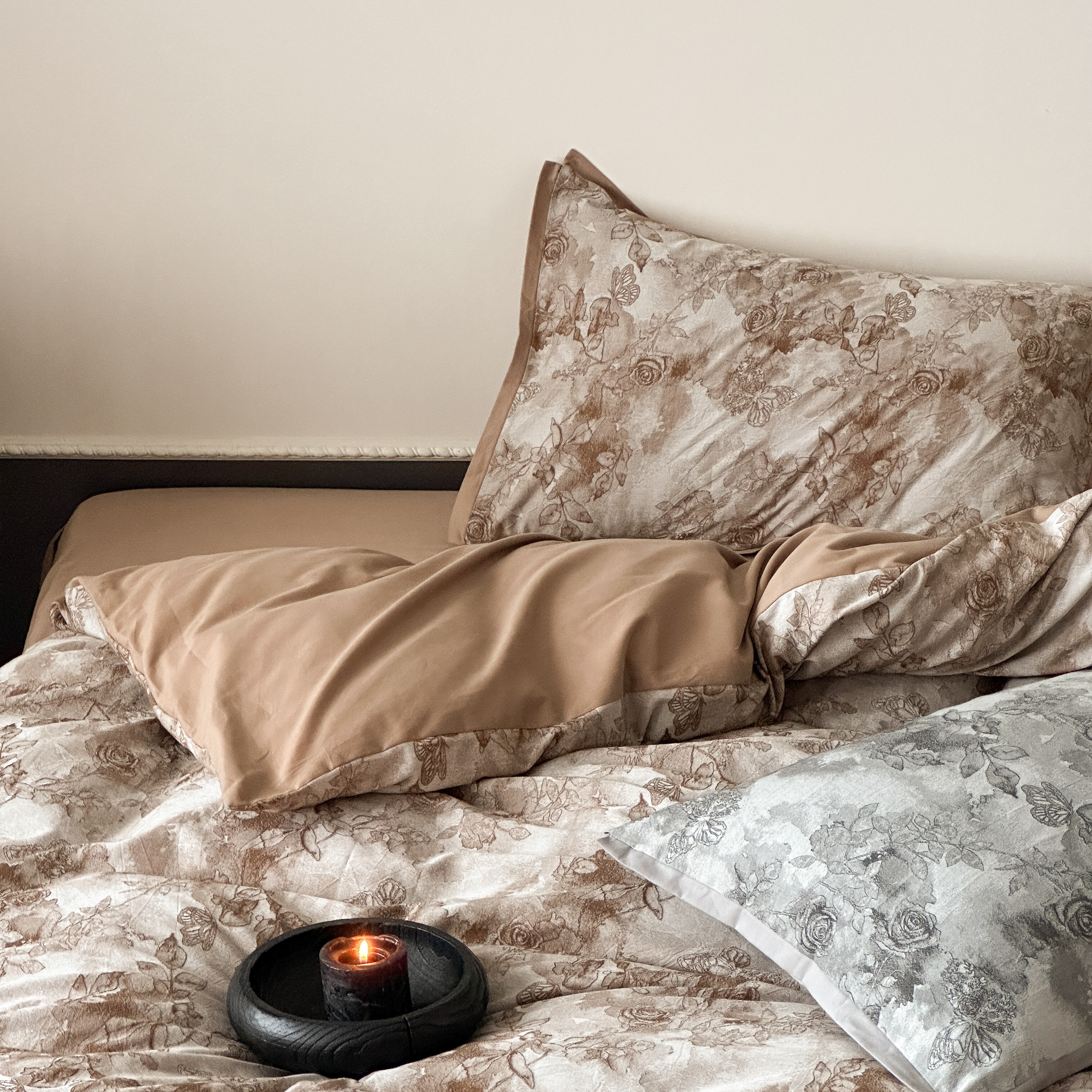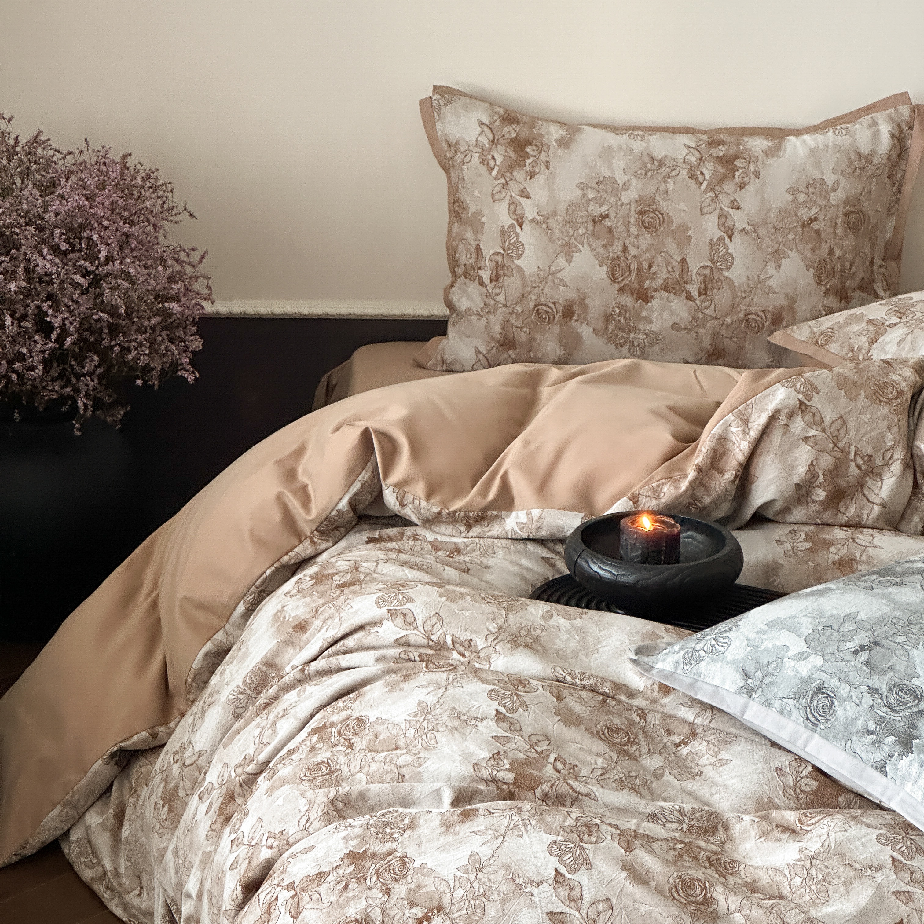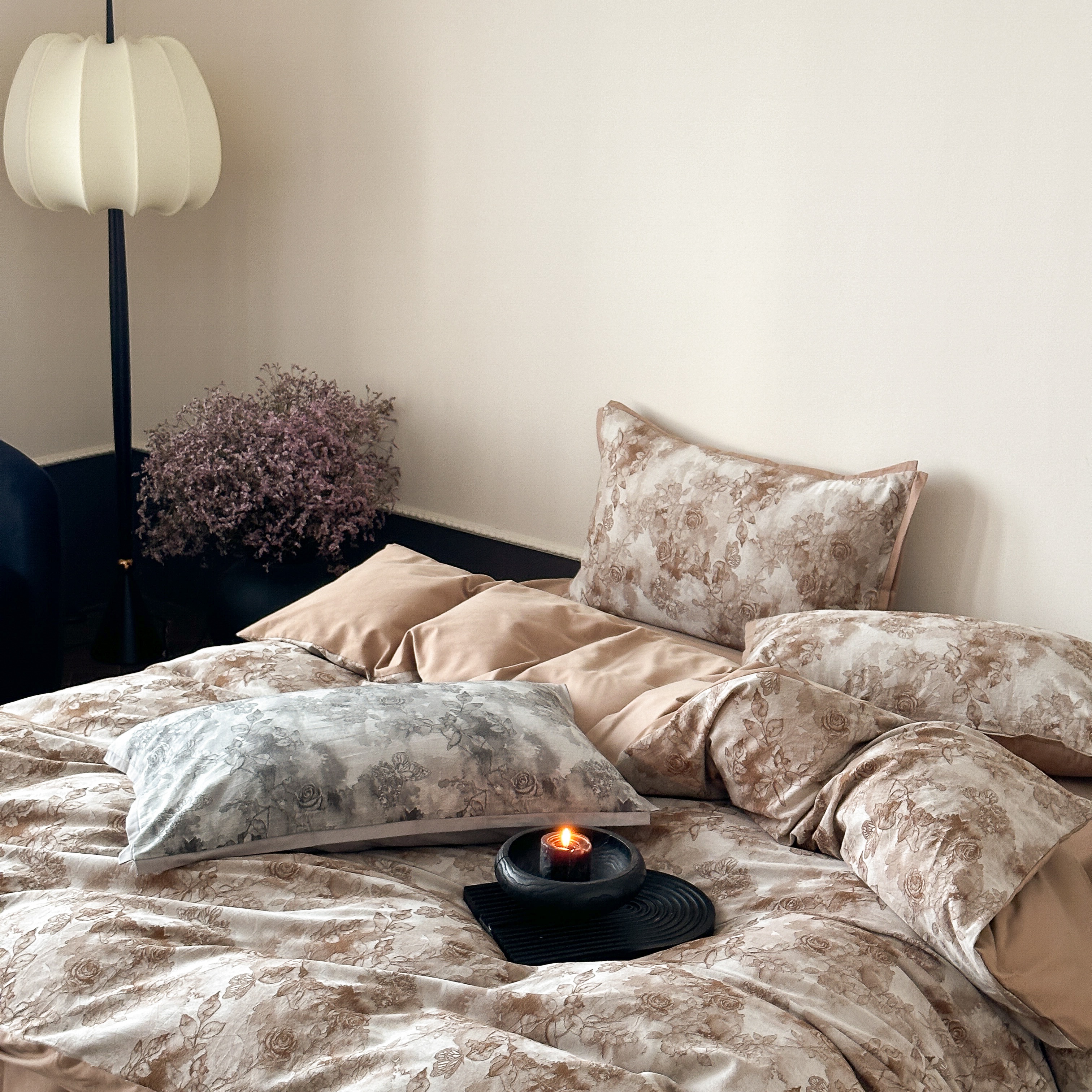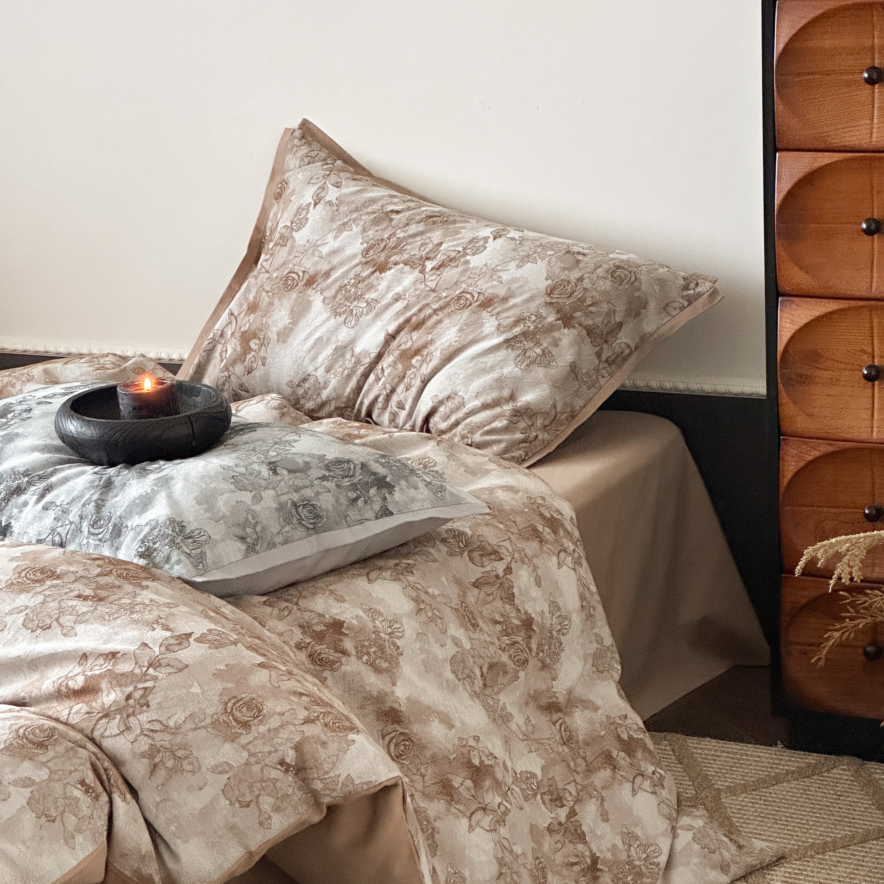 商品名称:旷野 2025新款双色提花100支磨毛四件套-薄雾玫瑰 薄雾玫瑰-可可棕