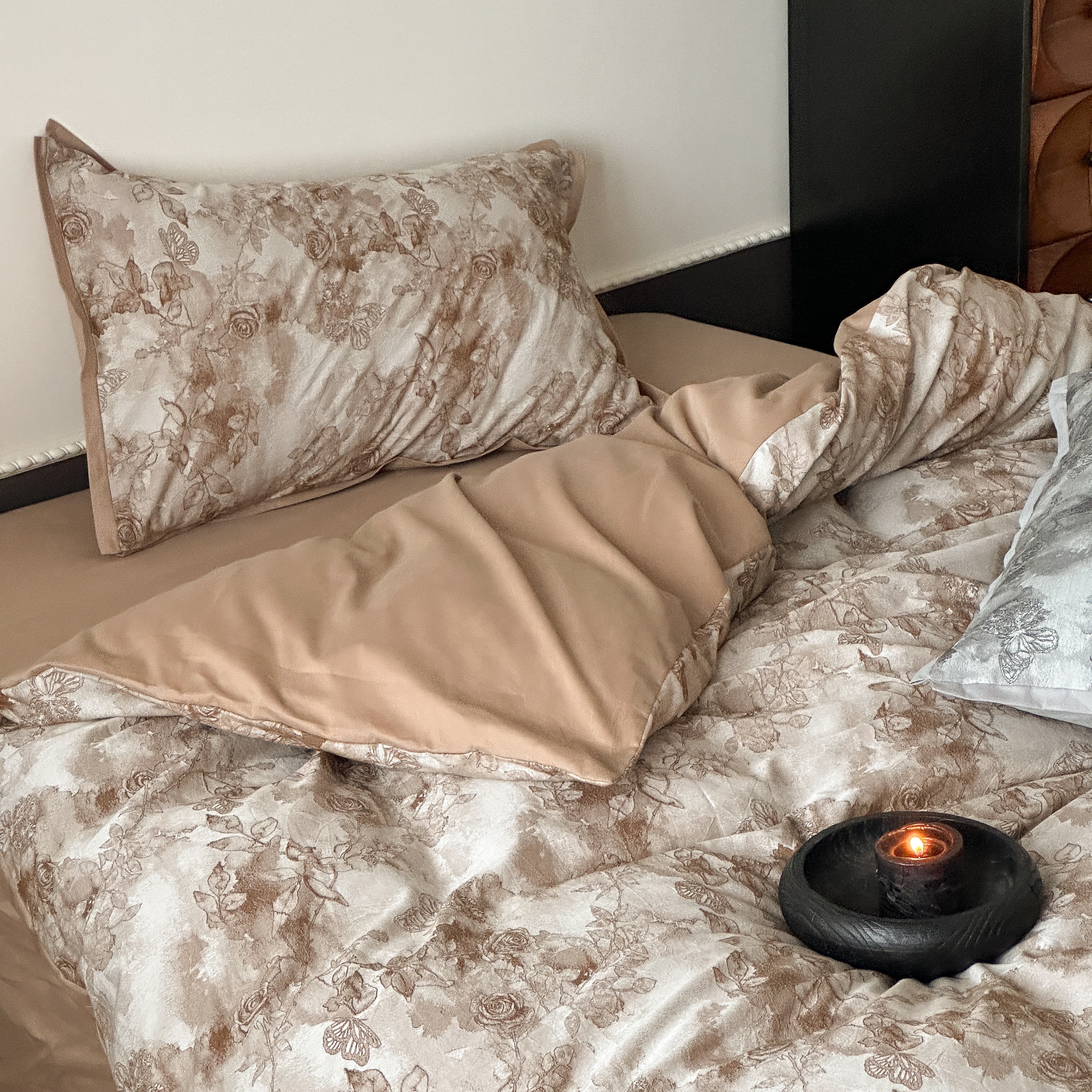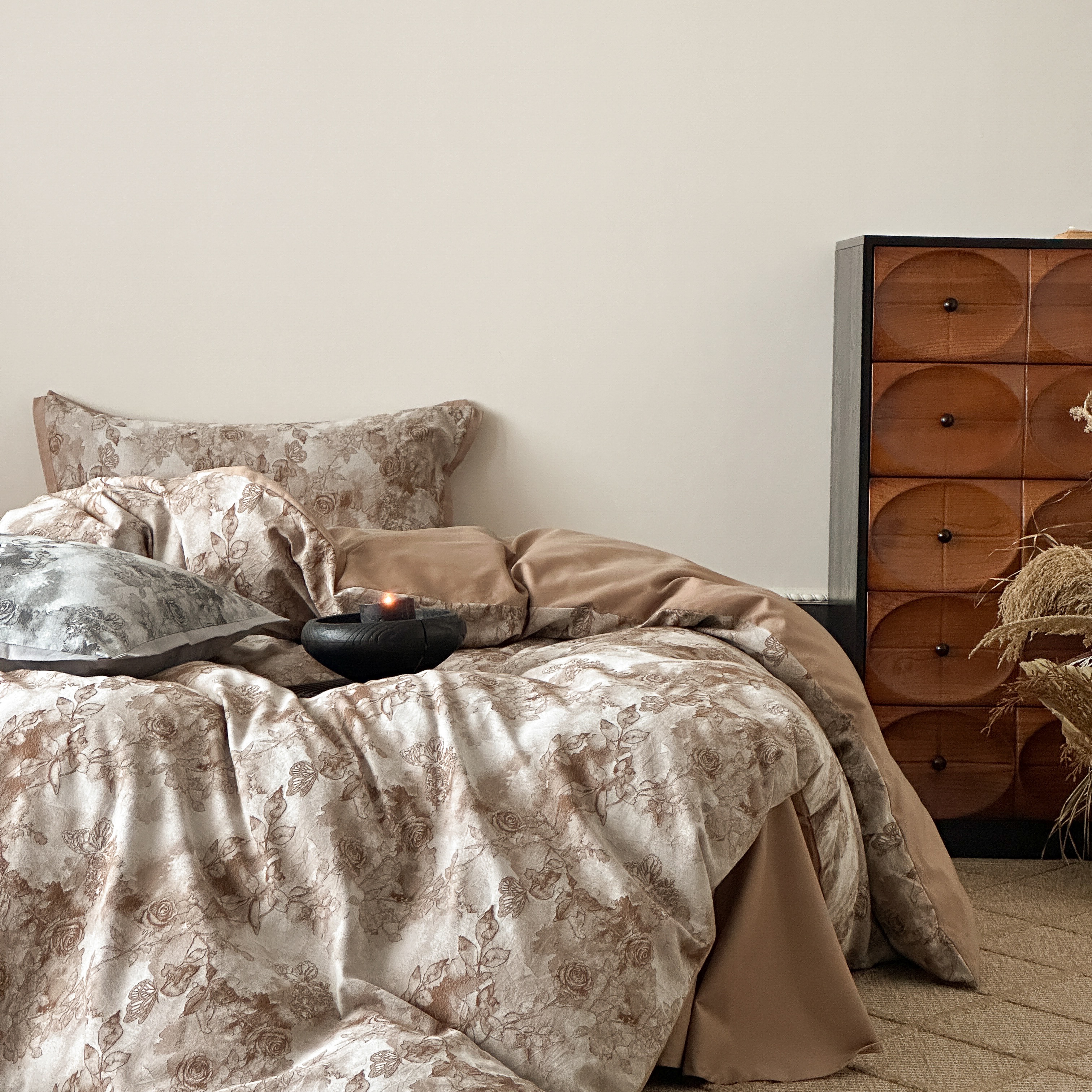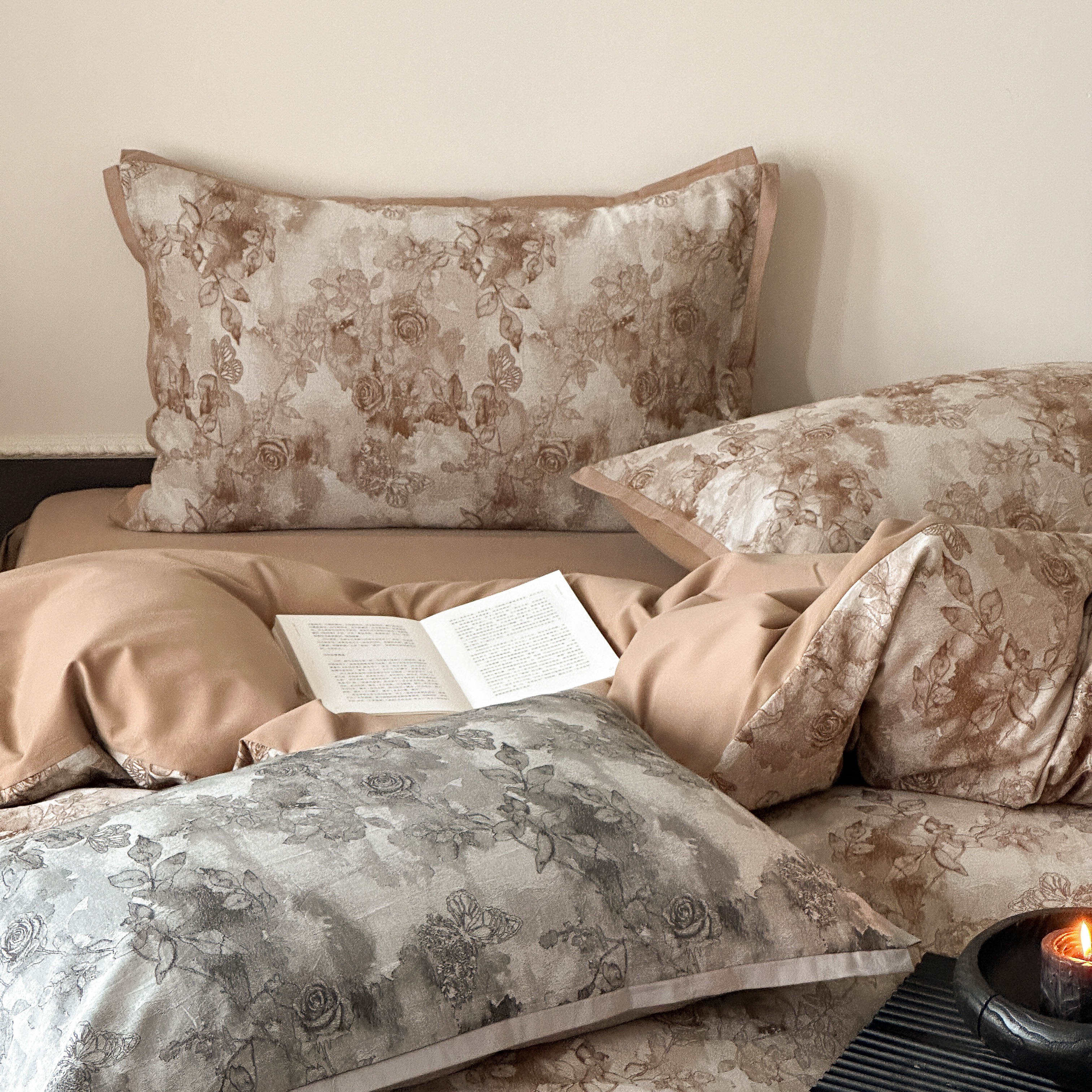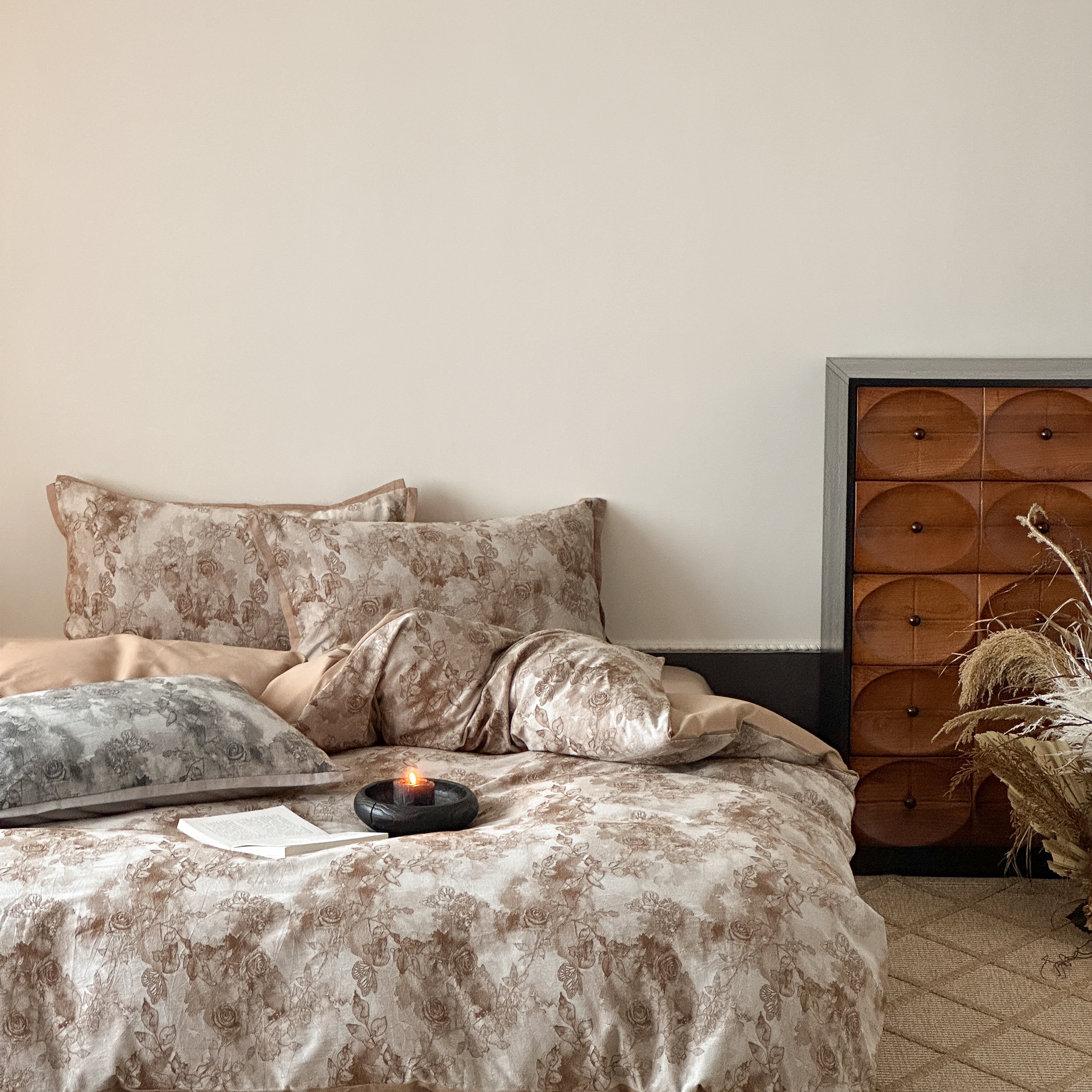 商品名称:旷野 2025新款双色提花100支磨毛四件套-薄雾玫瑰 薄雾玫瑰-可可棕