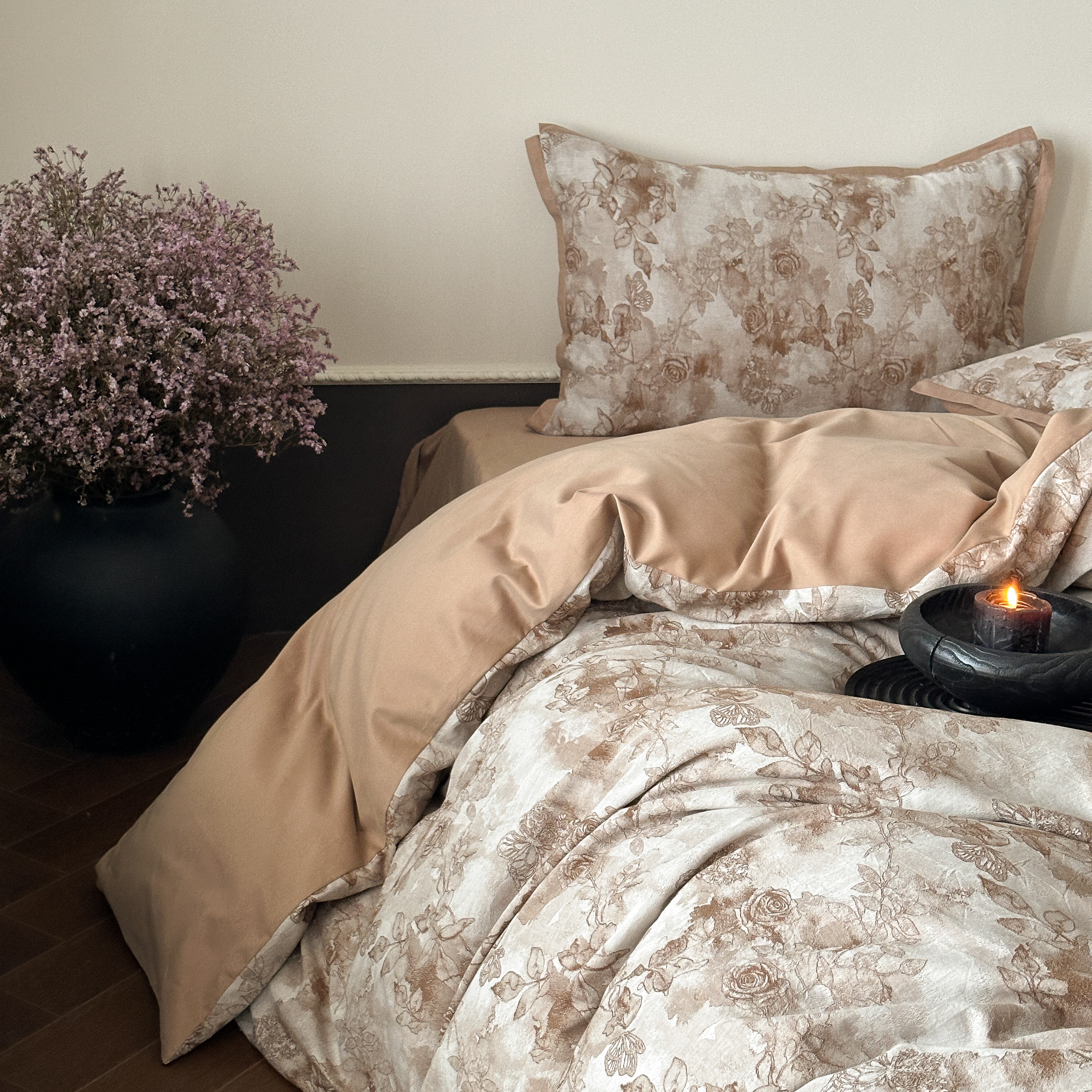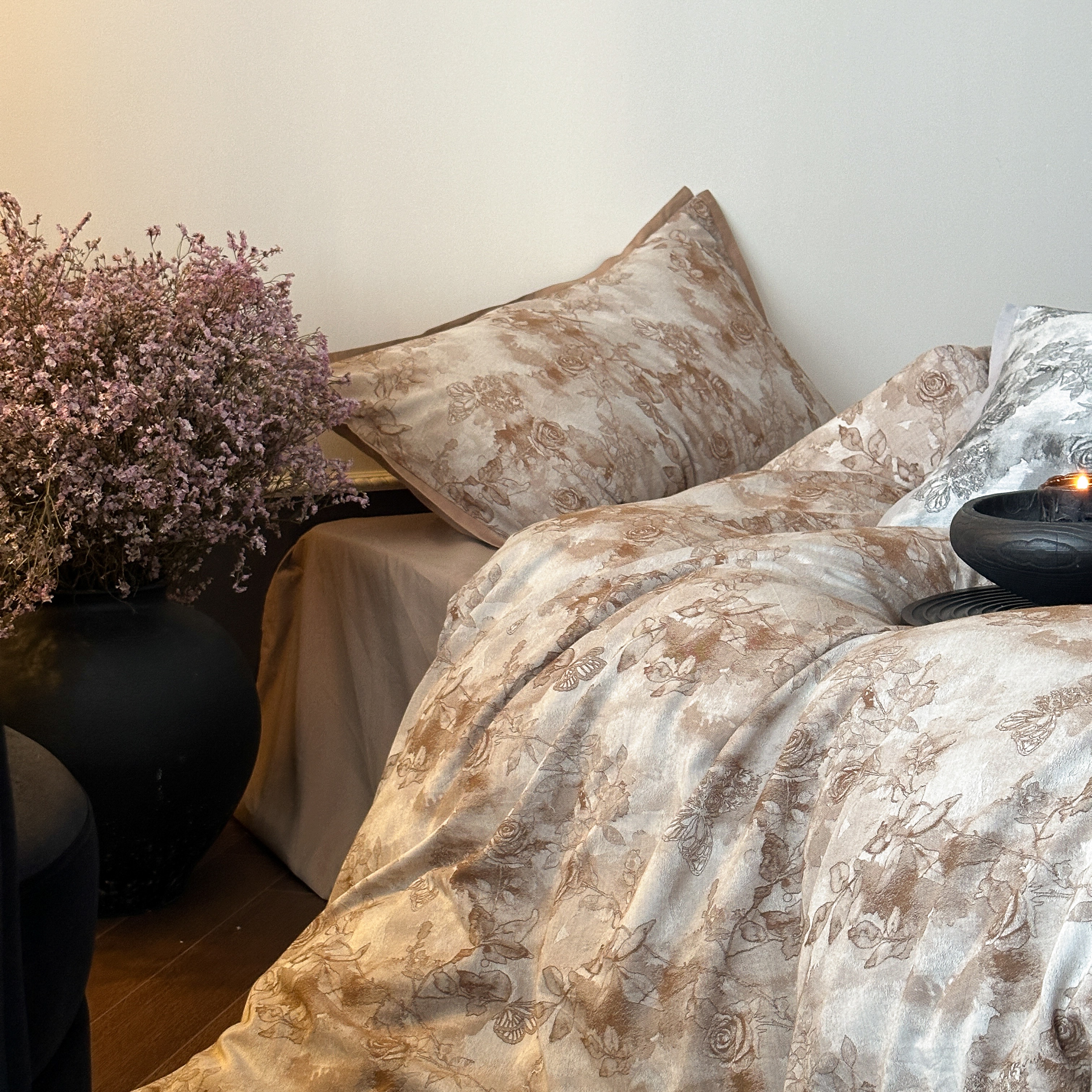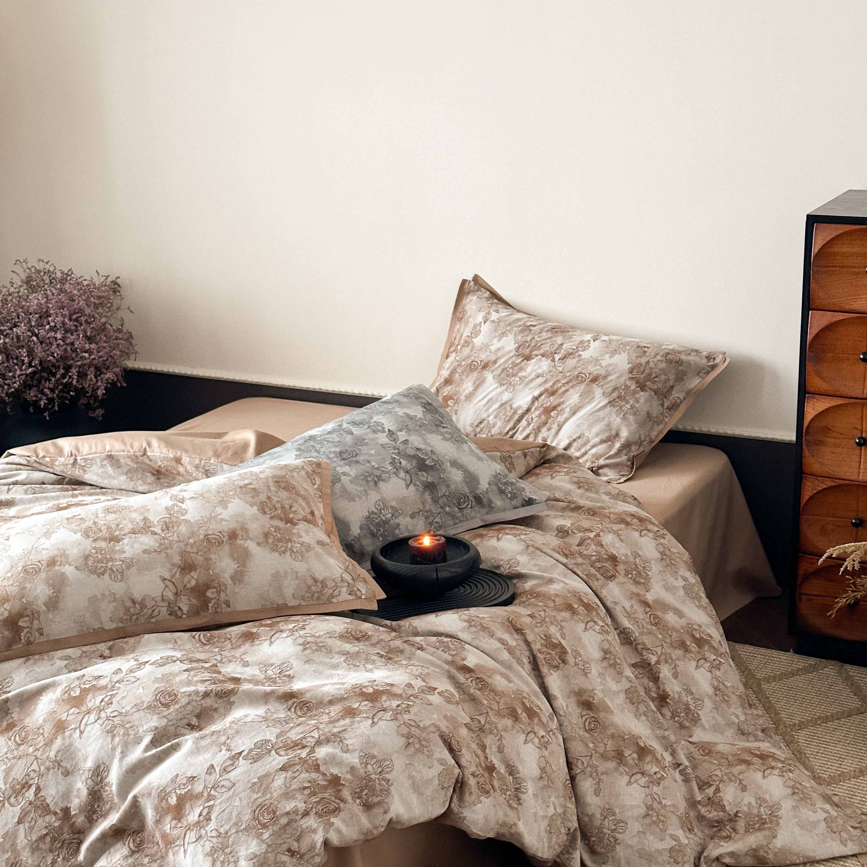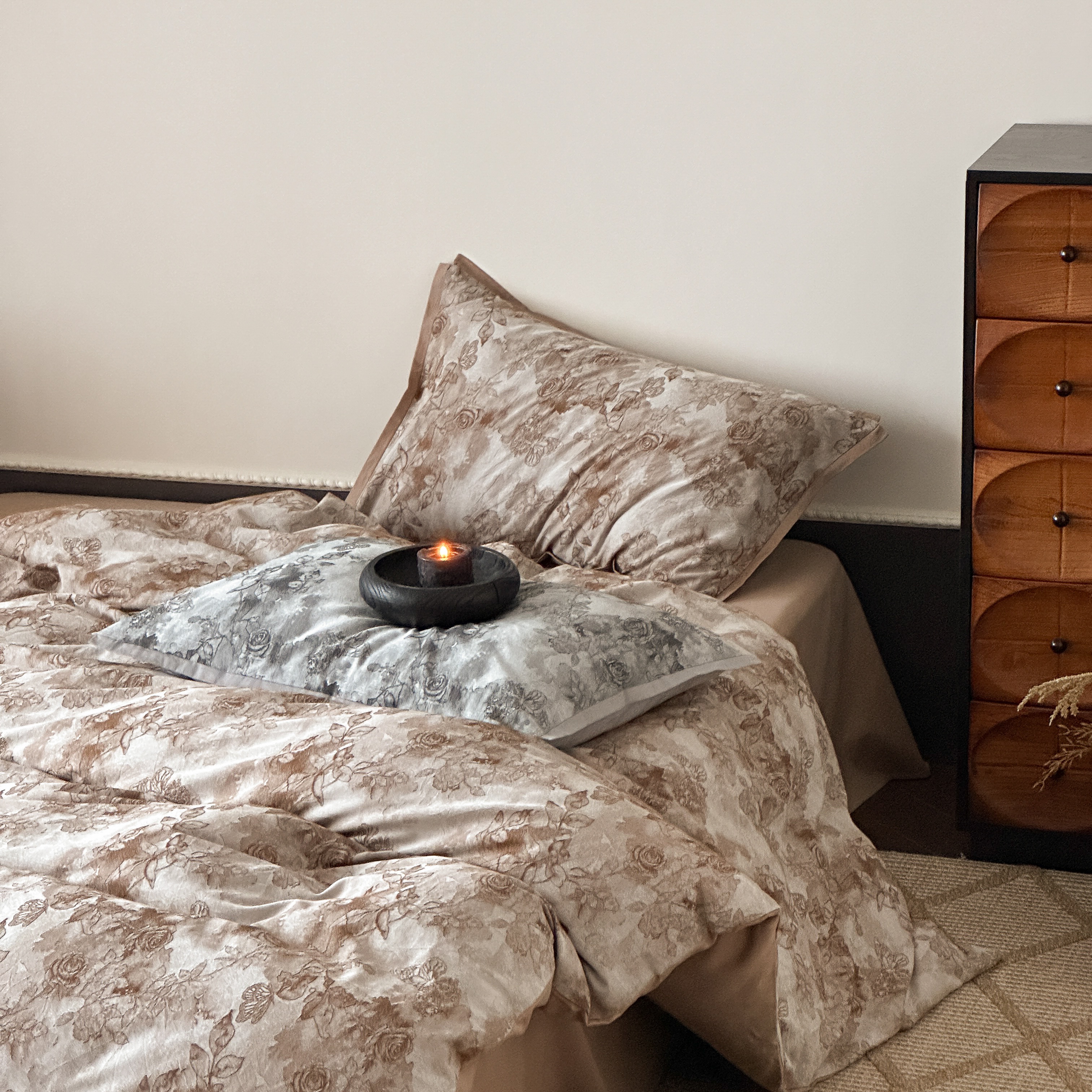 商品名称:旷野 2025新款双色提花100支磨毛四件套-薄雾玫瑰 薄雾玫瑰-可可棕
