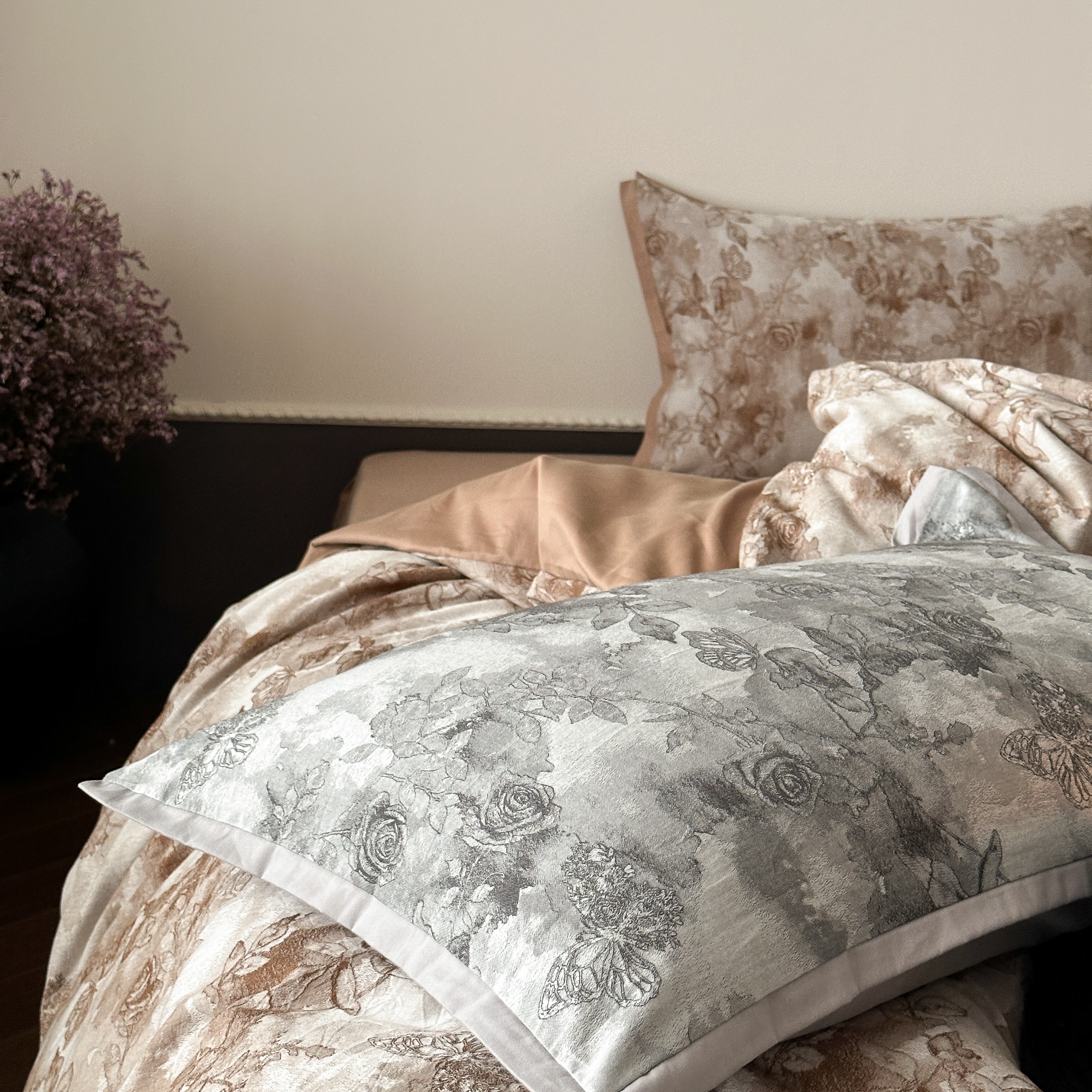 (总)旷野 2025新款空气层提花皱皱纱碎花边工艺款四件套-蝶梦,蝶梦