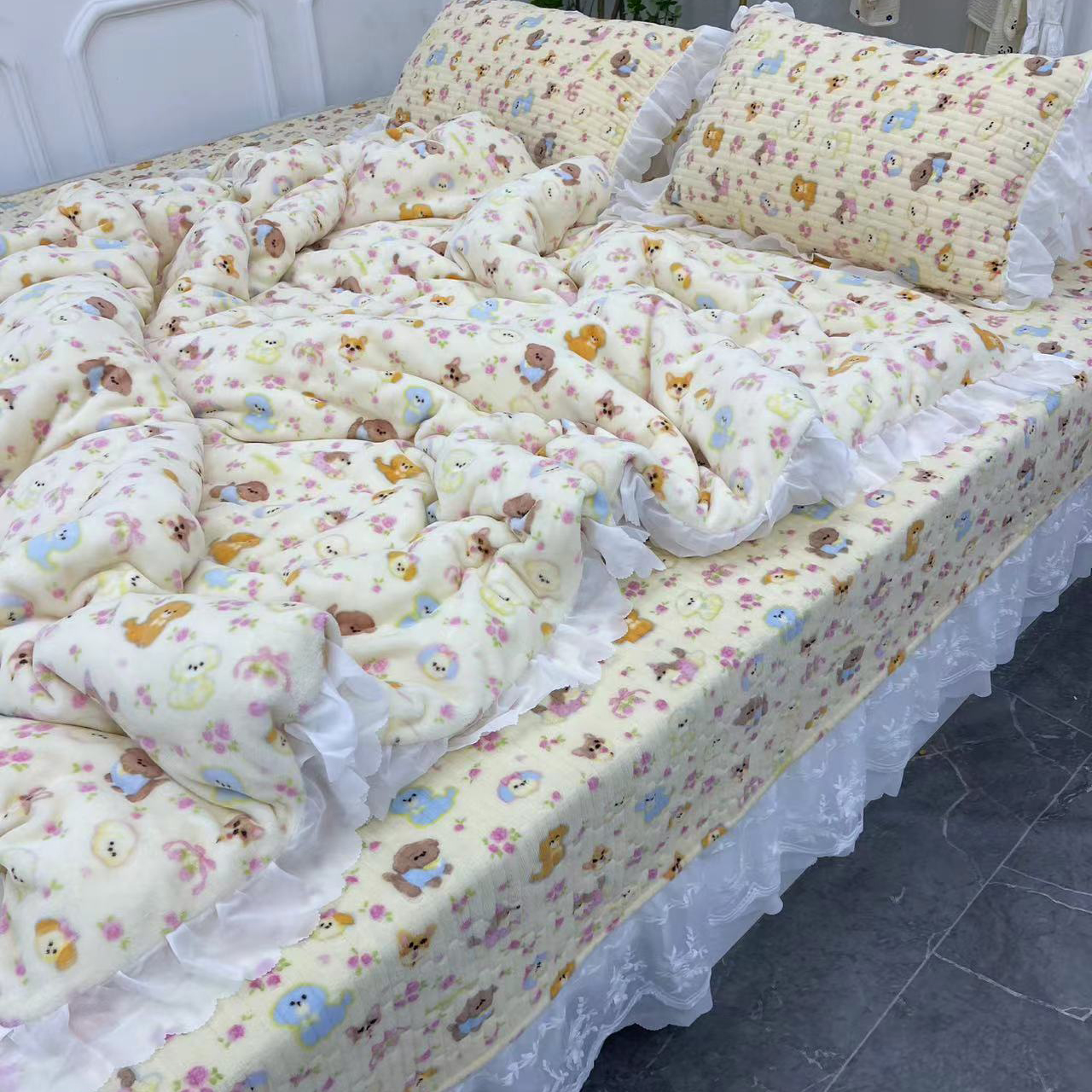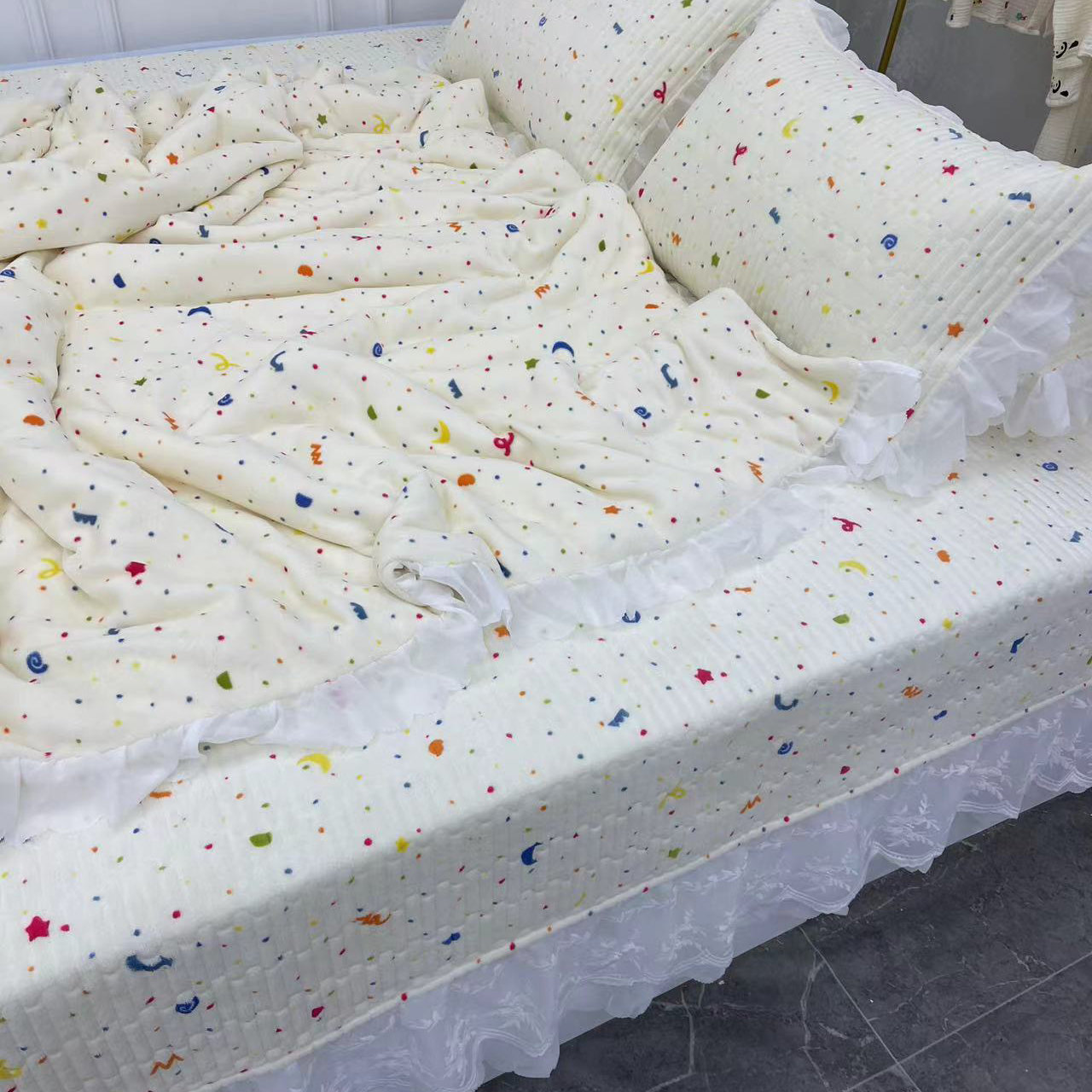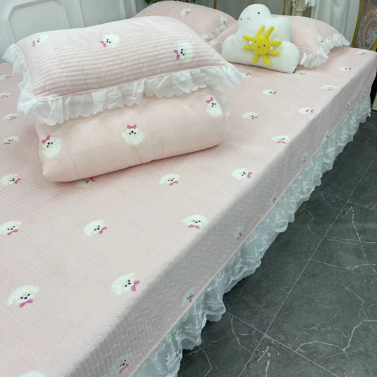 (总)禧瑞谷 2025新款冬季牛奶绒双层蕾丝花边床盖三件套床盖四件套,点点蝴蝶结,粉底小狗,蓝底小狗,奶油小狗,星月小确幸,KT猫,蝶舞白色,蓝底爱心,洛丽塔蓝,碎花小女孩,波点,草莓蝴蝶结,蓝色蝴蝶结,奶糖少女,蛋糕猫