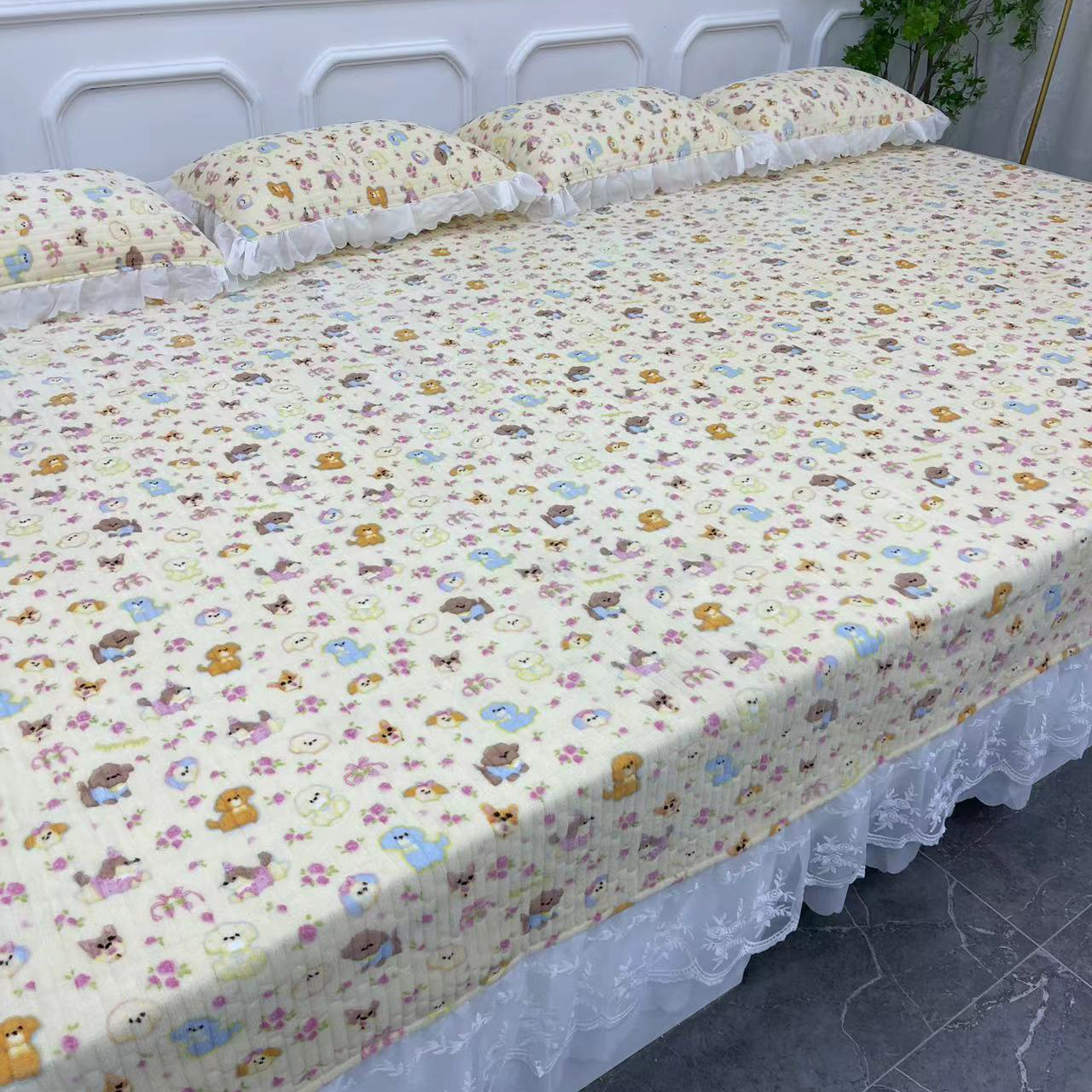 禧瑞谷 2025新款双层花边纯棉床盖雪纺蕾丝款纯棉床盖四件套 奶油小狗,奶油小狗