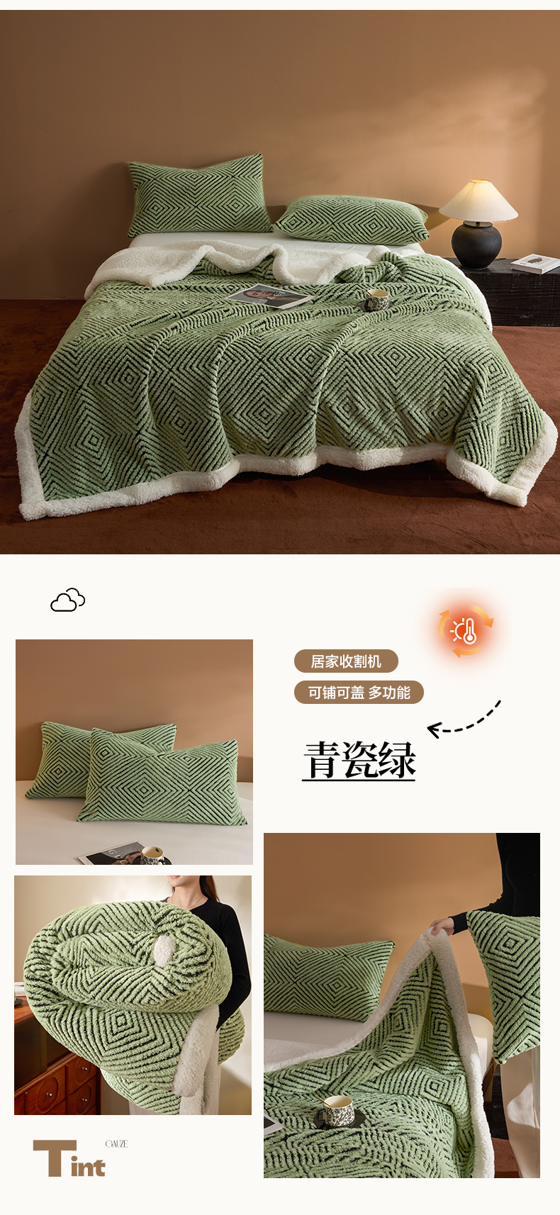 (总)欧邦 2025新款提花暖阳绒羊羔绒毛毯多功能盖毯-梦境系列,梦境-粉玉,梦境-幻白,梦境-米驼,梦境-桑绿,梦境-雾灰