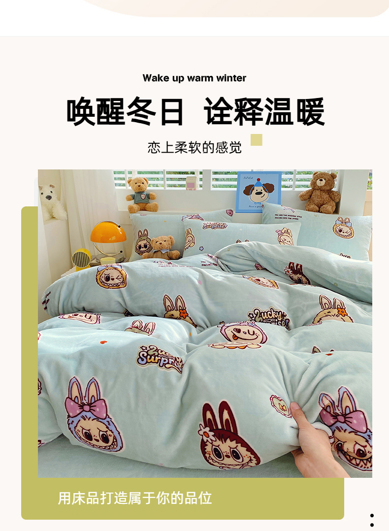 当前位置: 91家纺网 > 商品网购 > 床品套件 > 四件套 > 牛奶绒四件套 > YYDS网供 2025新款ins风牛奶绒四件套萌趣卡通三件套花卉单被套秋冬软fufu防静电 拉布精灵