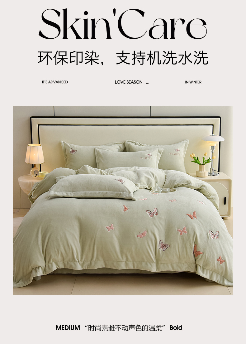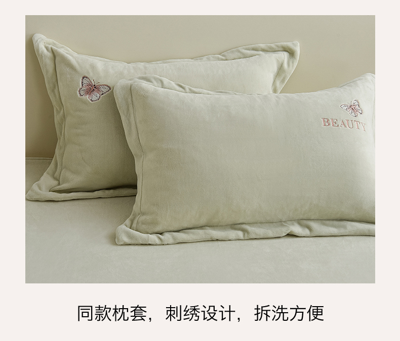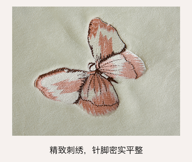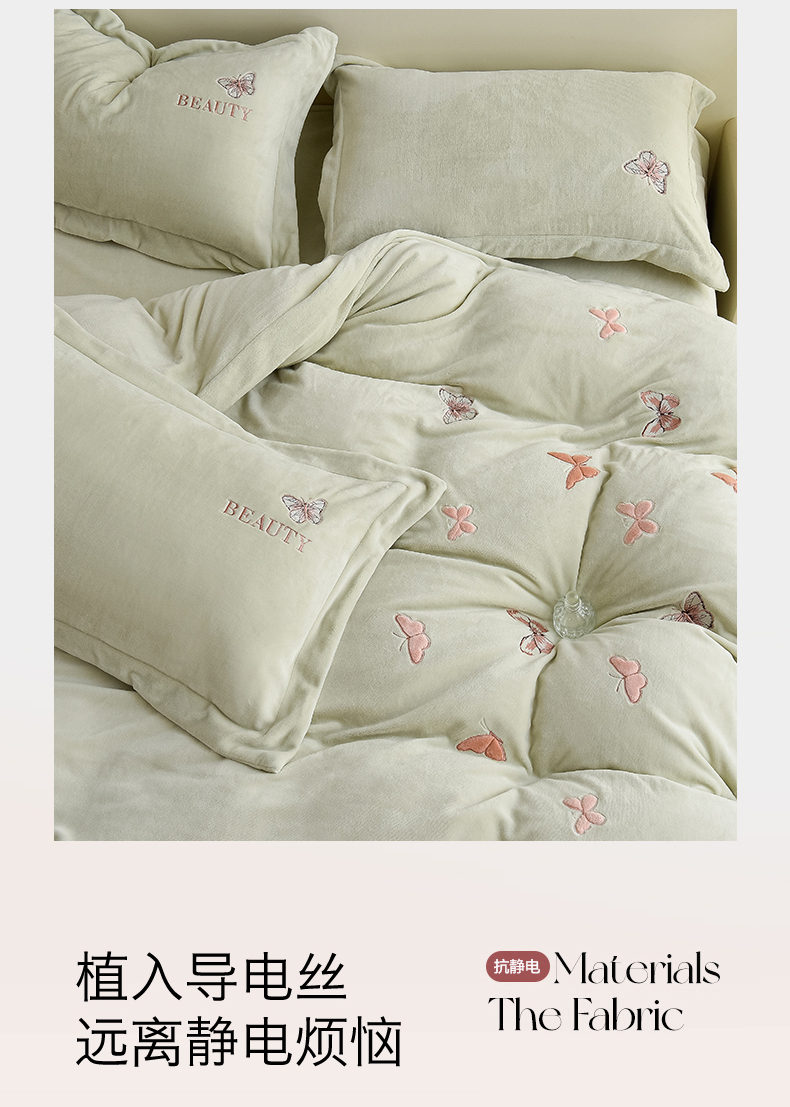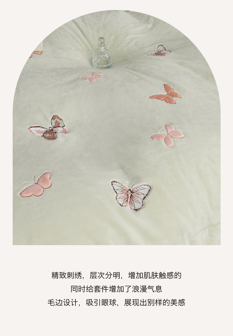商品名称:鼎飞家纺 2025新款加厚牛奶绒蝴蝶绣花四件套-梦蝶 梦蝶-诺绿