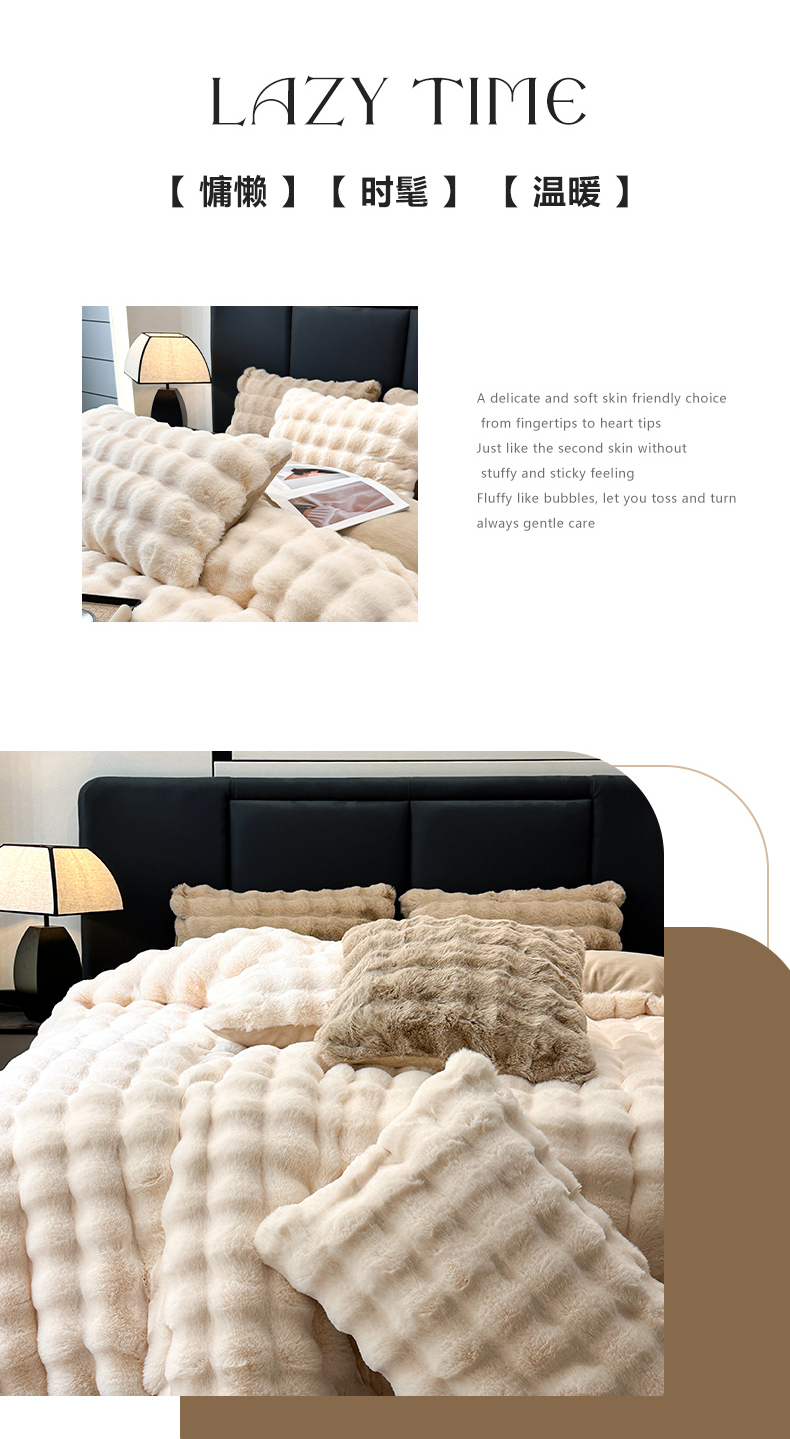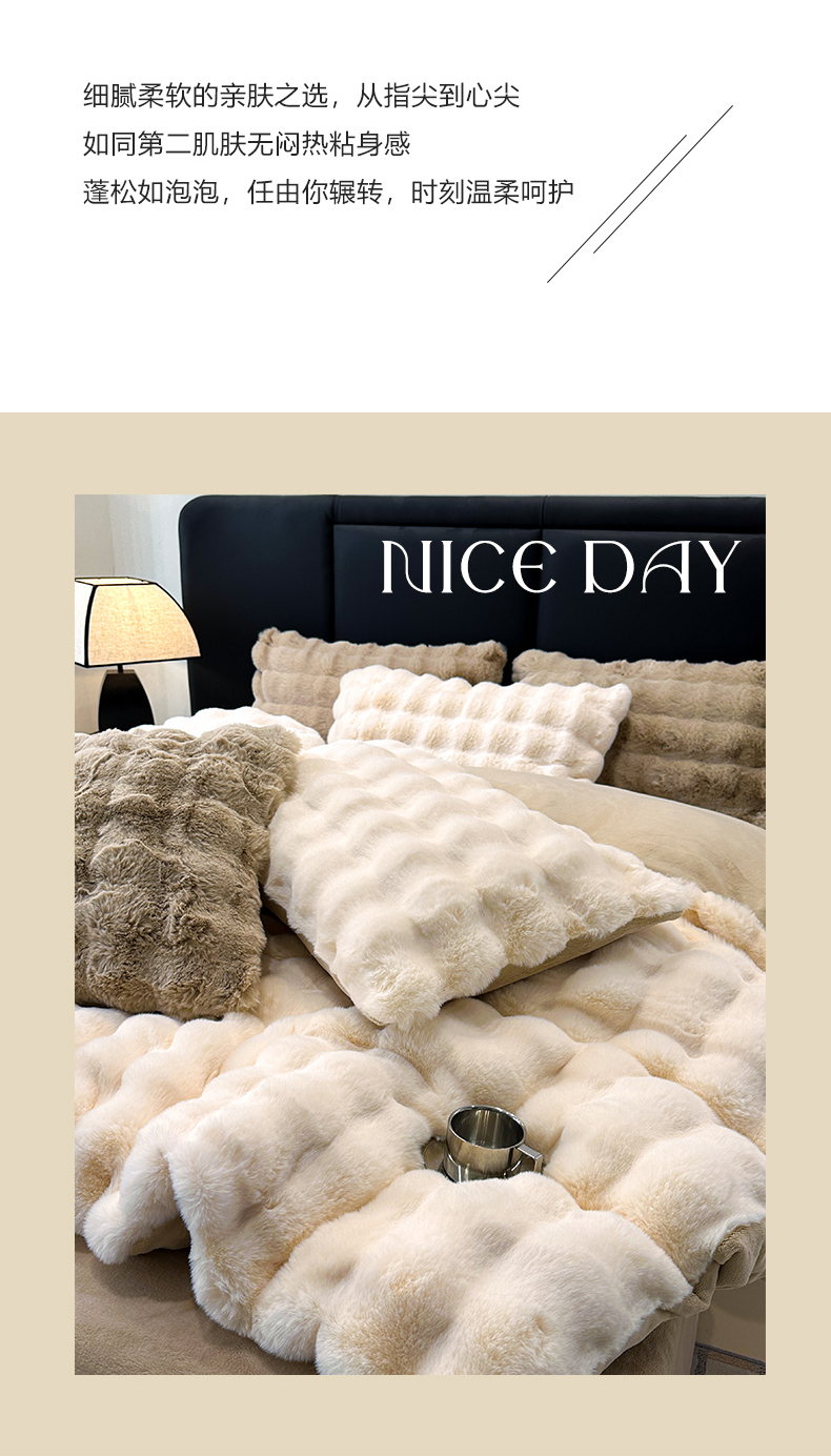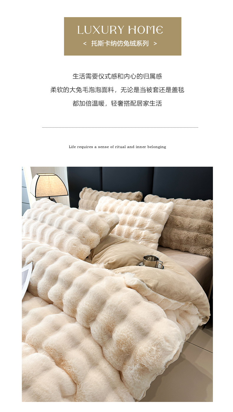 宜代光年 2025新款托斯卡纳仿兔绒四件套-炫彩兔毛套件 托卡兔绒-白咖色