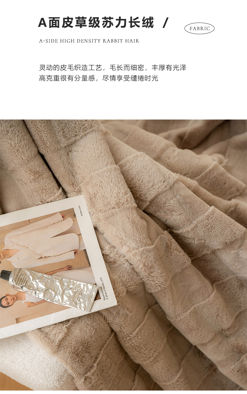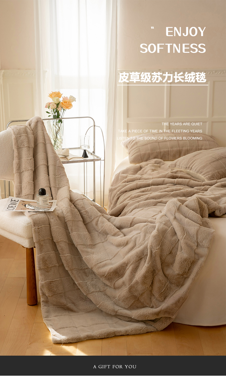 (总)宜代光年 2024新款520g全消光牛奶绒迪奥格盖毯,卡其,米白,柔粉,雾灰