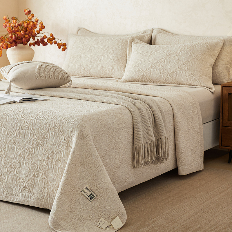 • 91家纺网 家纺一手货源 找家纺 桂雅居 2025新款棉麻三层纱加厚床盖三件套 (会员减10,最低控价券后298) 米字格