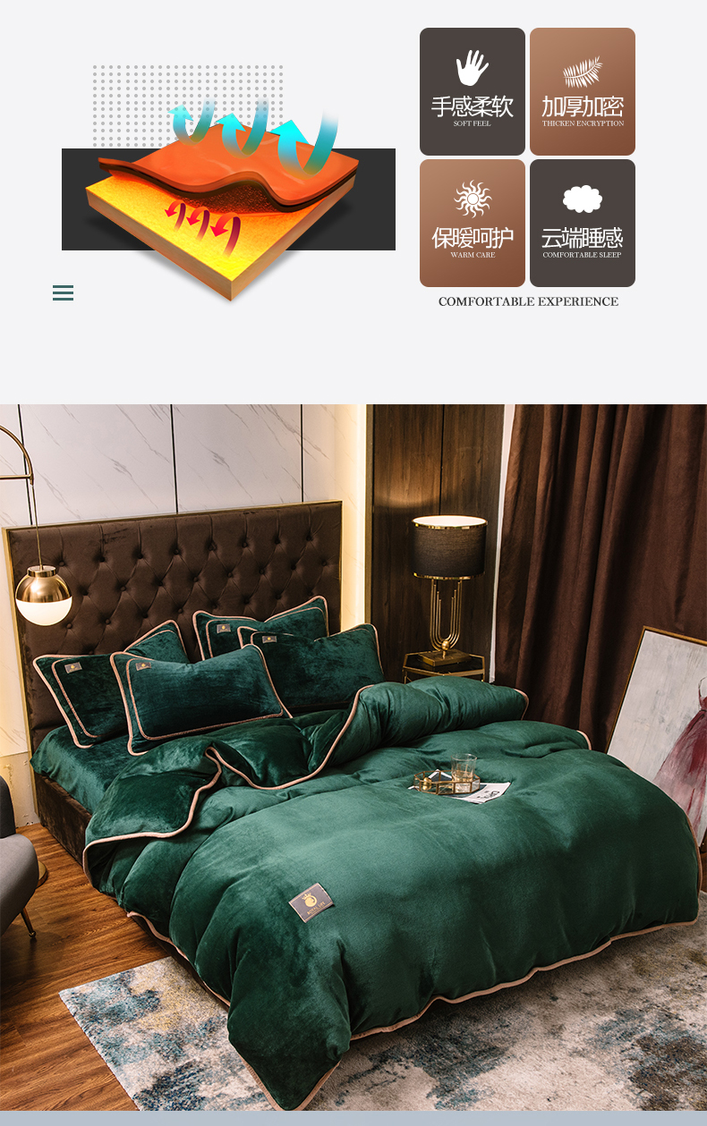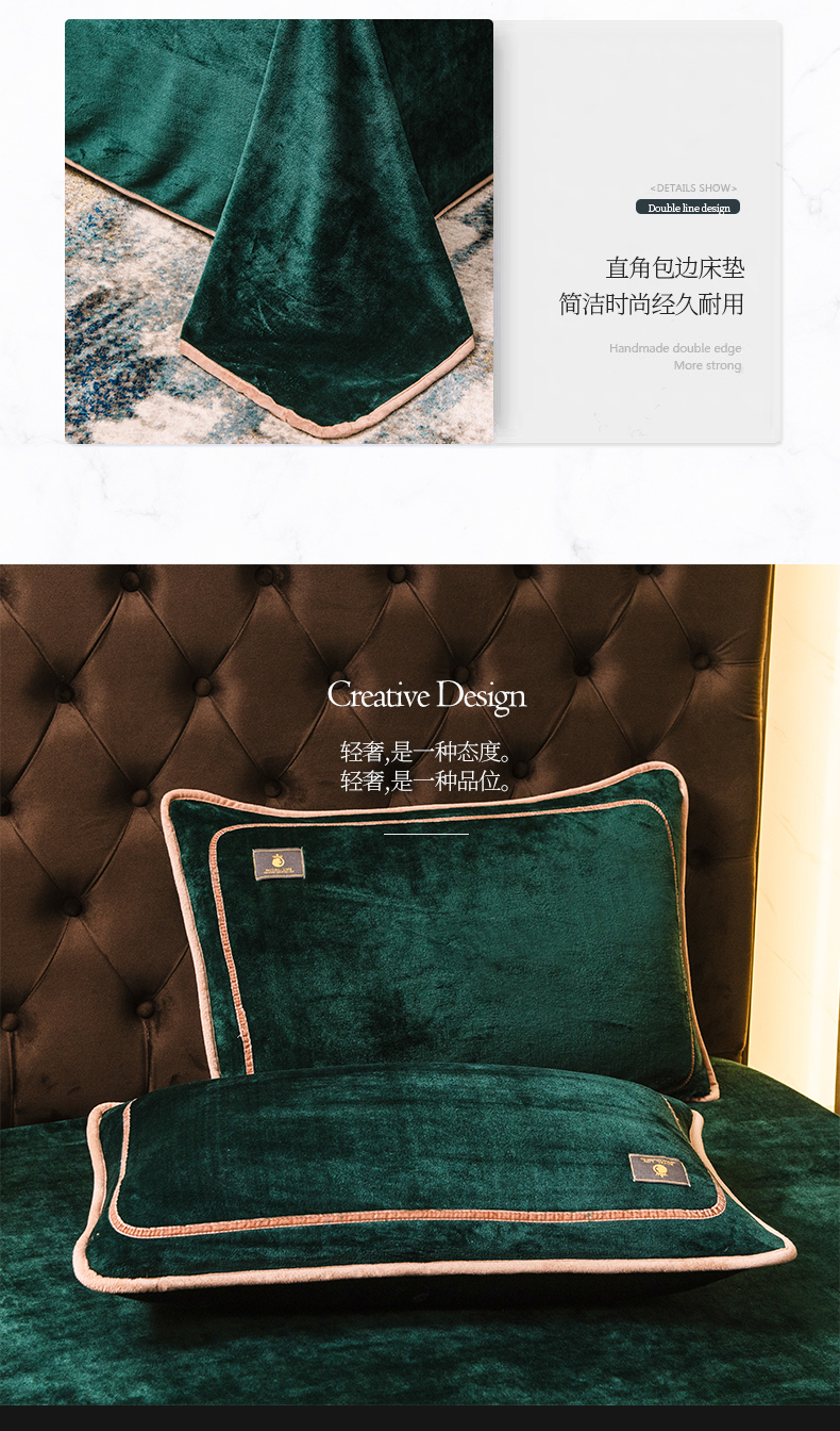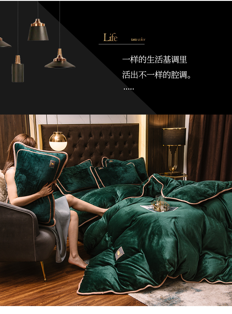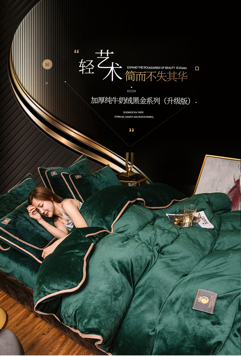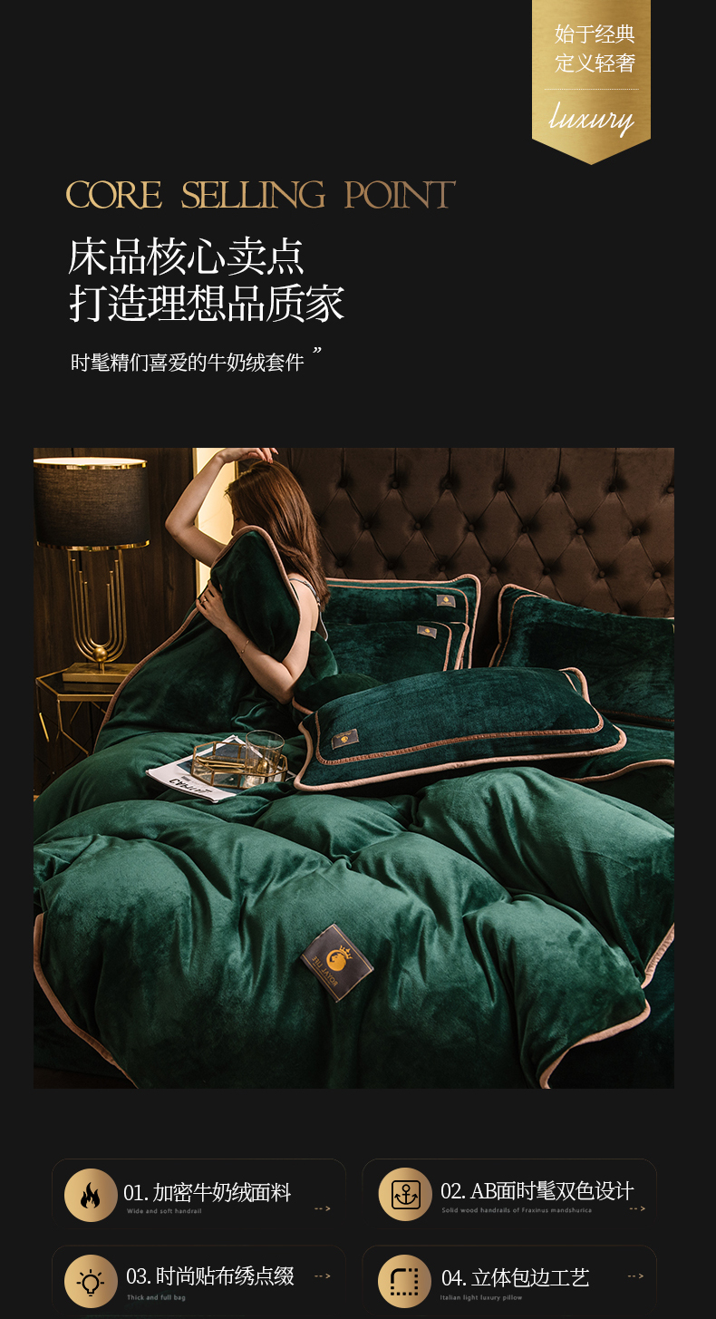 商品名称:宜代光年 2025新款加厚保暖纯色牛奶绒黑金四件套系列 玛瑙绿