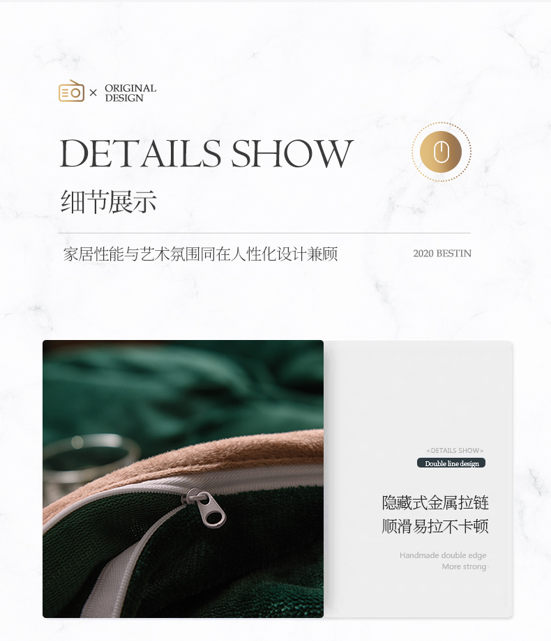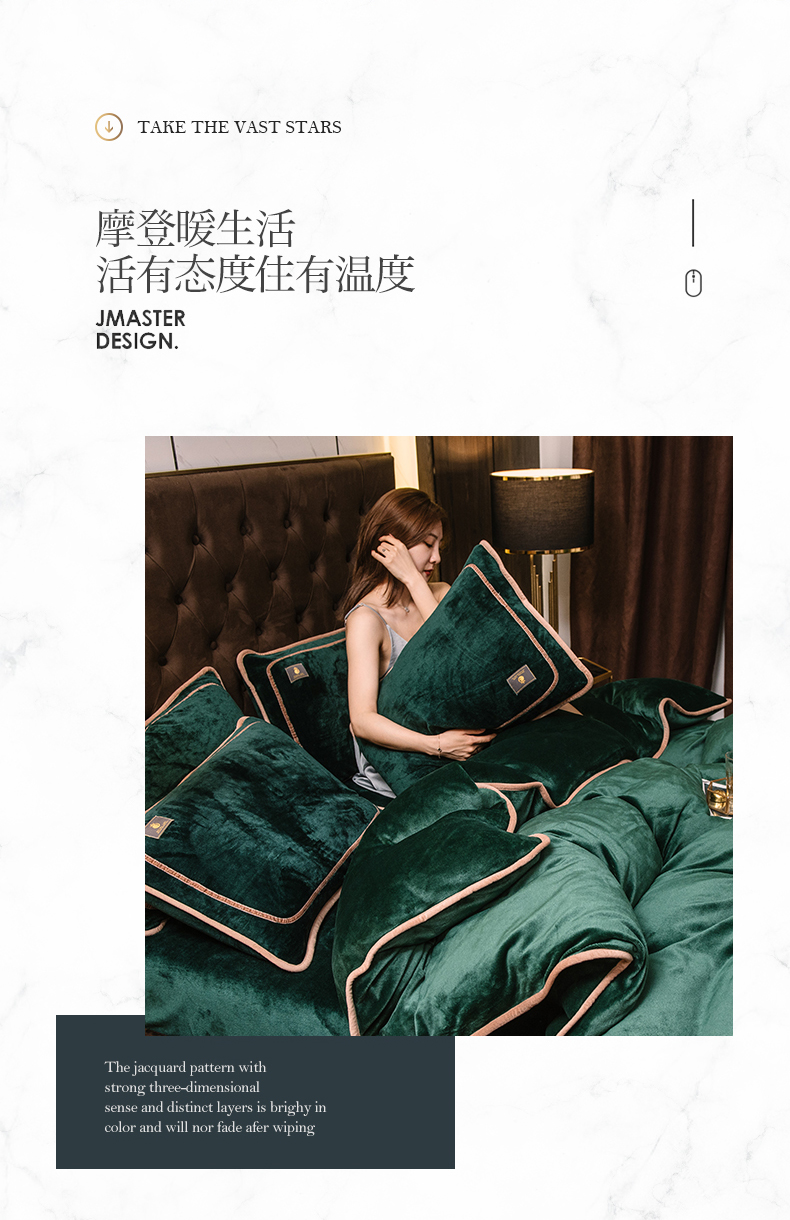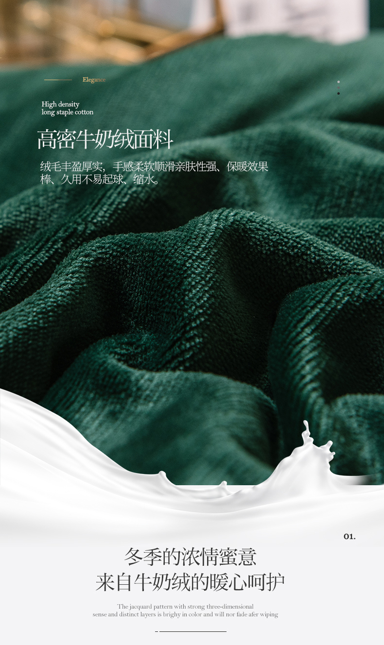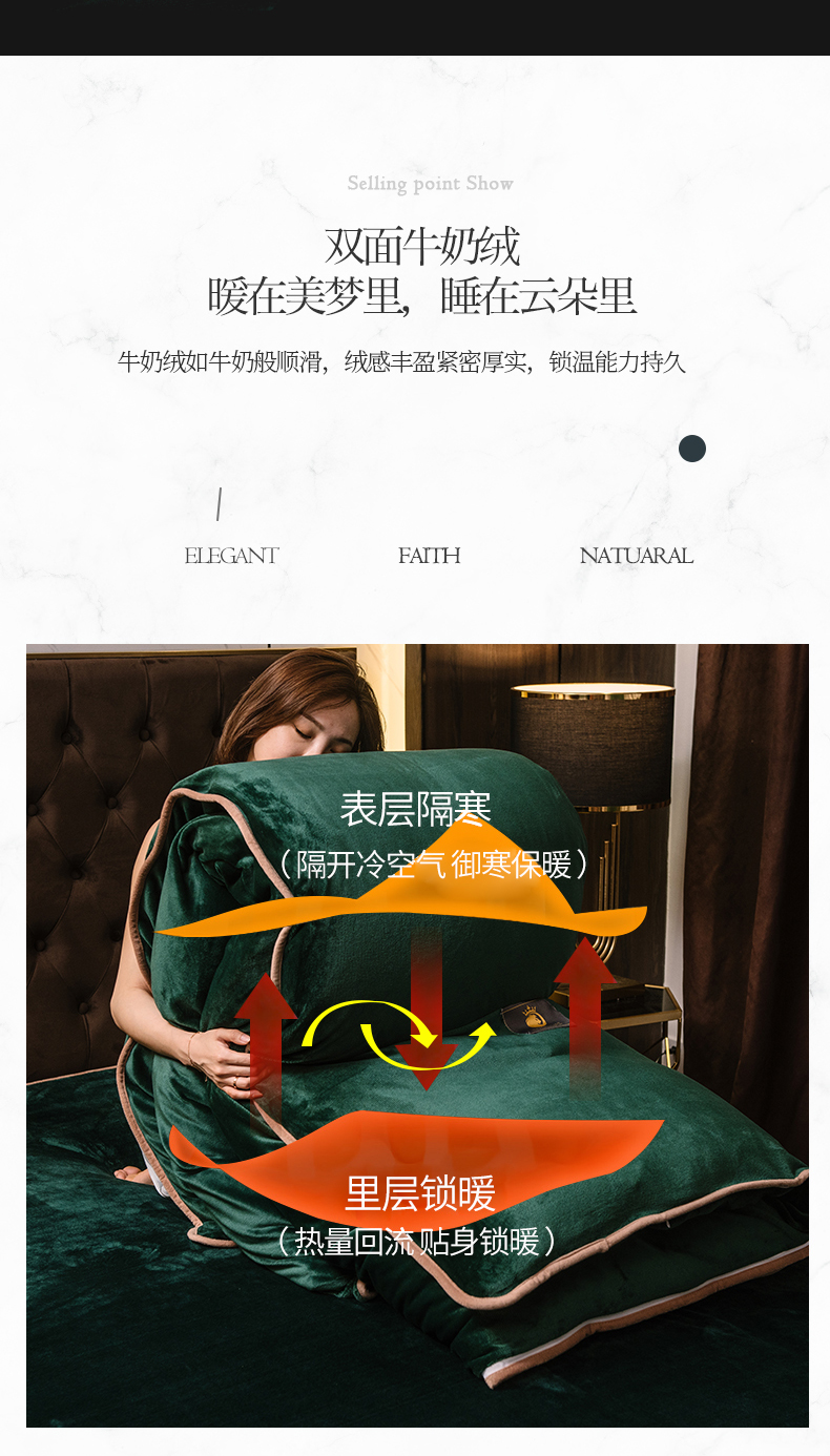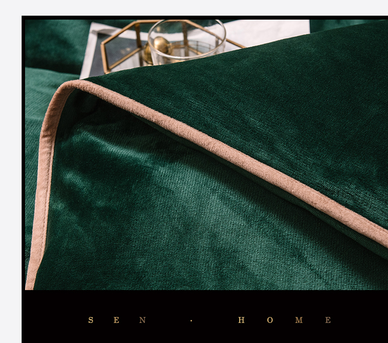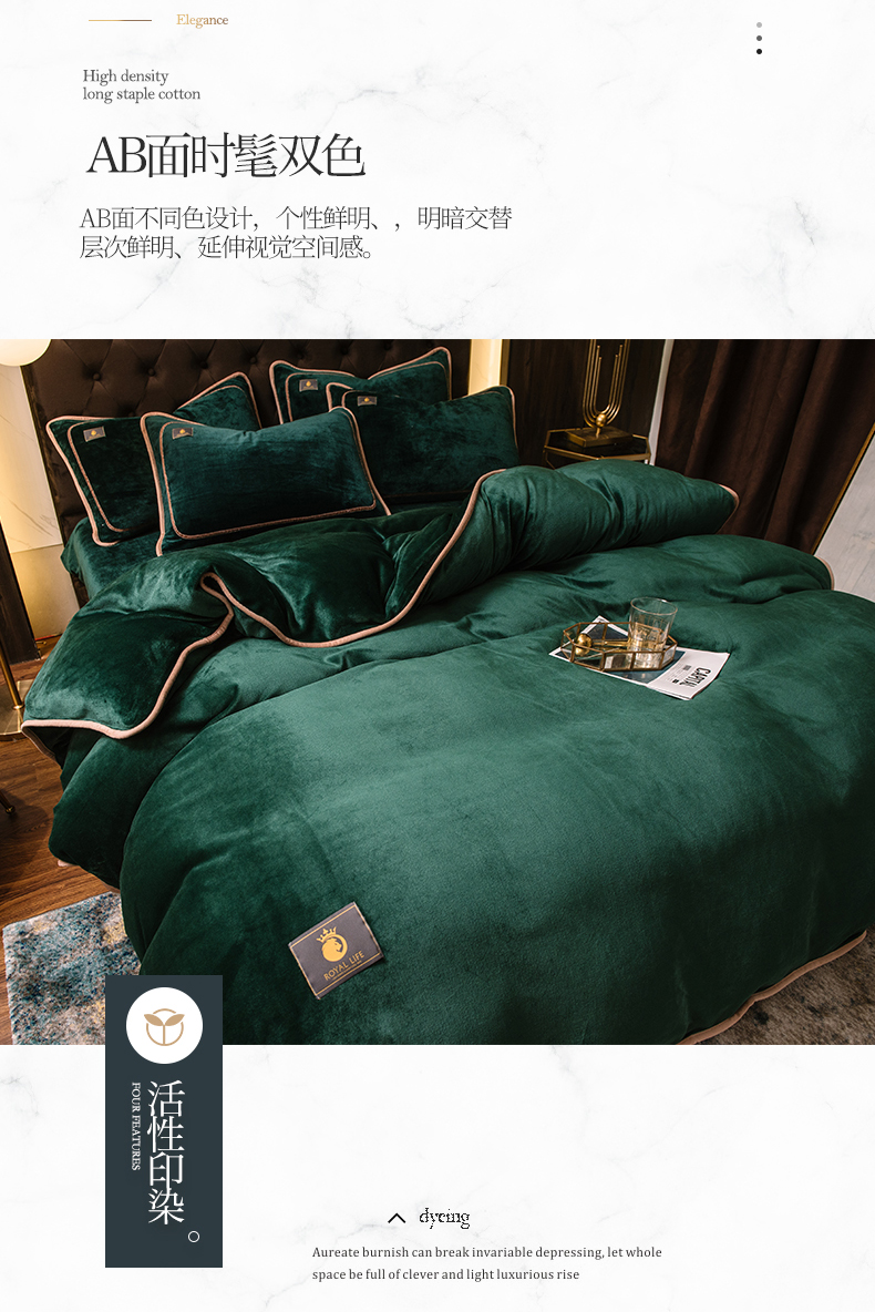 商品名称:宜代光年 2025新款加厚保暖纯色牛奶绒黑金四件套系列 玛瑙绿