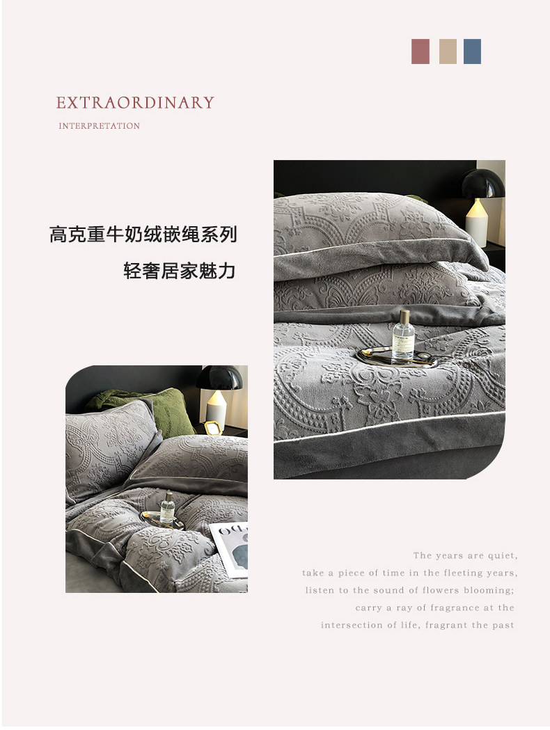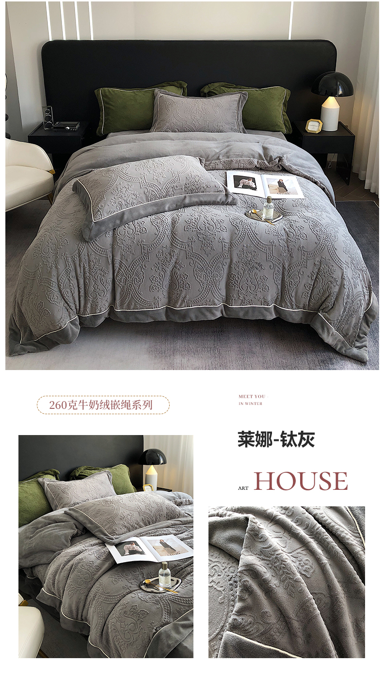 商品名称:宜代光年 2025新款德绒260克牛奶绒织带系列四件套 莱娜-钛灰