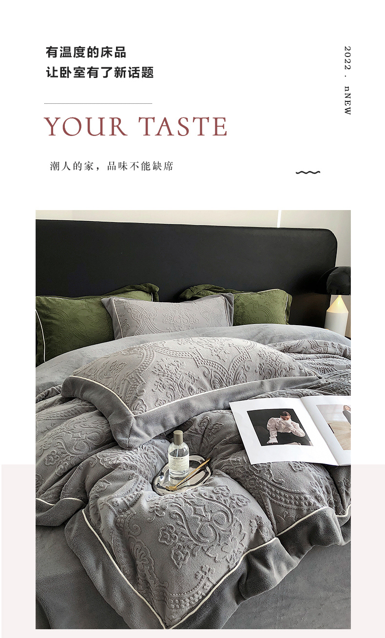 宜代光年 2025新款德绒260克牛奶绒织带系列四件套 莱娜-钛灰