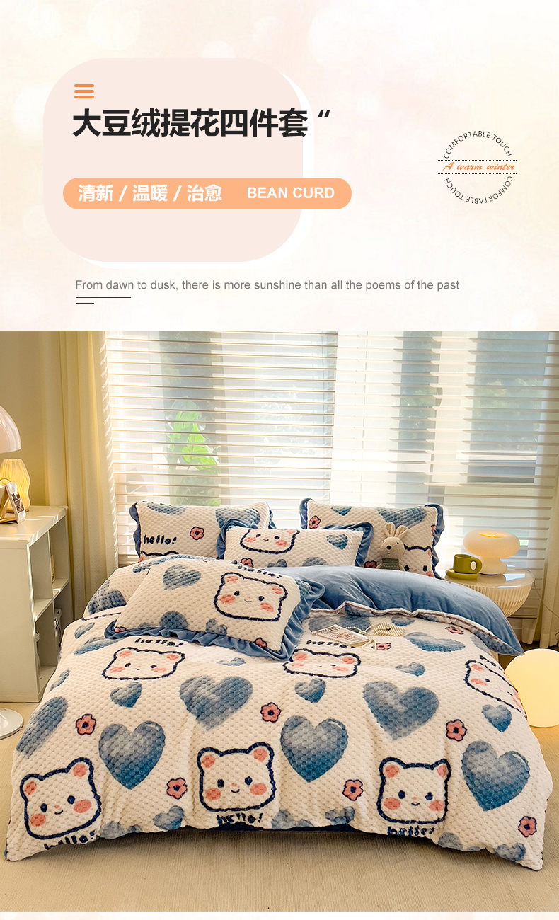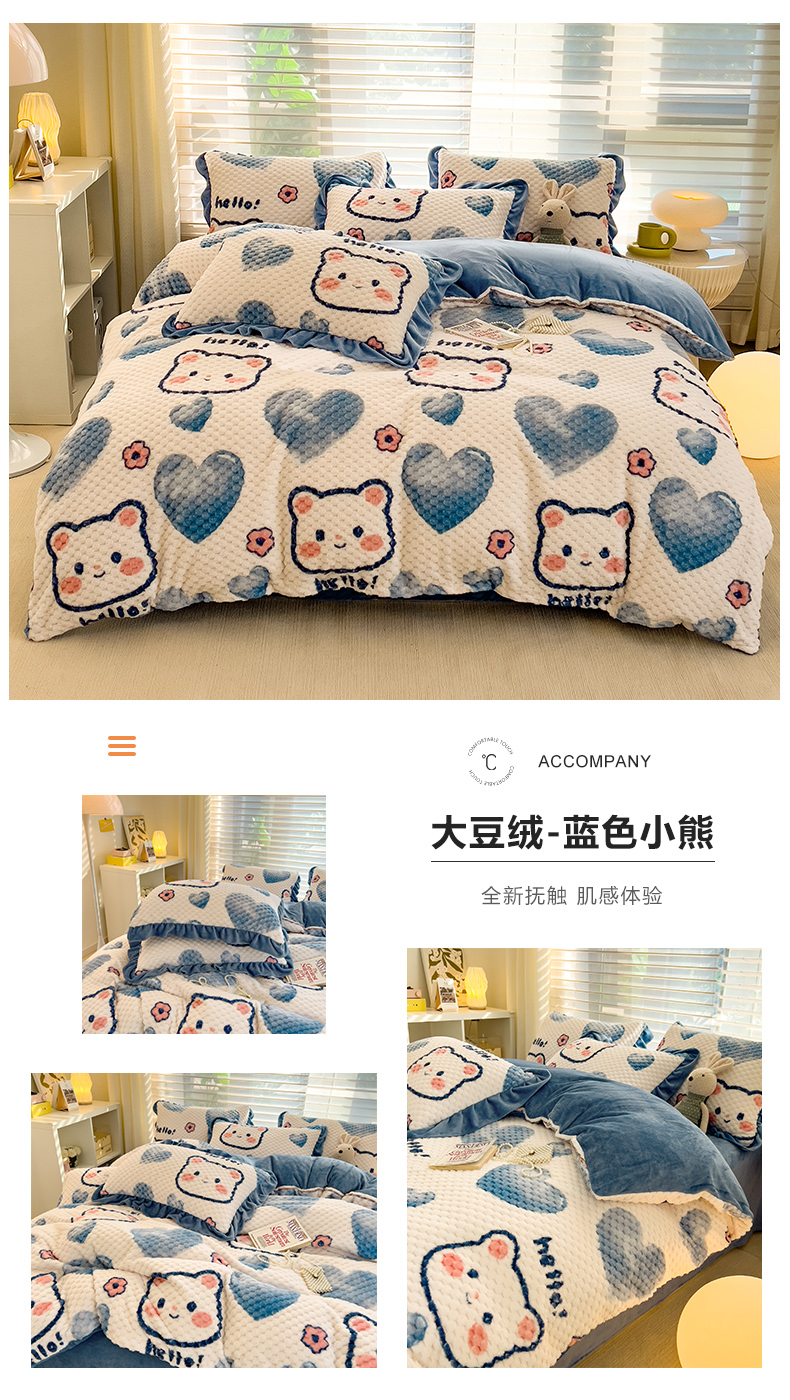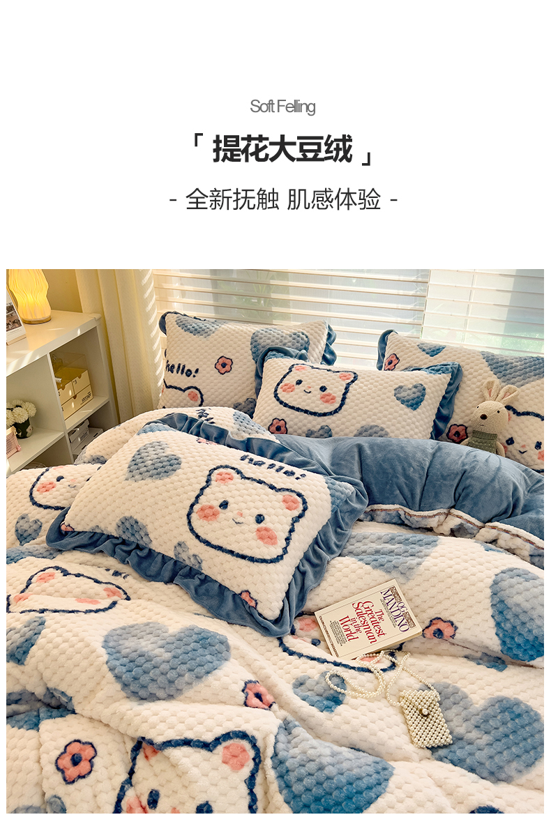 宜代光年 2025新款大豆绒提花系列四件套(提供买家秀)-印花款 大豆绒-蓝色小熊