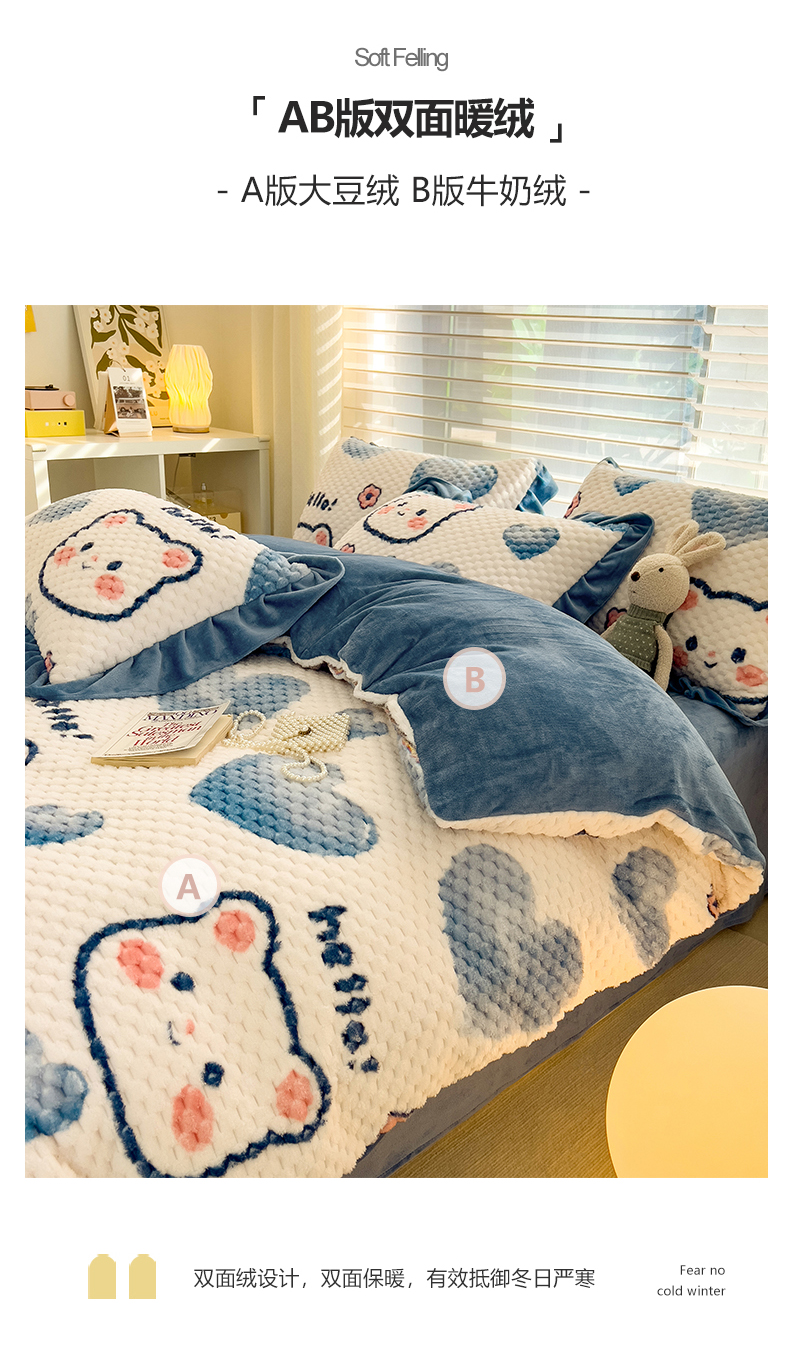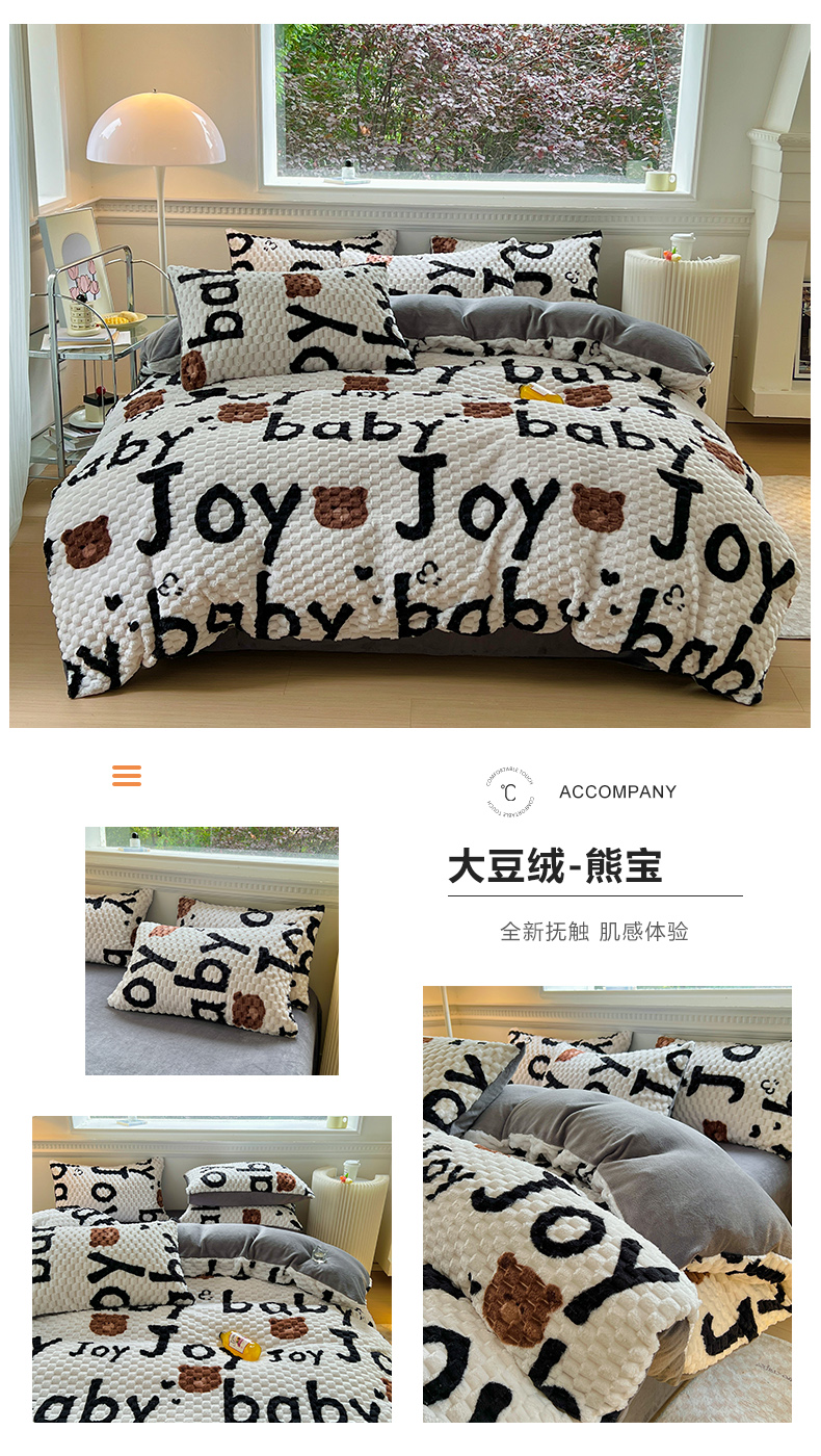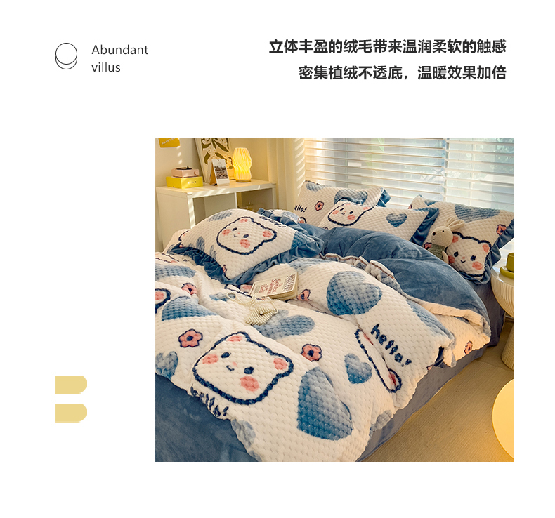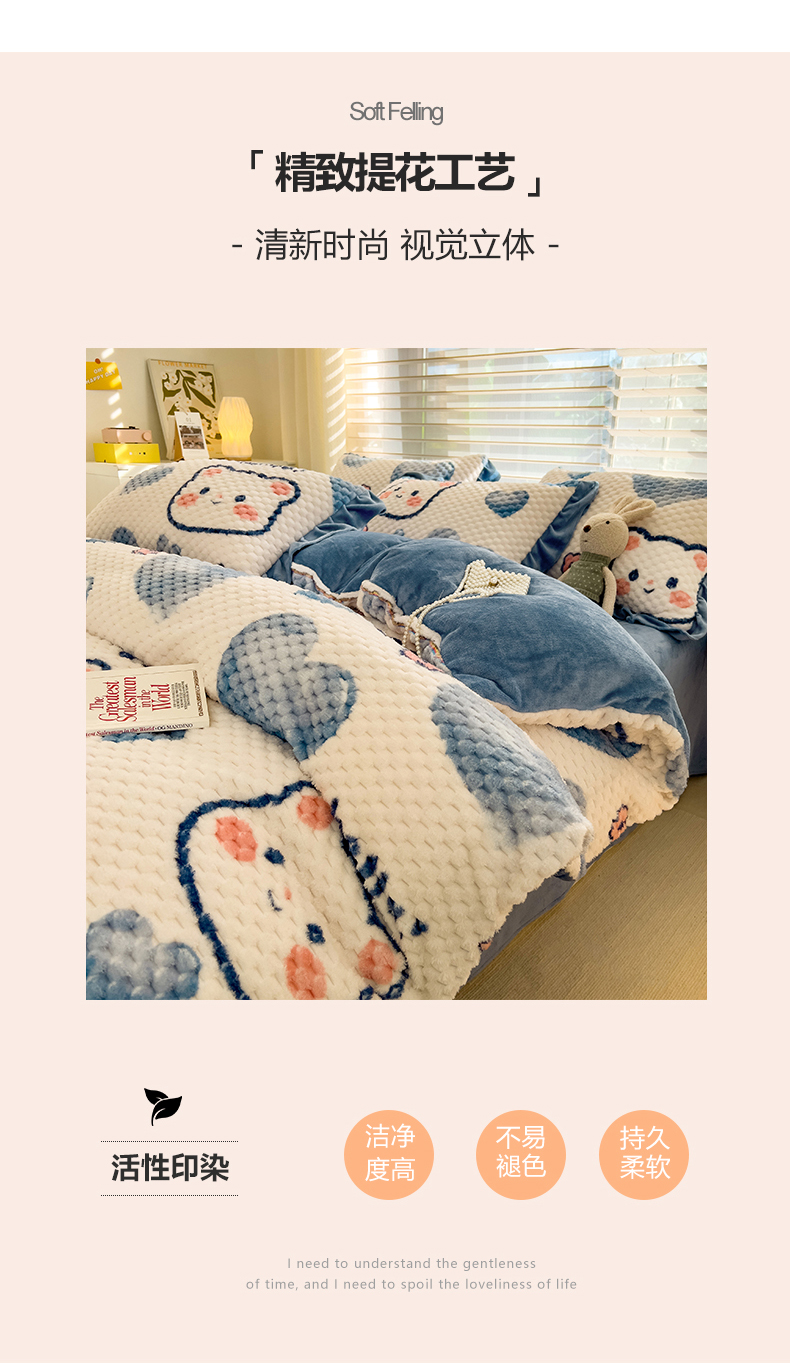 宜代光年 2025新款大豆绒提花系列四件套(提供买家秀)-印花款 大豆绒-蓝色小熊