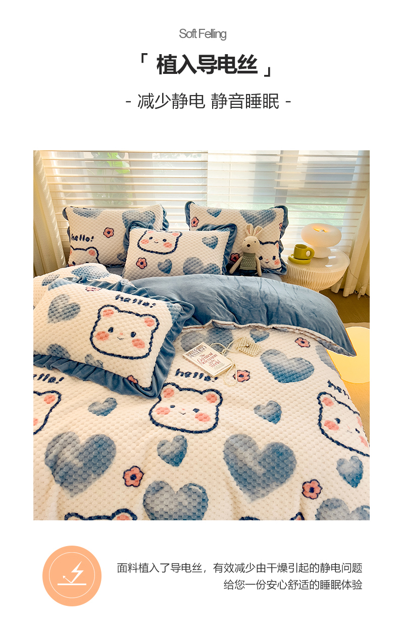 商品名称:宜代光年 2025新款大豆绒提花系列四件套(提供买家秀)-印花款 大豆绒-蓝色小熊