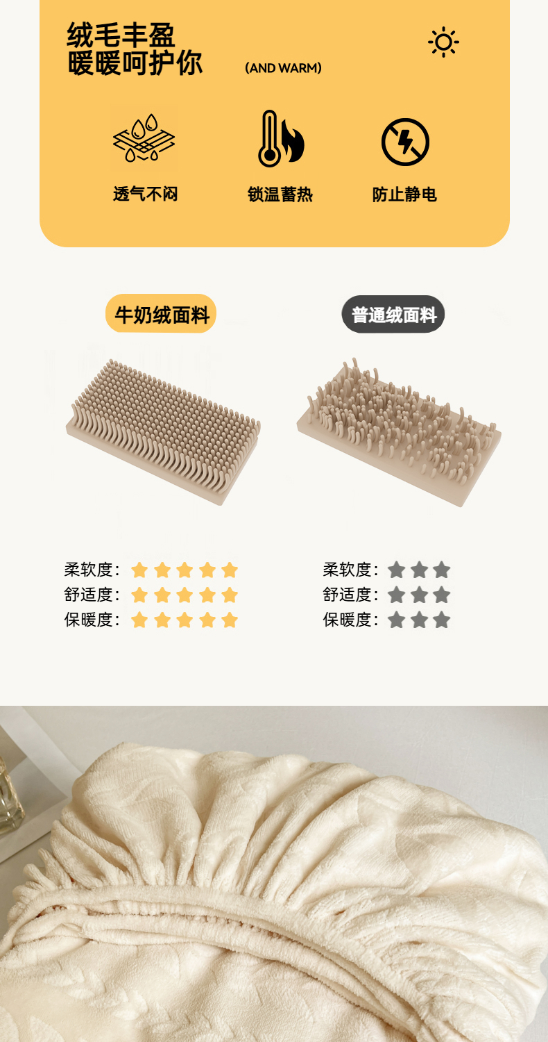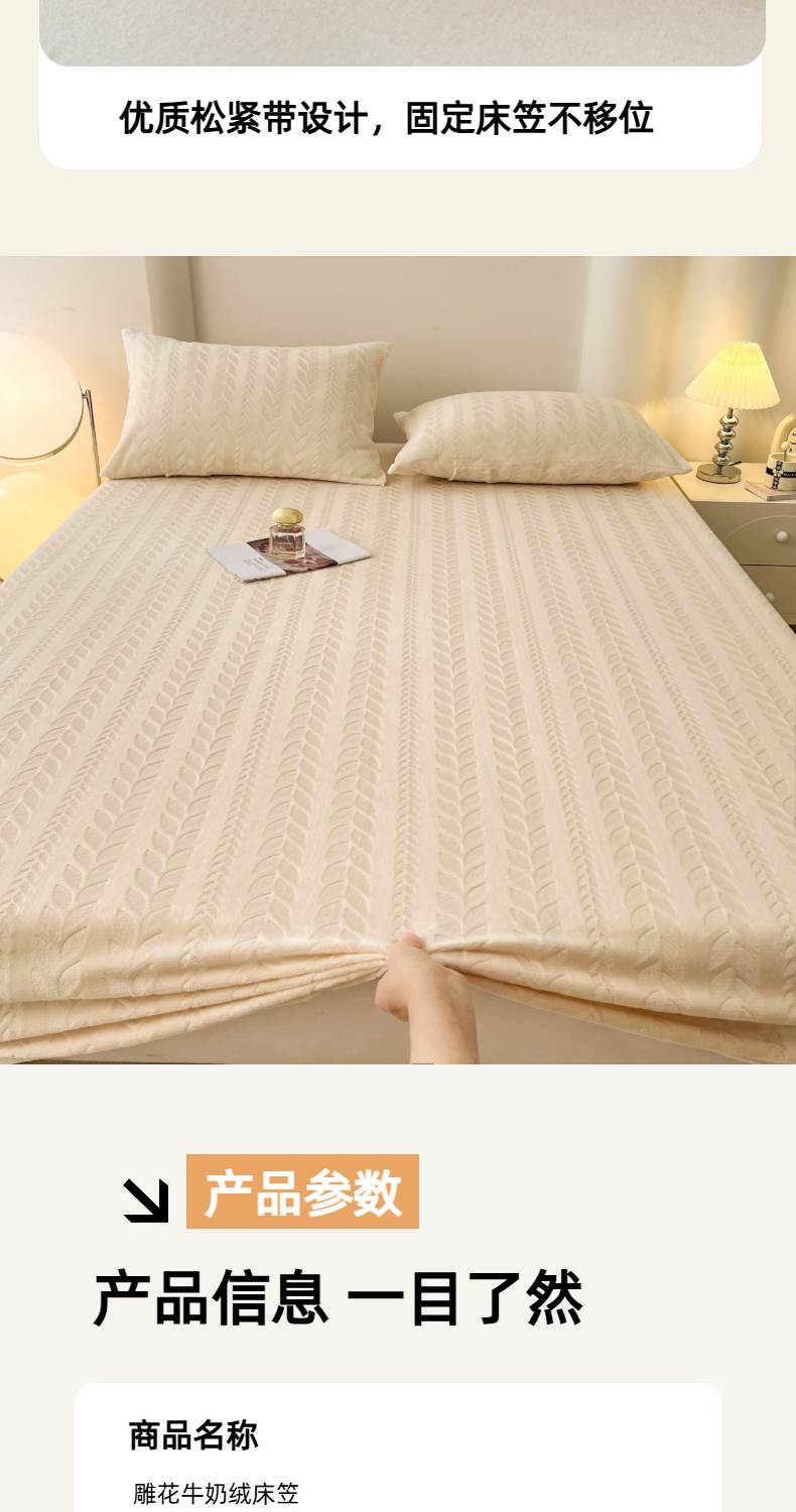 • 91家纺网 家纺一手货源 找家纺 三盛源 2025新款高克重雕花牛奶绒床笠三件套加厚保暖床垫保护套 麦穗-奶油白
