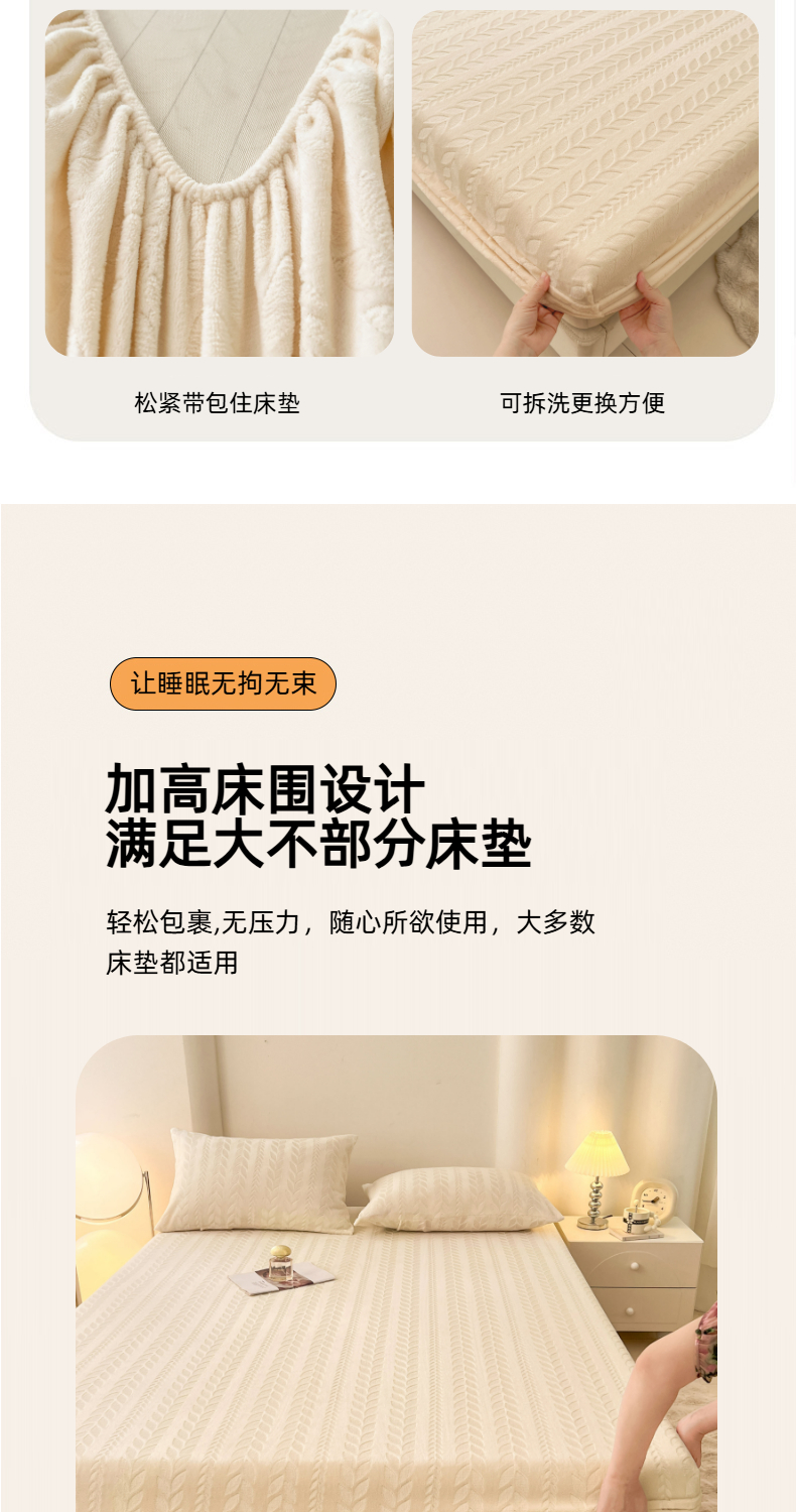 当前位置: 91家纺网 > 商品网购 > 床上用品 > 床笠 > 三盛源 2025新款高克重雕花牛奶绒床笠三件套加厚保暖床垫保护套 麦穗-奶油白
