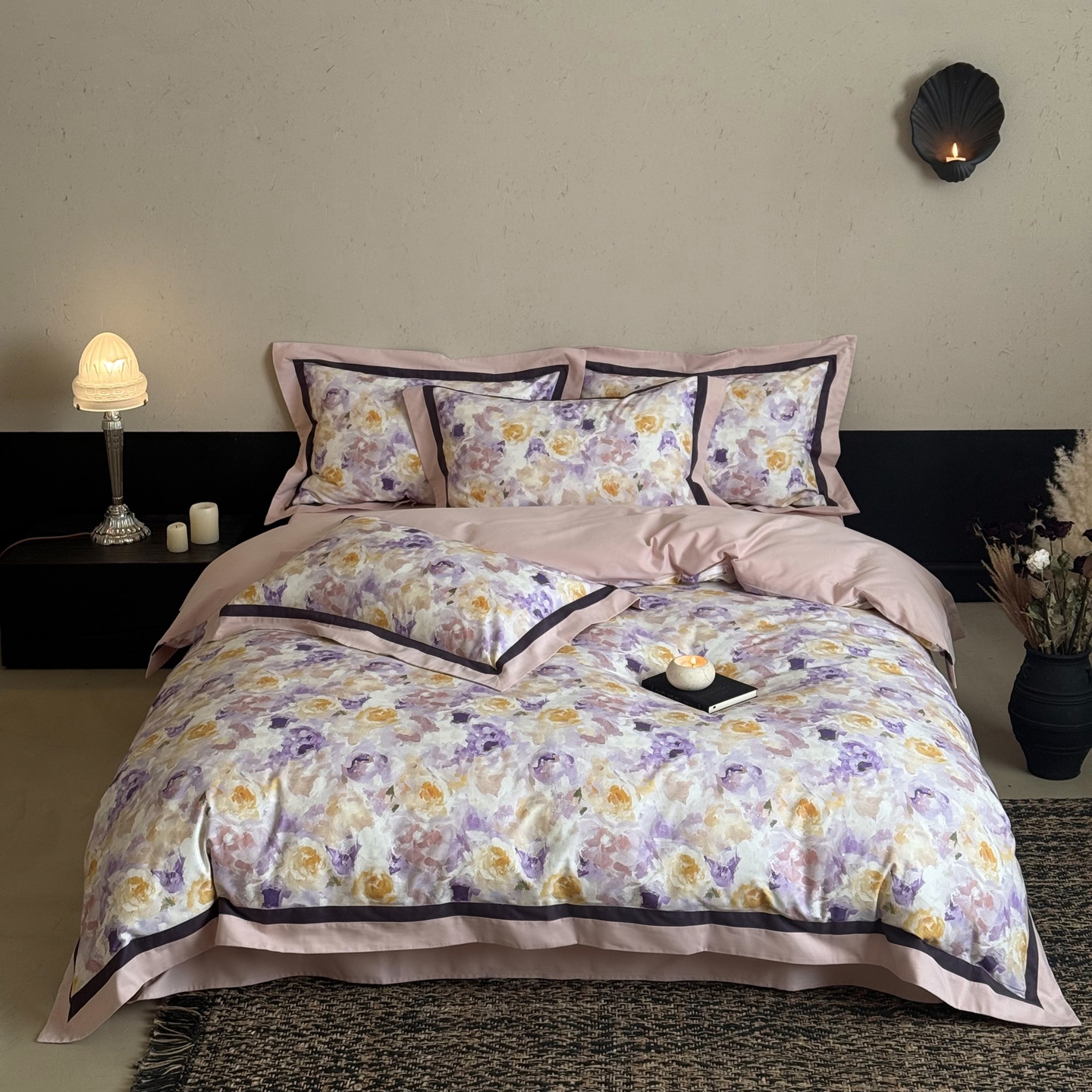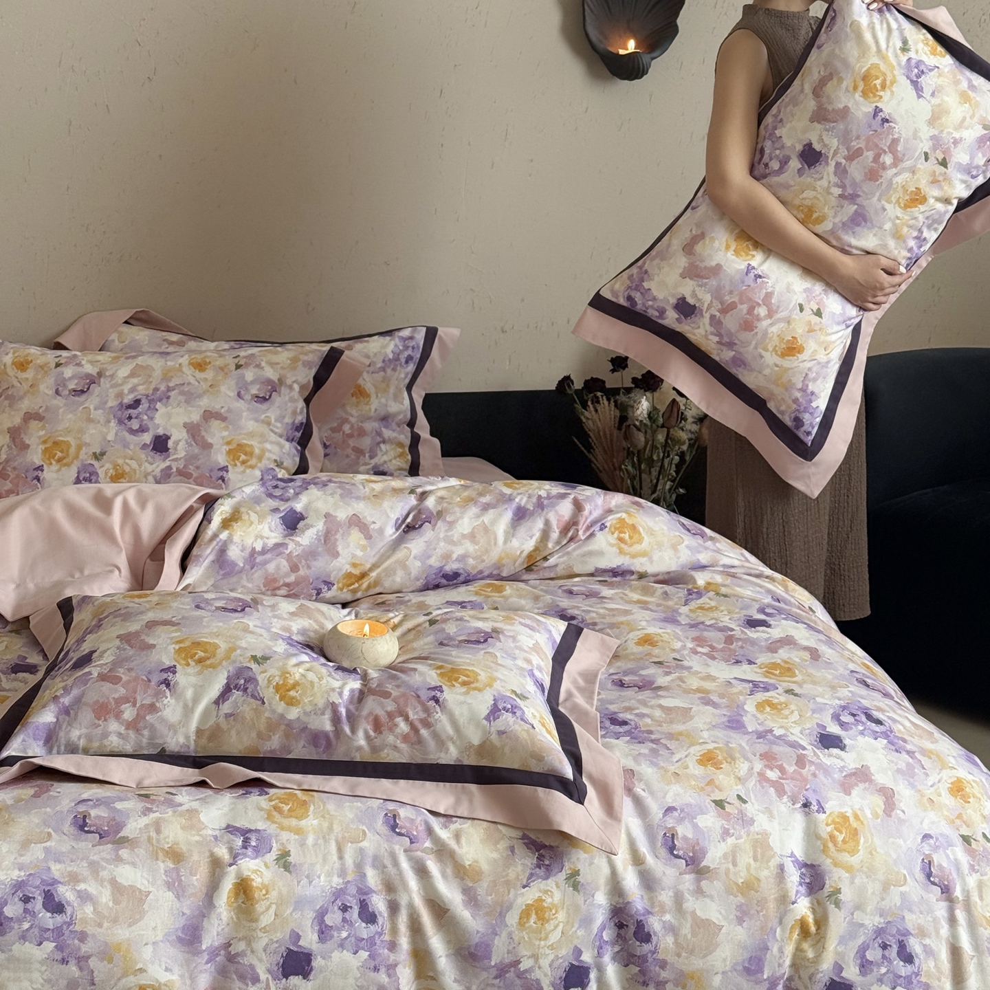 多乐娜 2025新款100S长绒棉纯棉陶瓷磨毛法式油画风数码印花双拼角工艺款四件套 柔情絮语