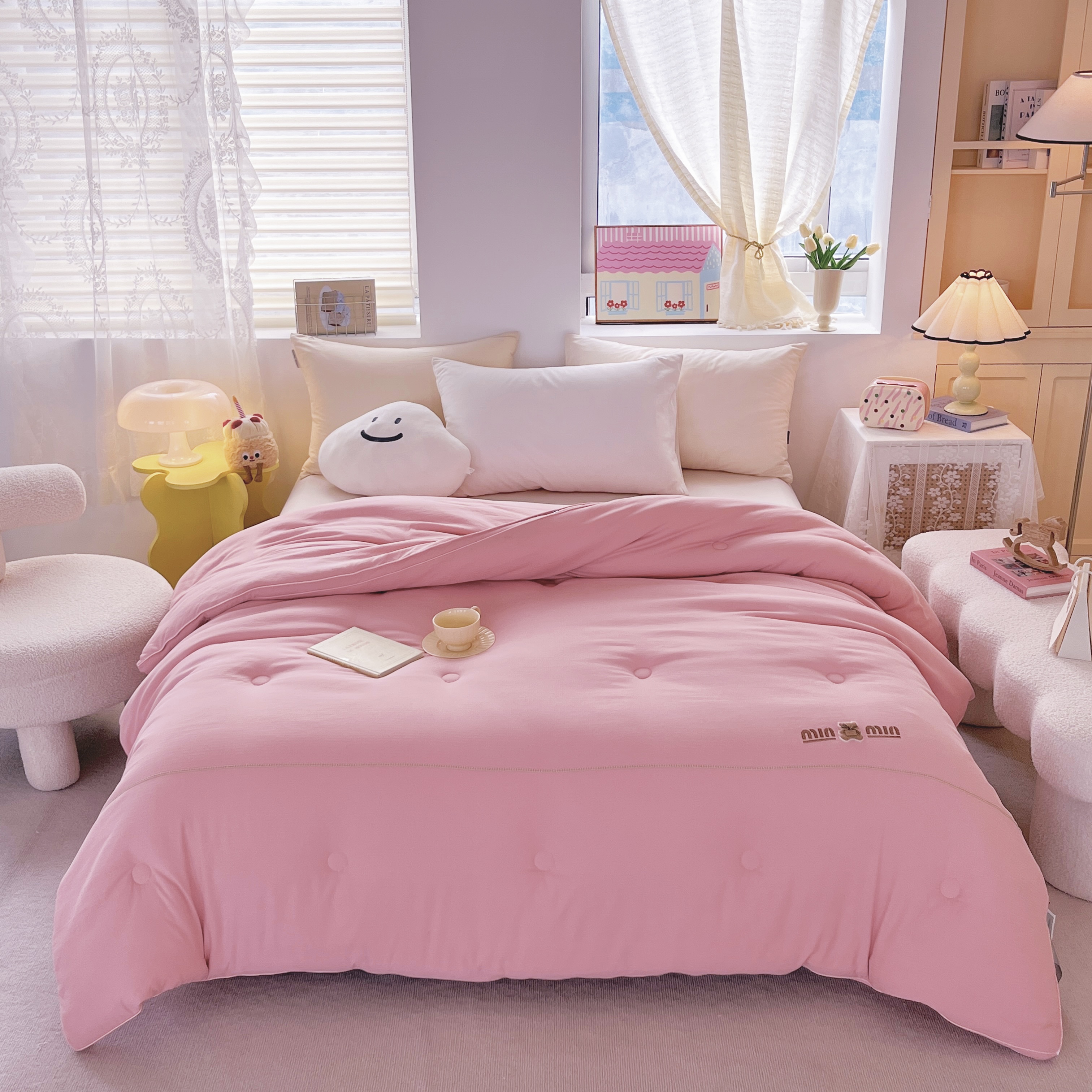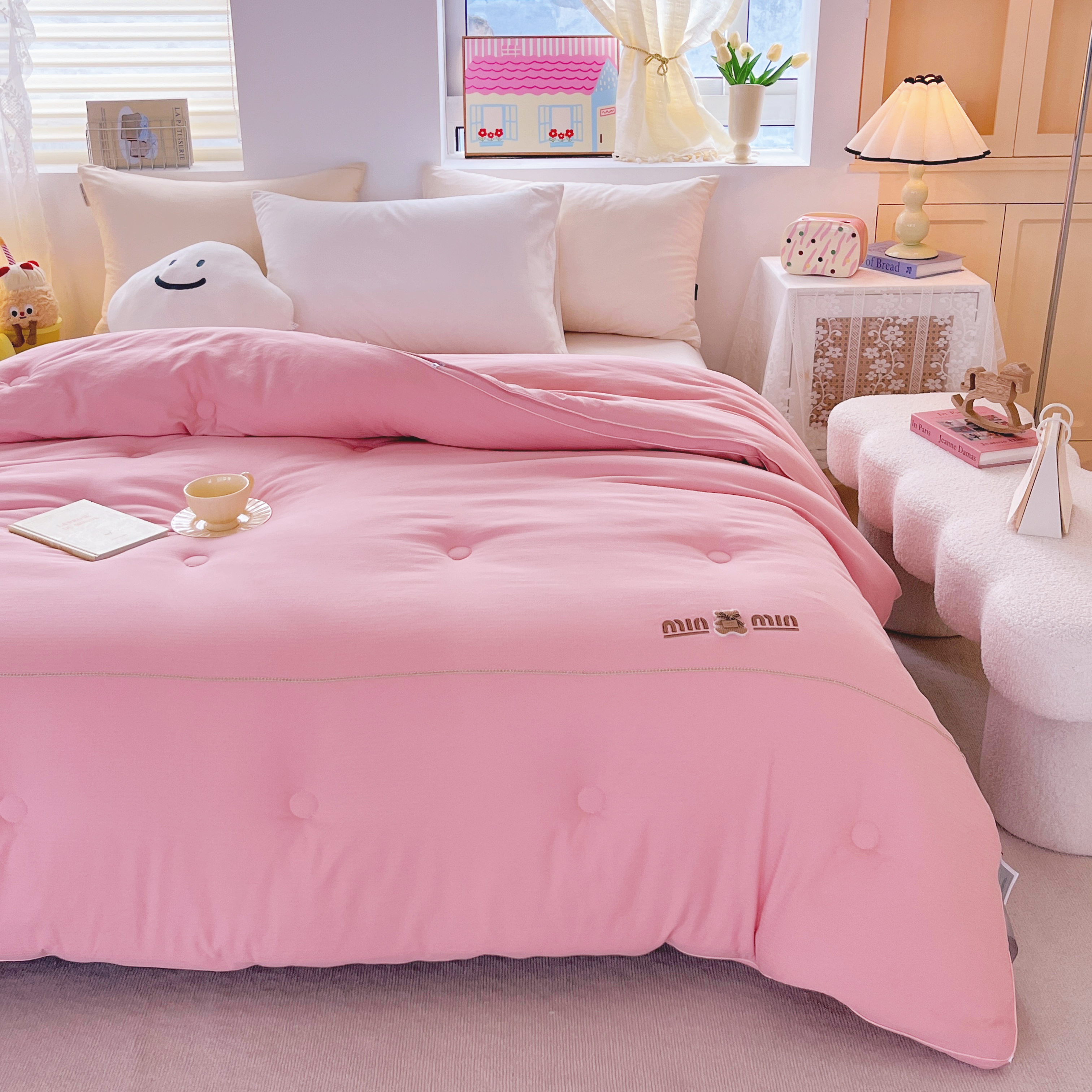 (总)仲旺居家纺 2025新款云柔棉绣花冬被小熊minmin立体边被子被芯四季被,豆沙,粉,白,灰,玉