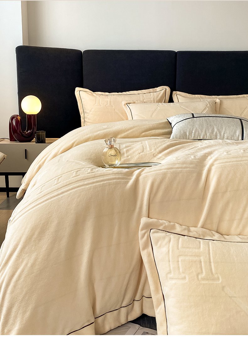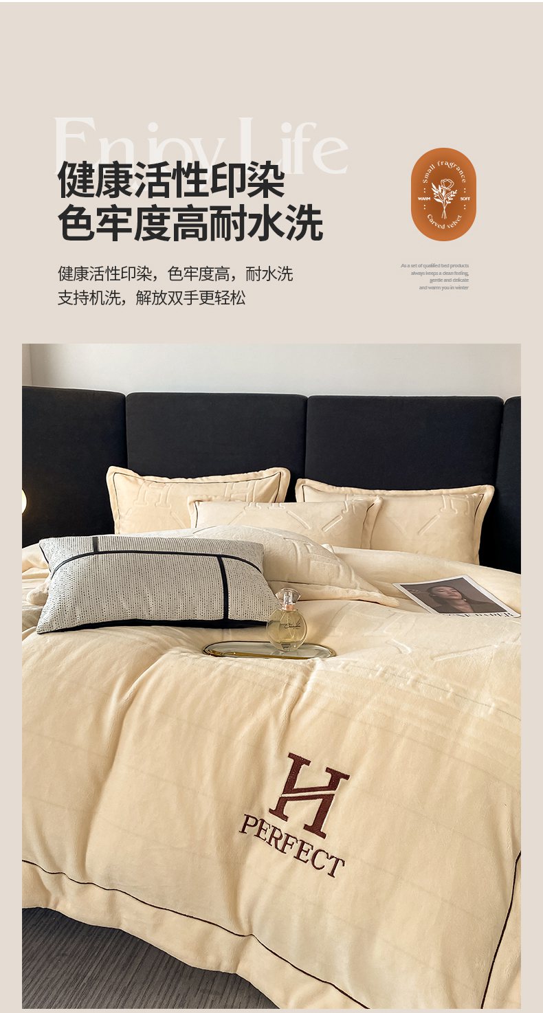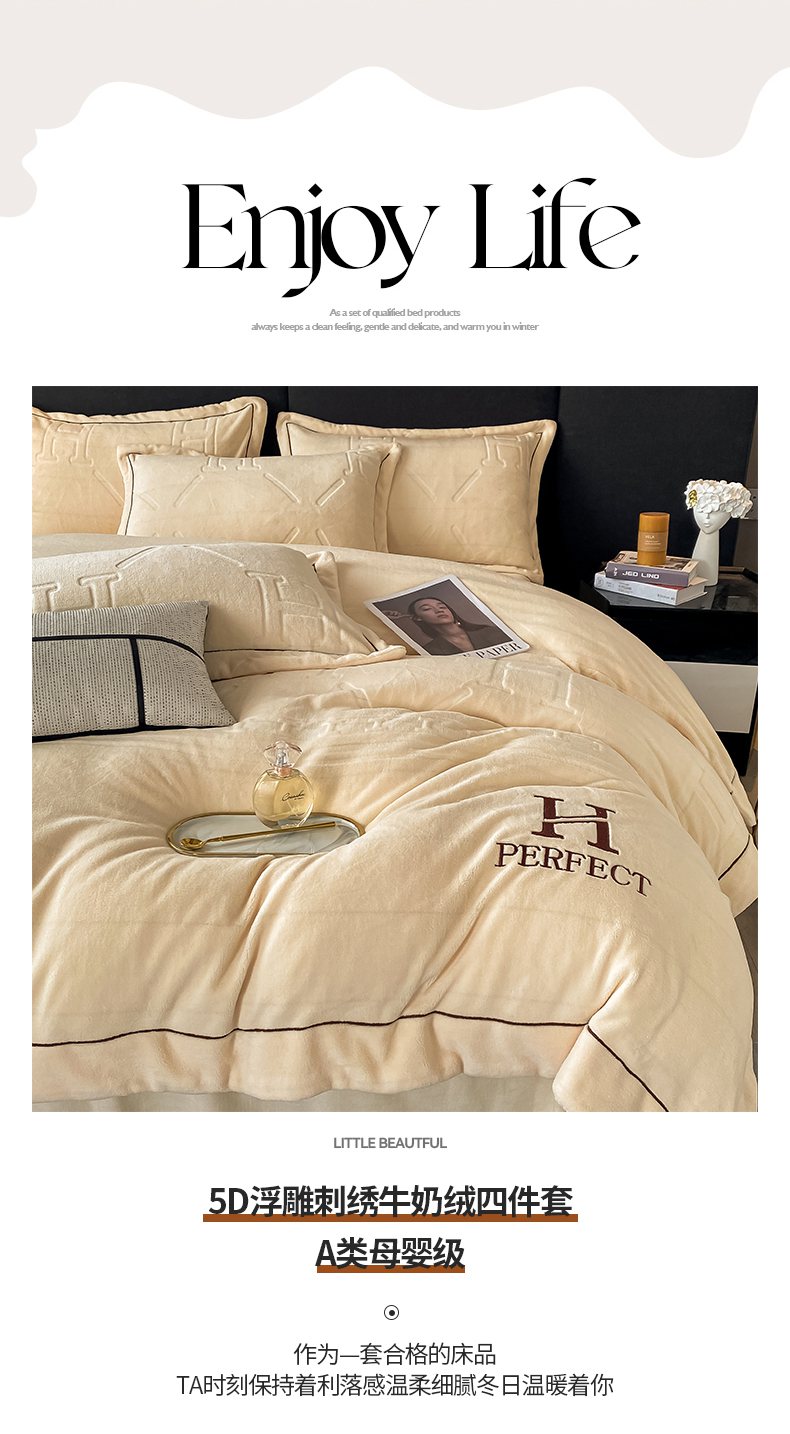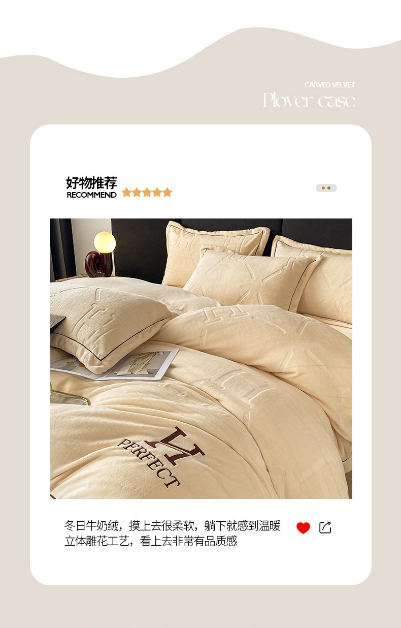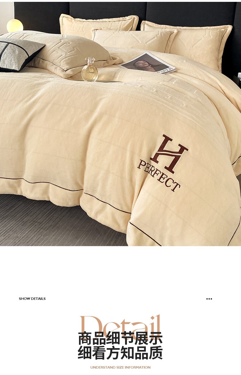 当前位置: 91家纺网 > 商品网购 > 床品套件 > 四件套 > 牛奶绒四件套 > 艾佳 2025新款A类全高克重雕花烂花刺绣牛奶绒四件套-小H系列 小H奶油白
