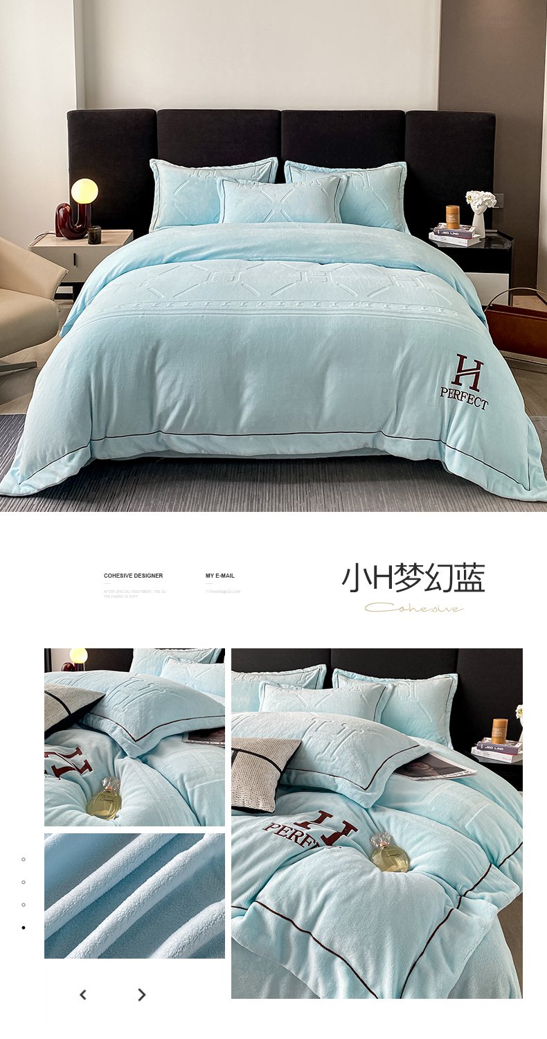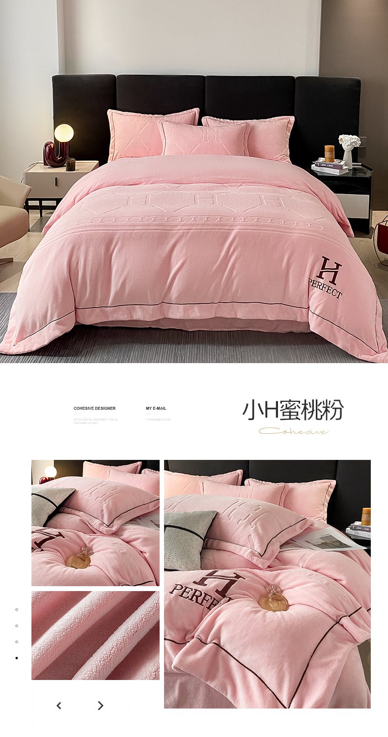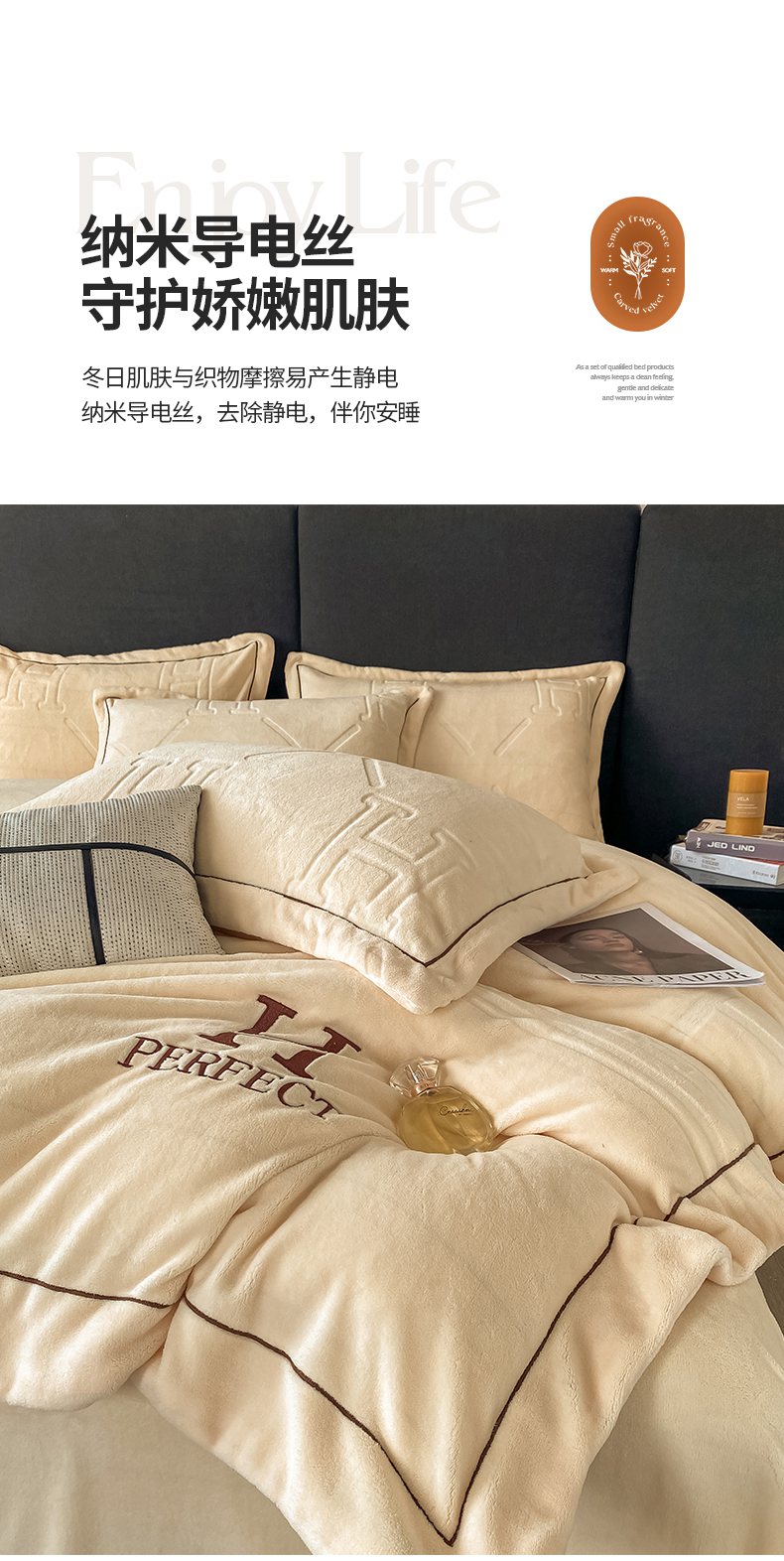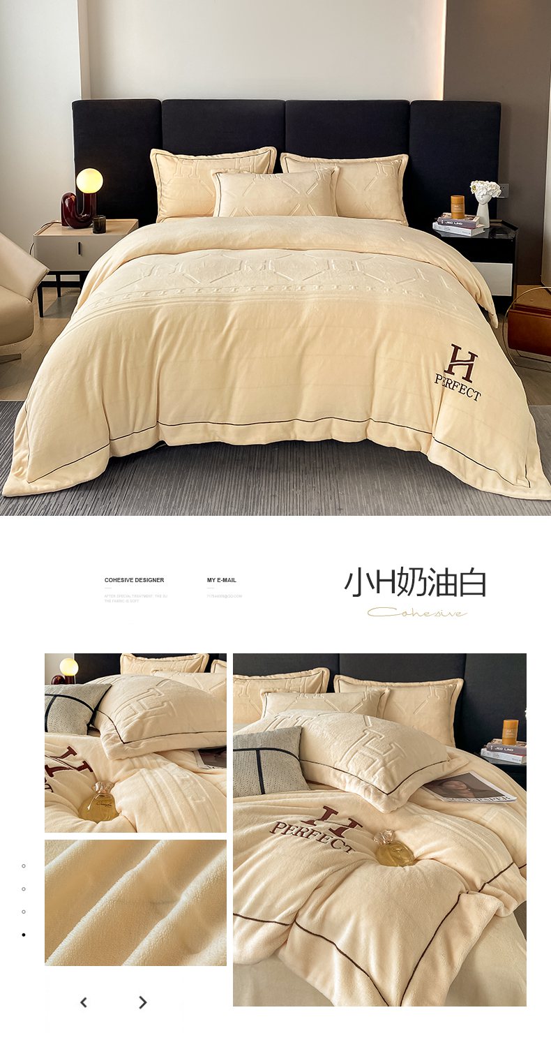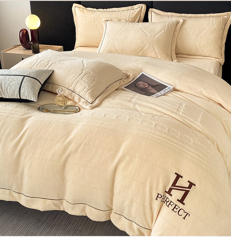 当前位置: 91家纺网 > 商品网购 > 床品套件 > 四件套 > 牛奶绒四件套 > 艾佳 2025新款A类全高克重雕花烂花刺绣牛奶绒四件套-小H系列 小H奶油白
