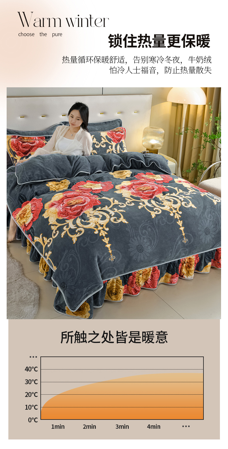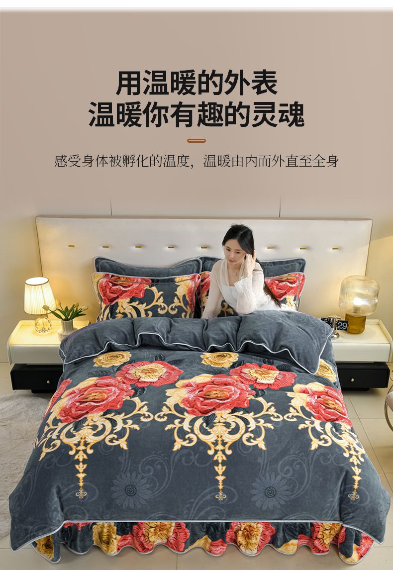 雅芝蓝 2025新款8-9斤高克重印花牛奶绒四件套保暖绒套件直播爆款 粉漾花趣,粉漾花趣
