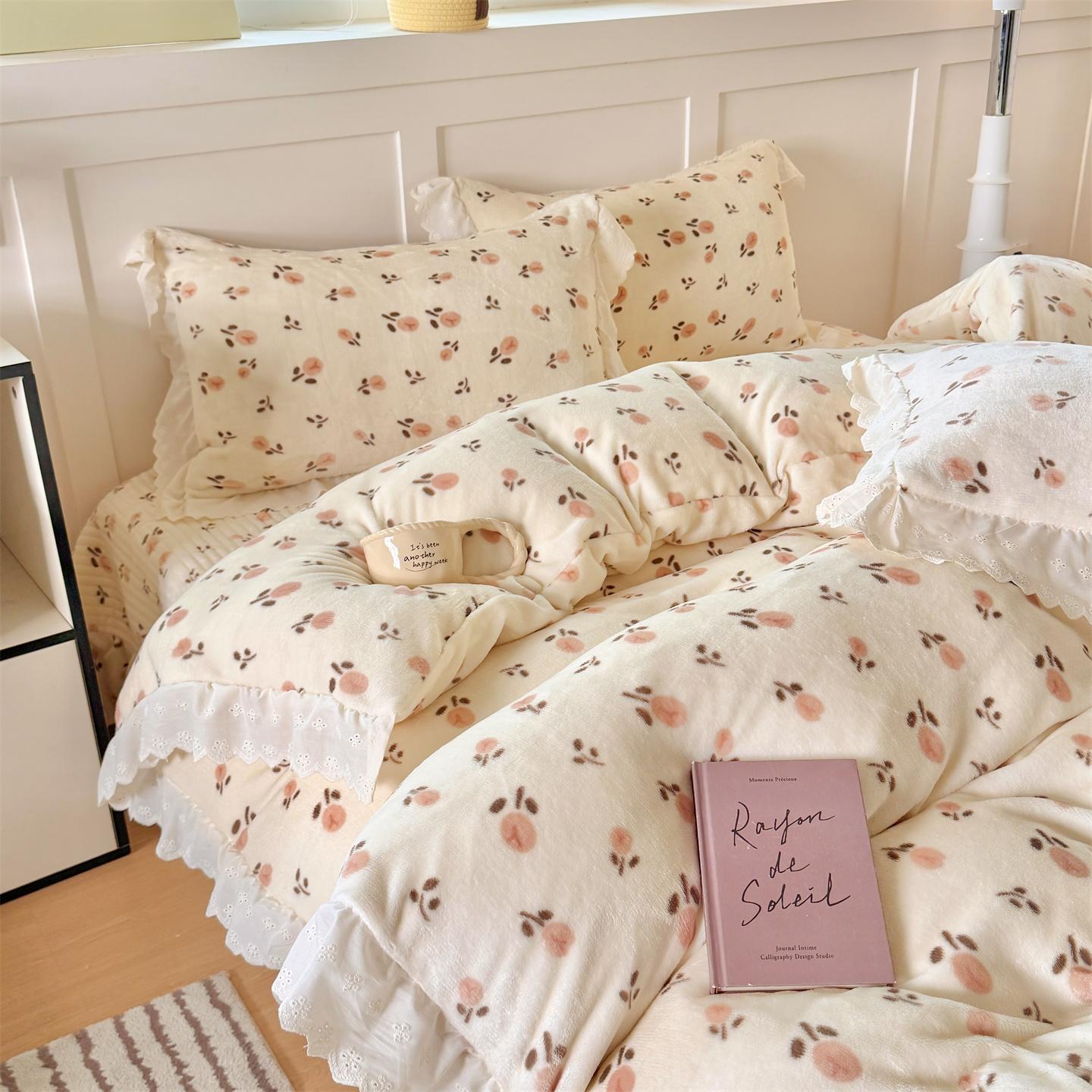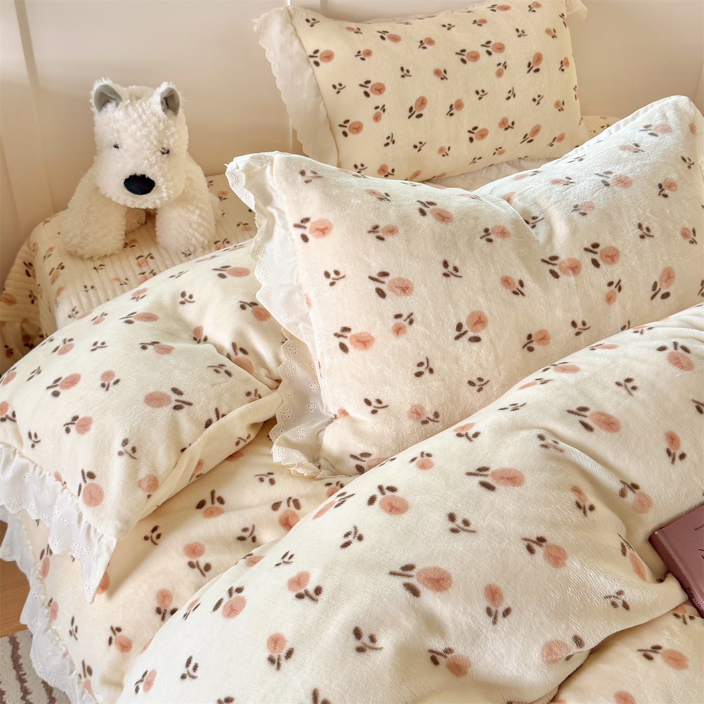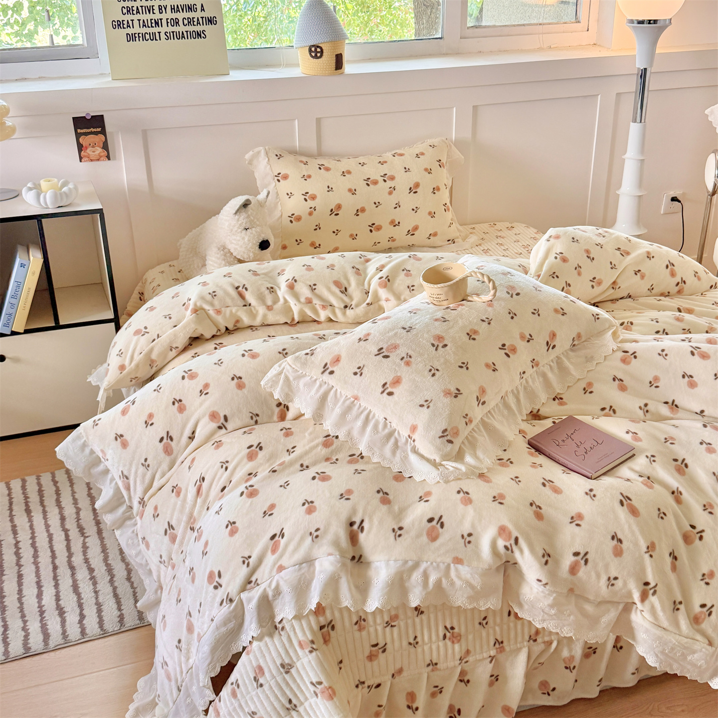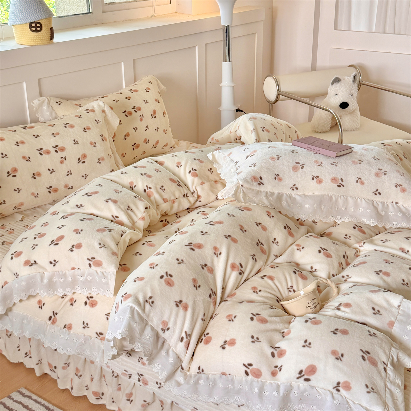欧尚 2025新款牛奶绒花边床盖四件套 慕然