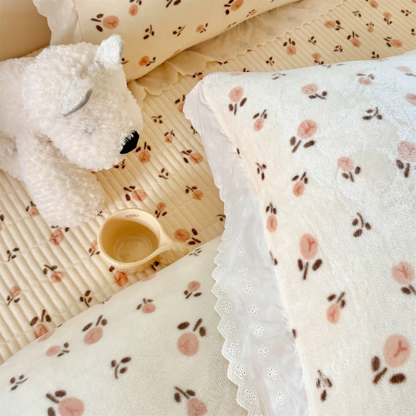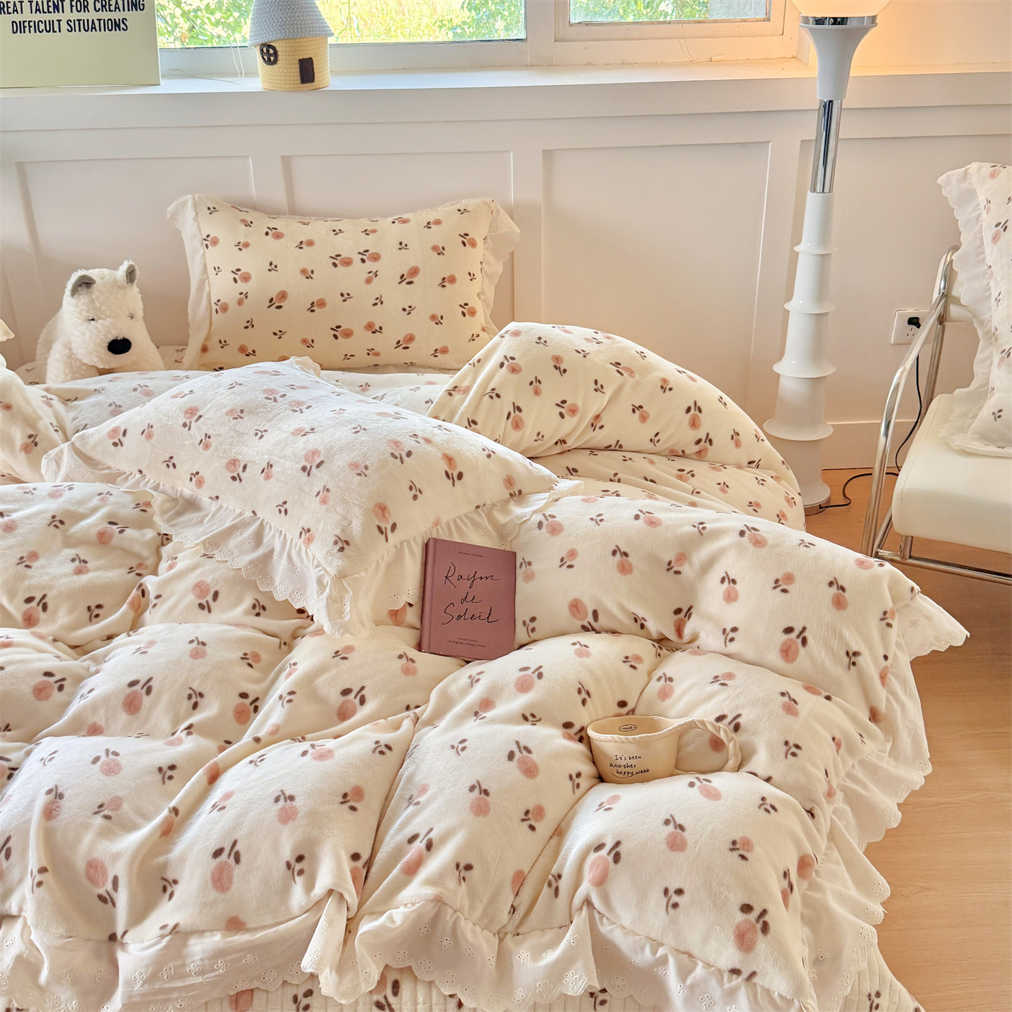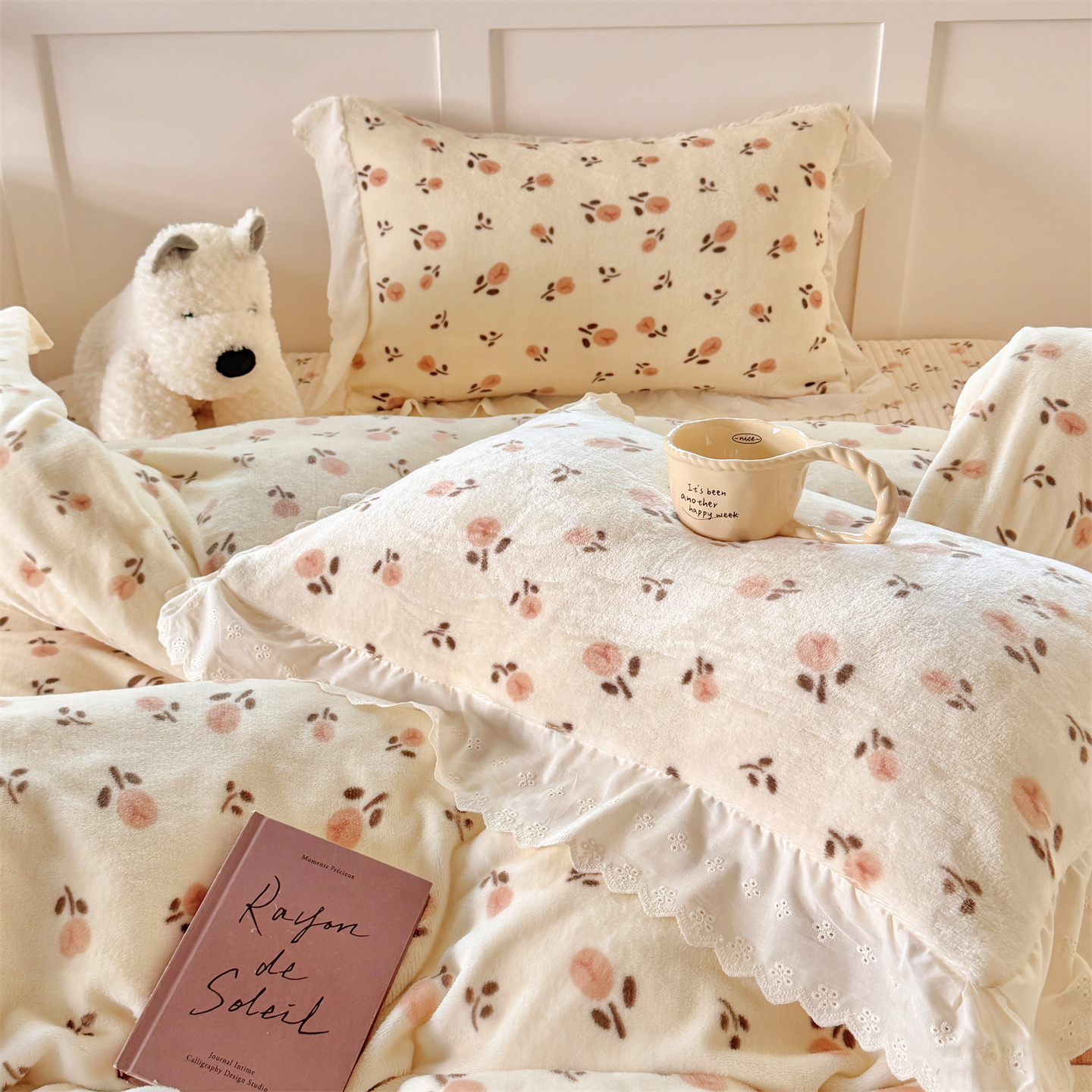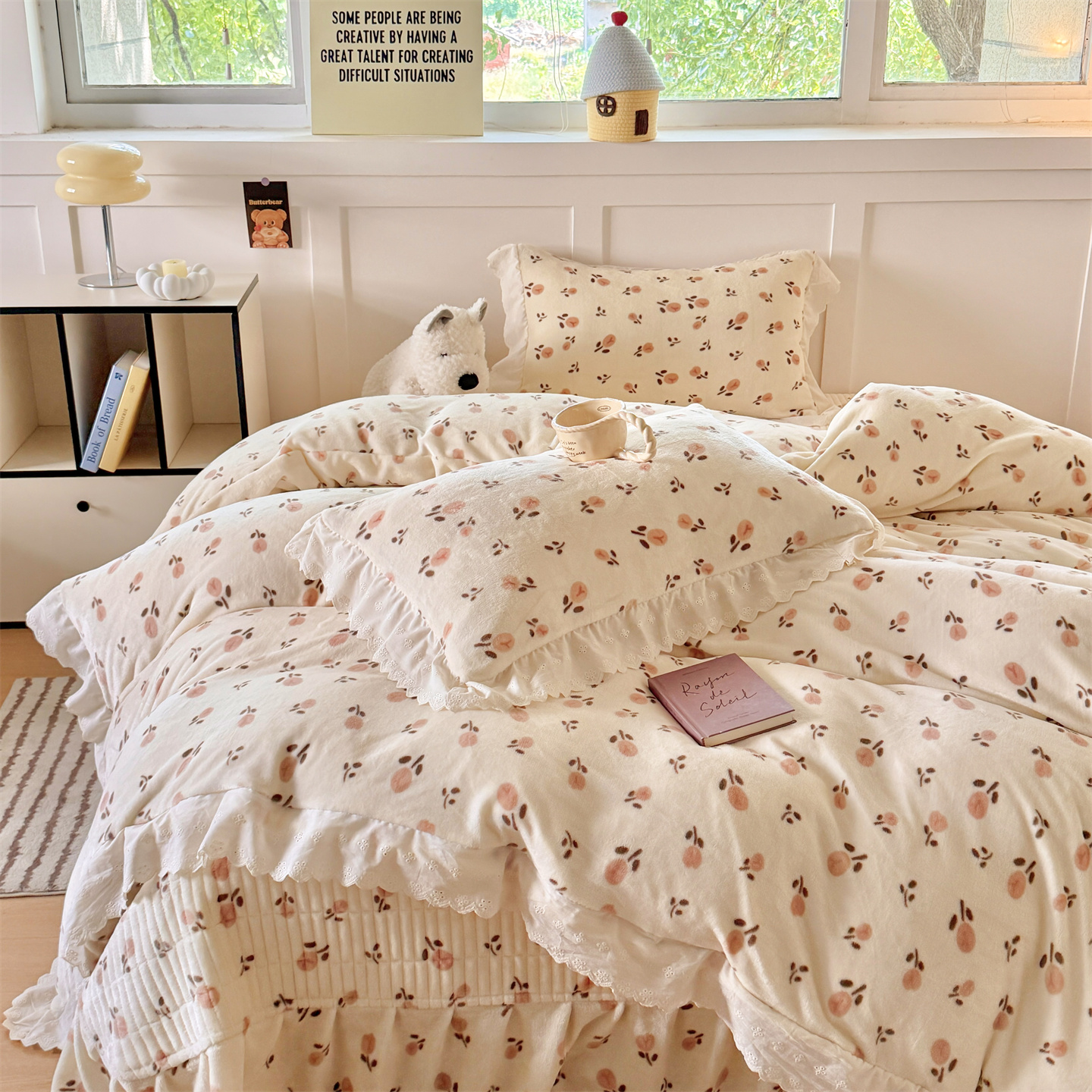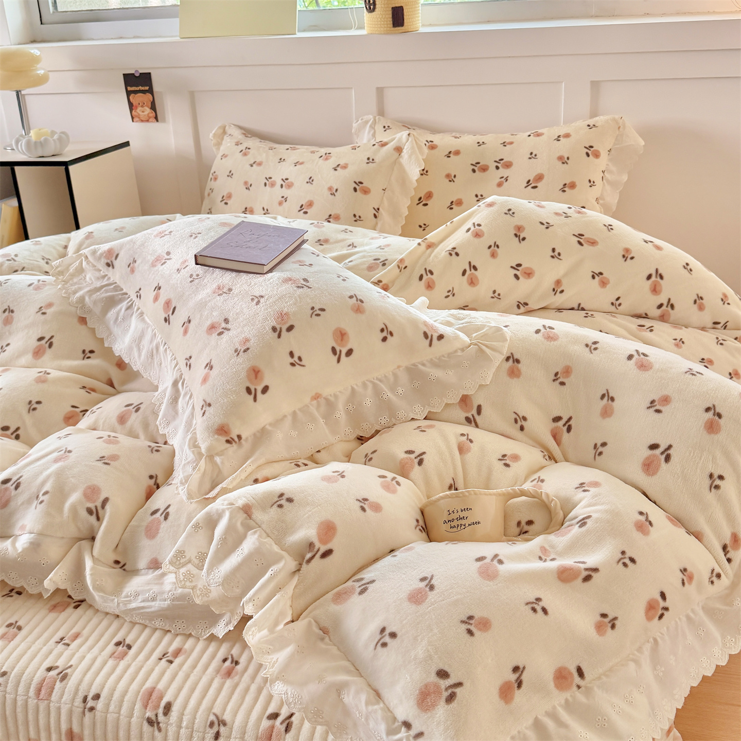 欧尚 2025新款牛奶绒花边床盖四件套 慕然