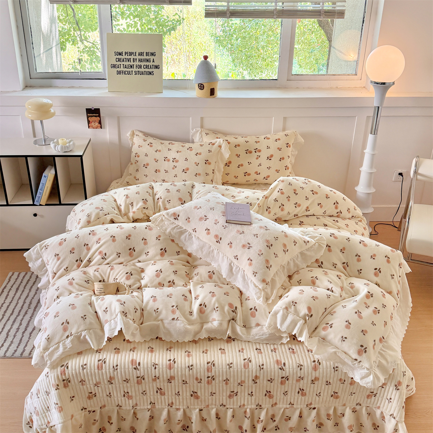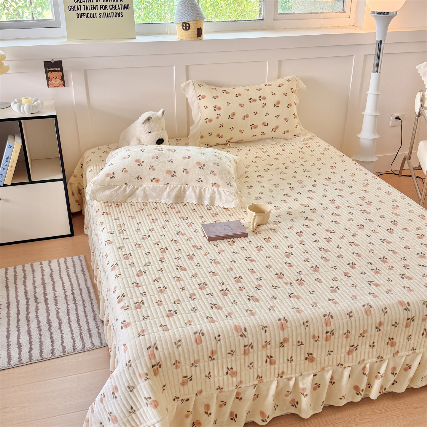 (总)欧尚 2025新款牛奶绒花边床盖四件套,粉点点,花小玉,咖色小心心,蓝点点,慕然,仙女粉,仙女紫