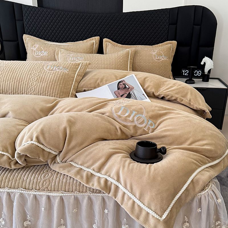 优姿家纺 2025新款牛奶绒花边绣花床盖四件套 花漾时光-米色